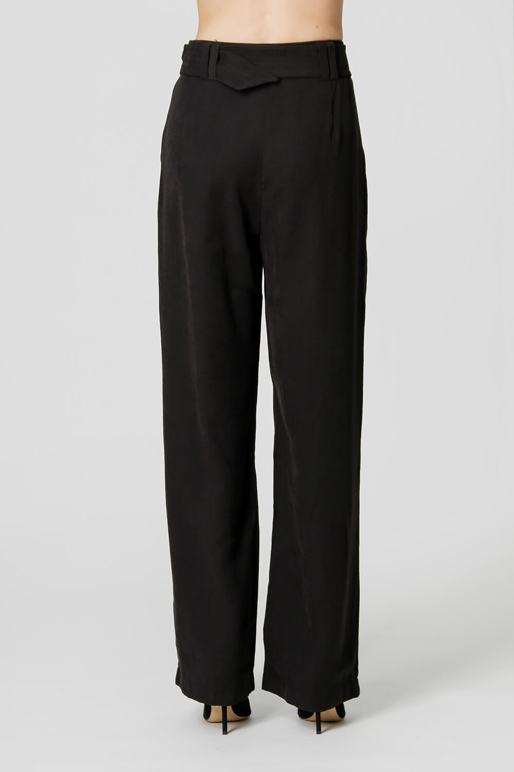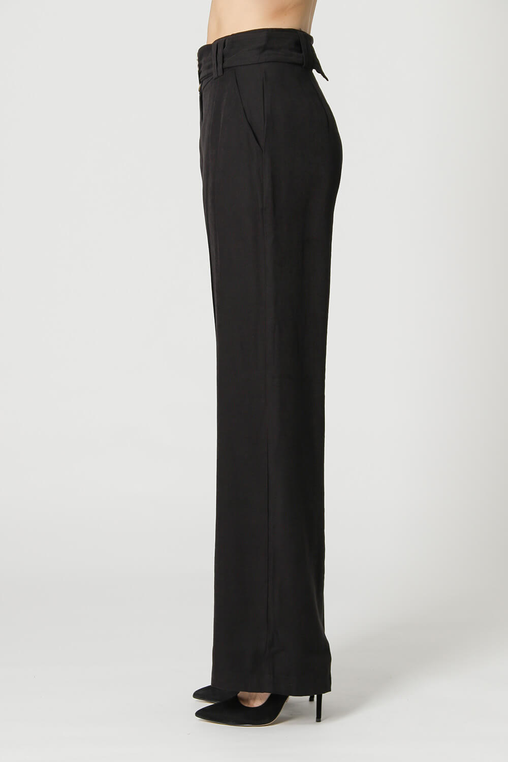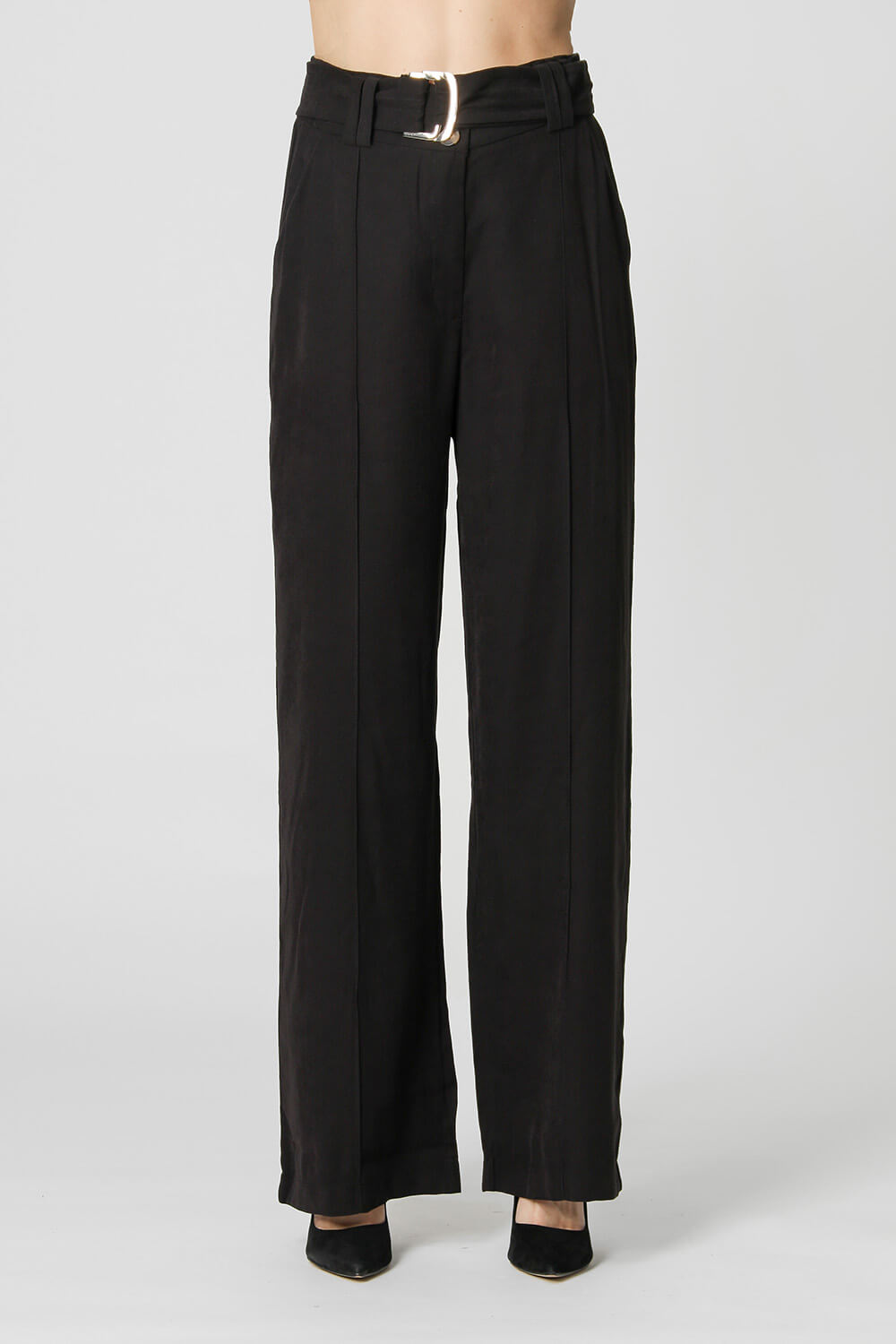 Pantalón recto confeccionado en viscosa, con detalle de canalé. Tiene una banda con hebilla de metal. Una pieza que le dará un aire casual chic a tu look.