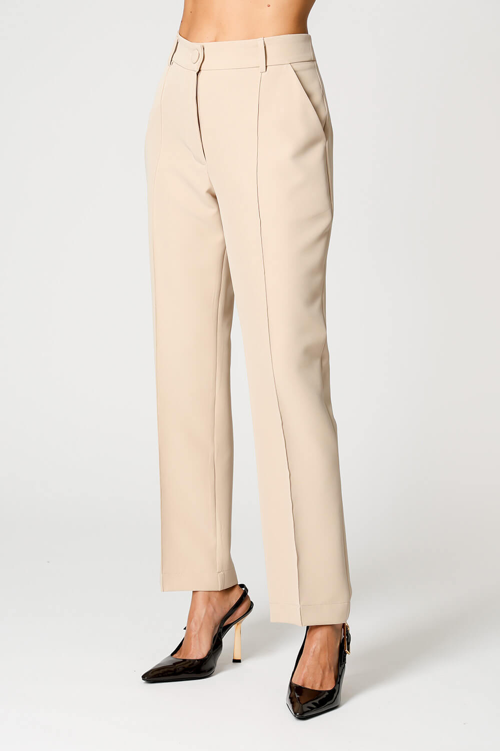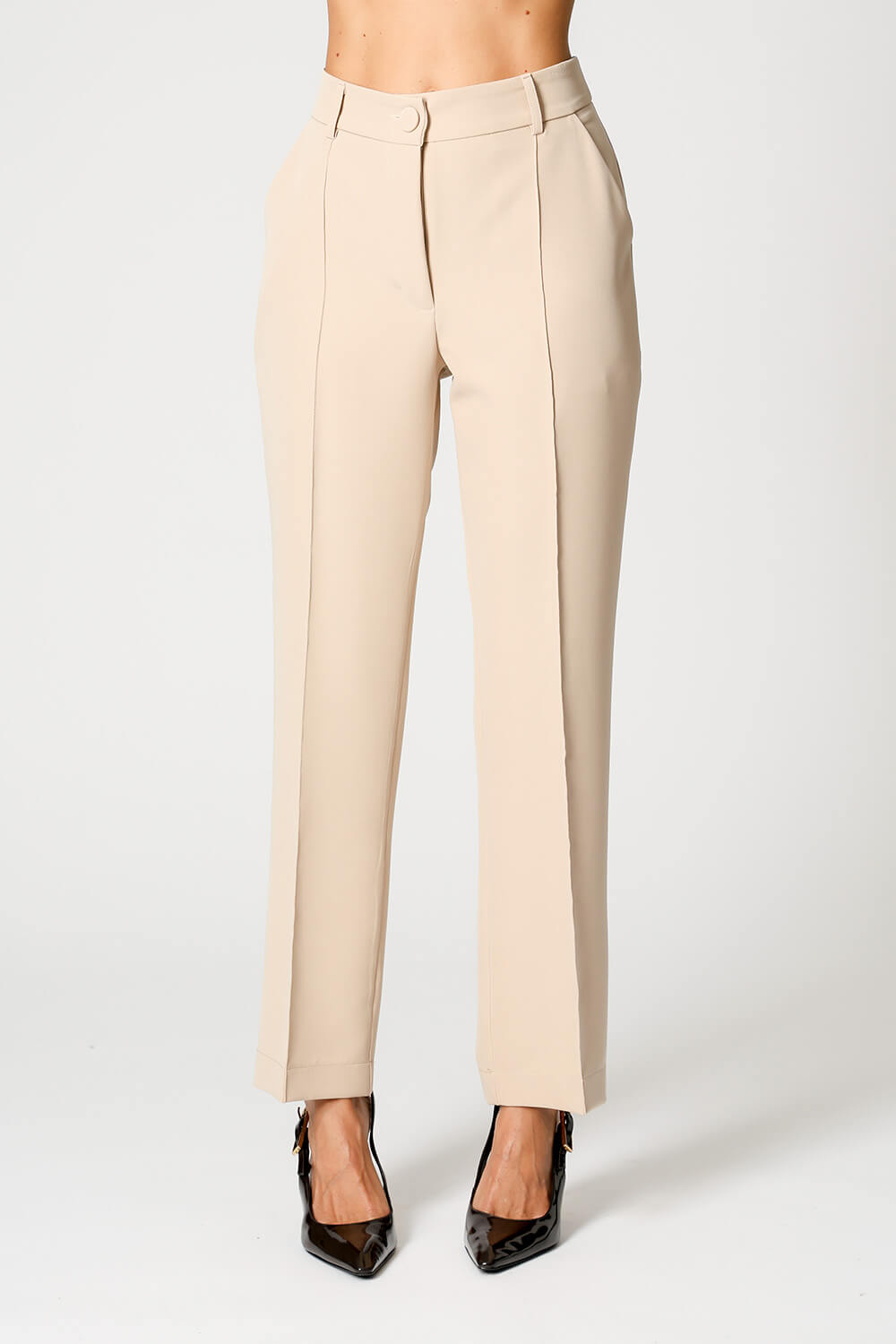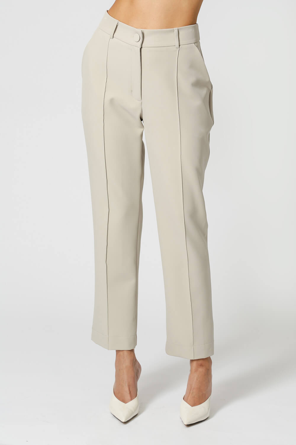 A calça reta com recorte frontal em alfaiataria é uma peça clássica e sofisticada, perfeita para compor um look work.