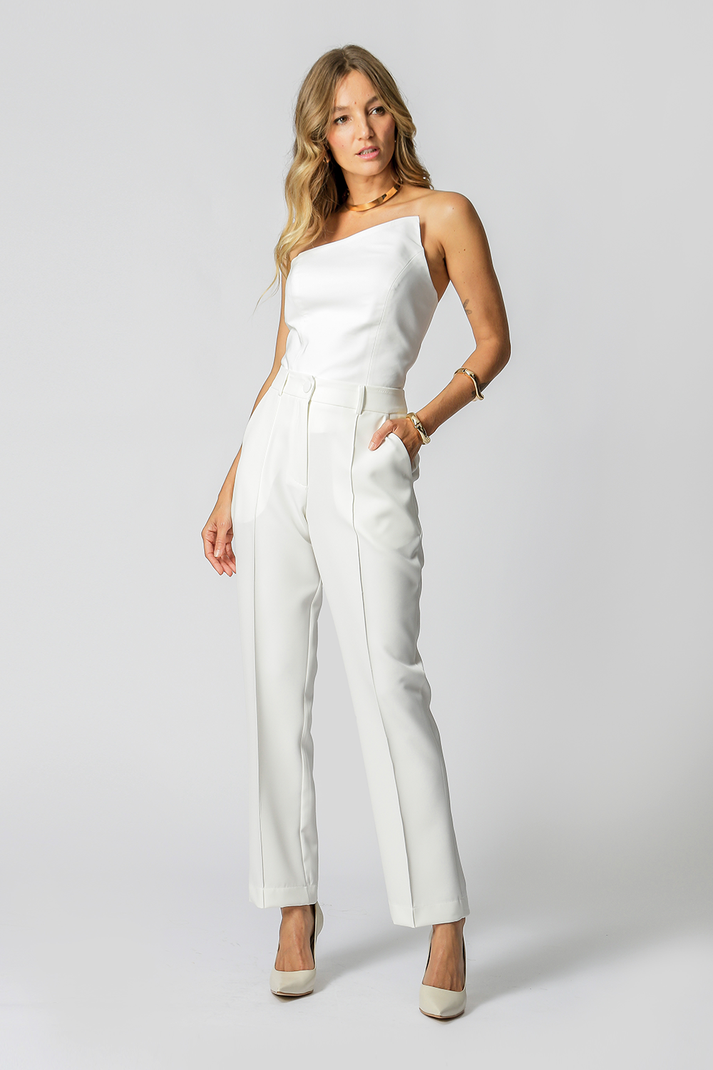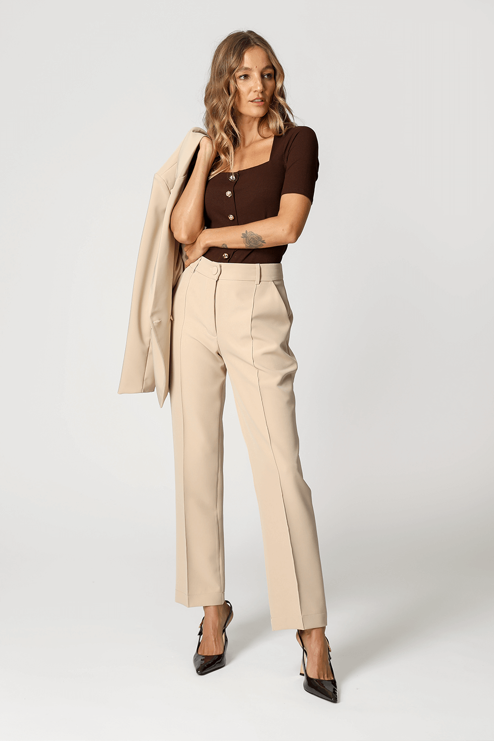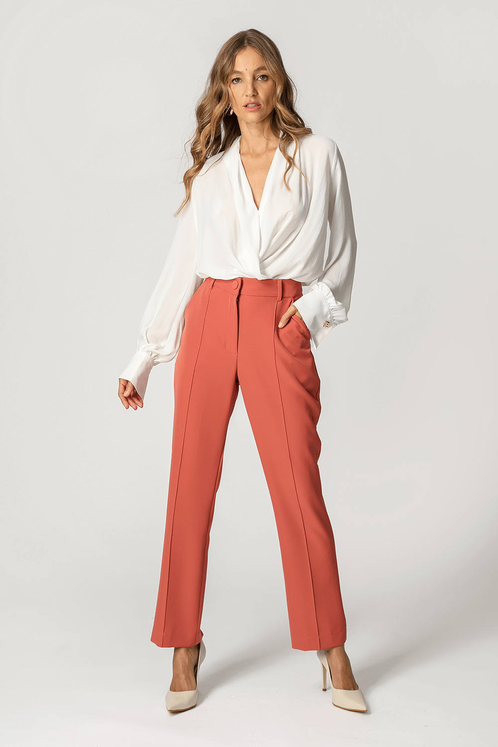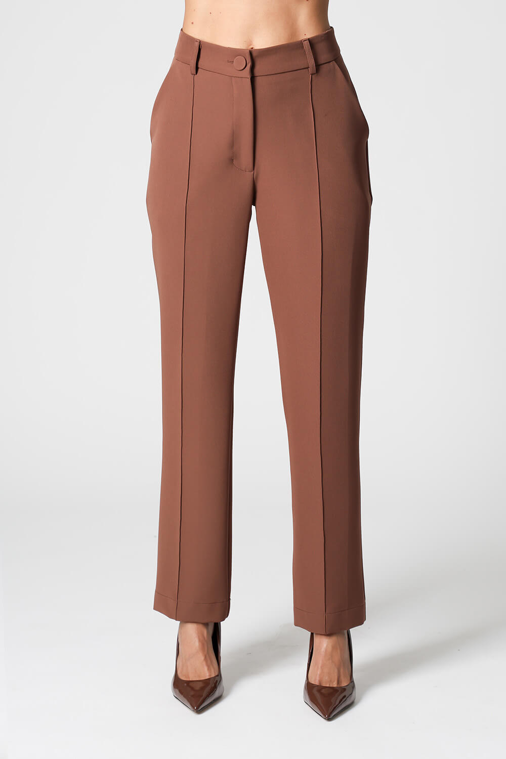 A calça reta com recorte frontal em alfaiataria é uma peça clássica e sofisticada, perfeita para compor um look work.