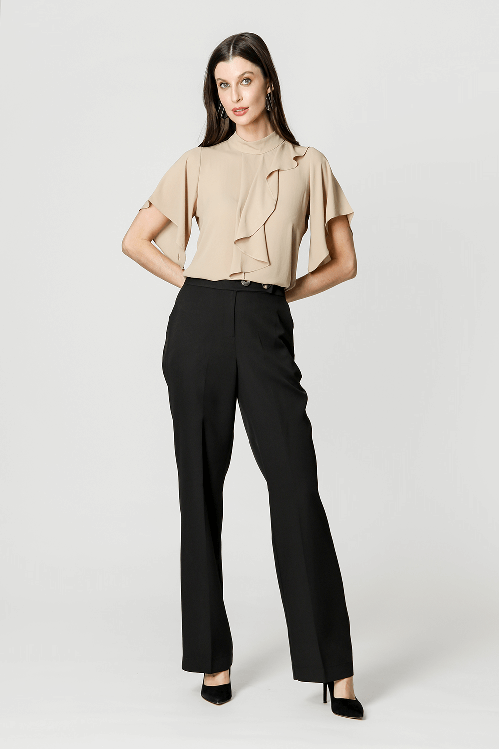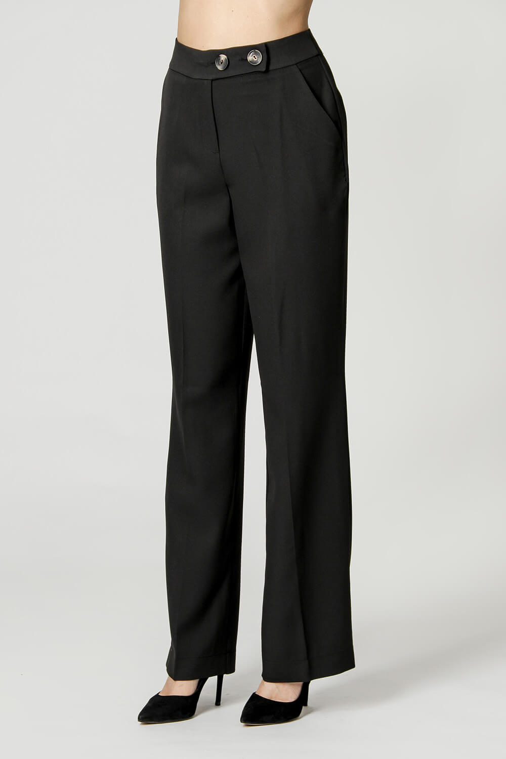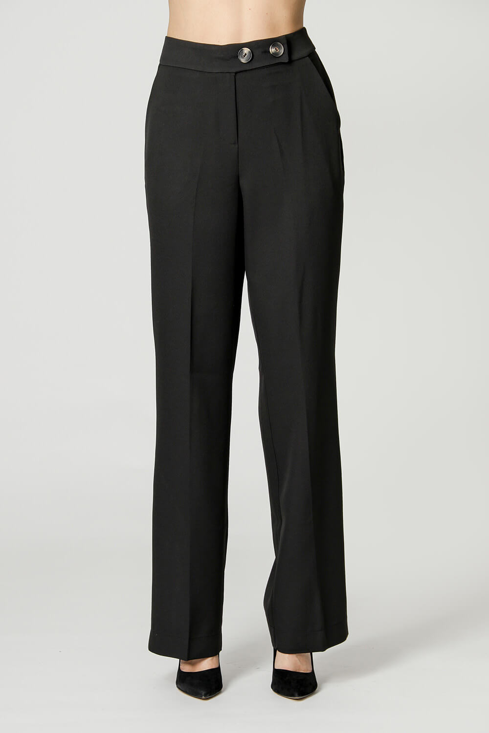 Pantalón de corte recto con detalle de cinturilla envolvente y bolsillo trasero adaptado. Pieza entallada perfecta para un look más formal.