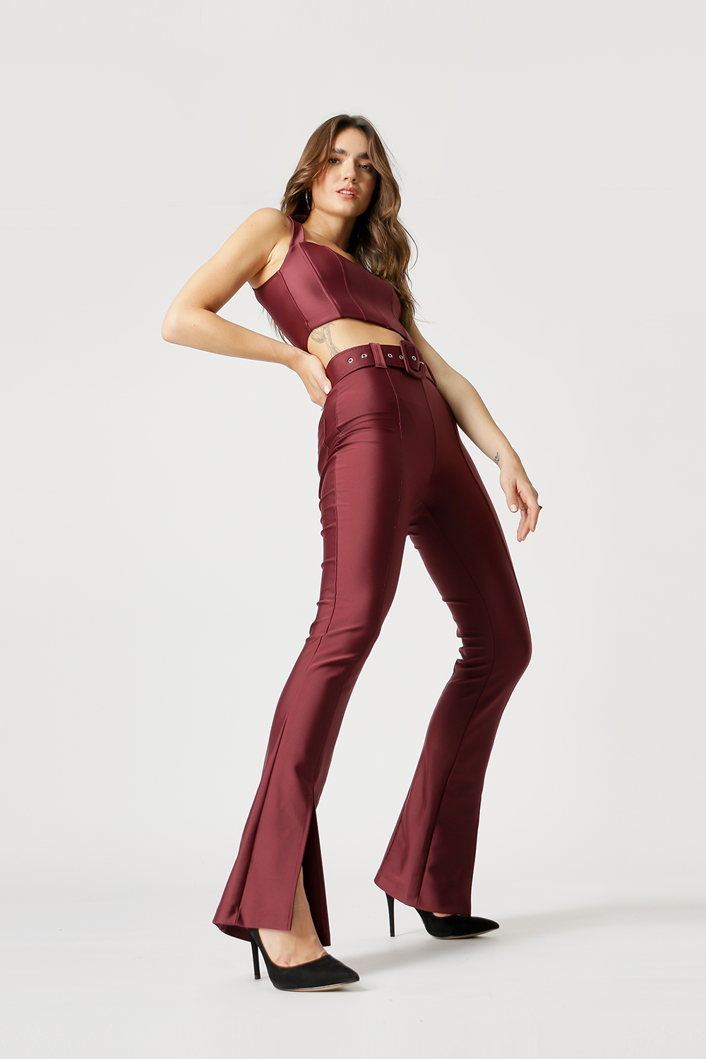 Pantalones pitillo confeccionados en punto Prada. Tiene cintura alta, detalle de apertura en el bajo y cinturón. ¡Pieza perfecta para crear un look poderoso!