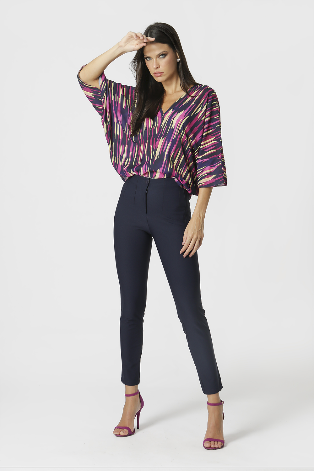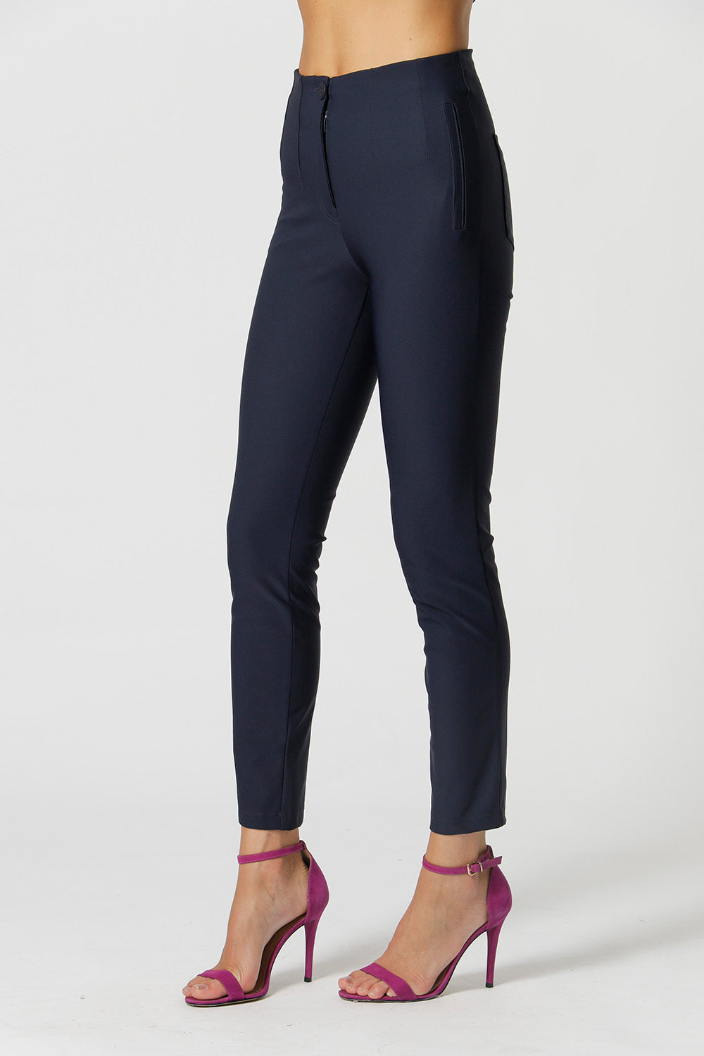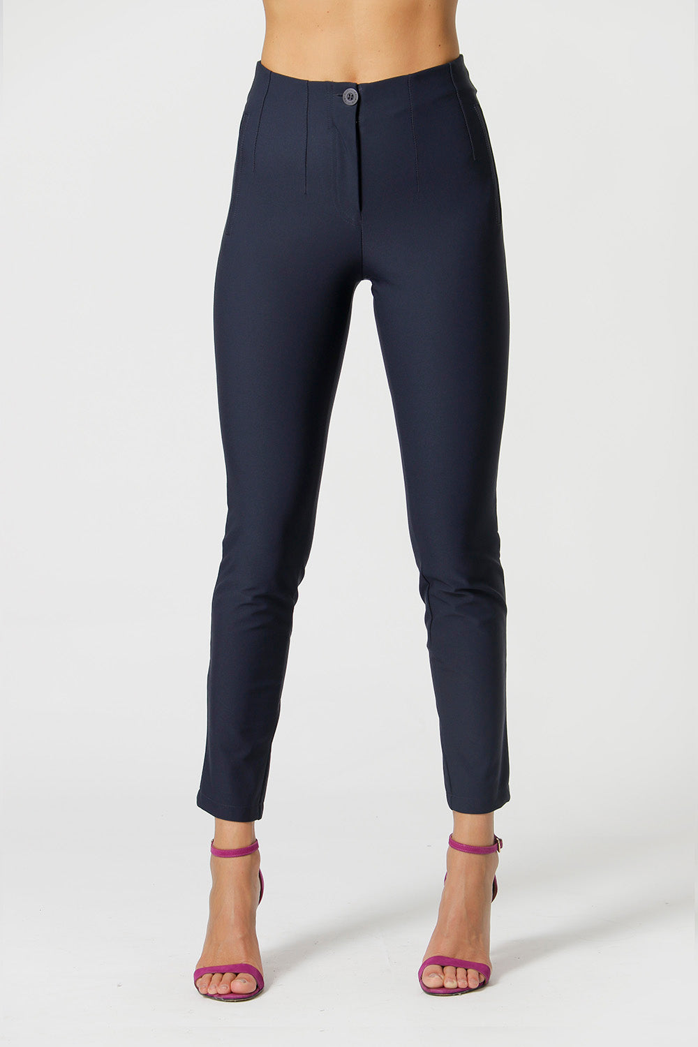 Pantalón pitillo con pinzas cosidas y bolsillos delanteros y traseros. Una pieza que complementa tanto looks laborales como casuales.