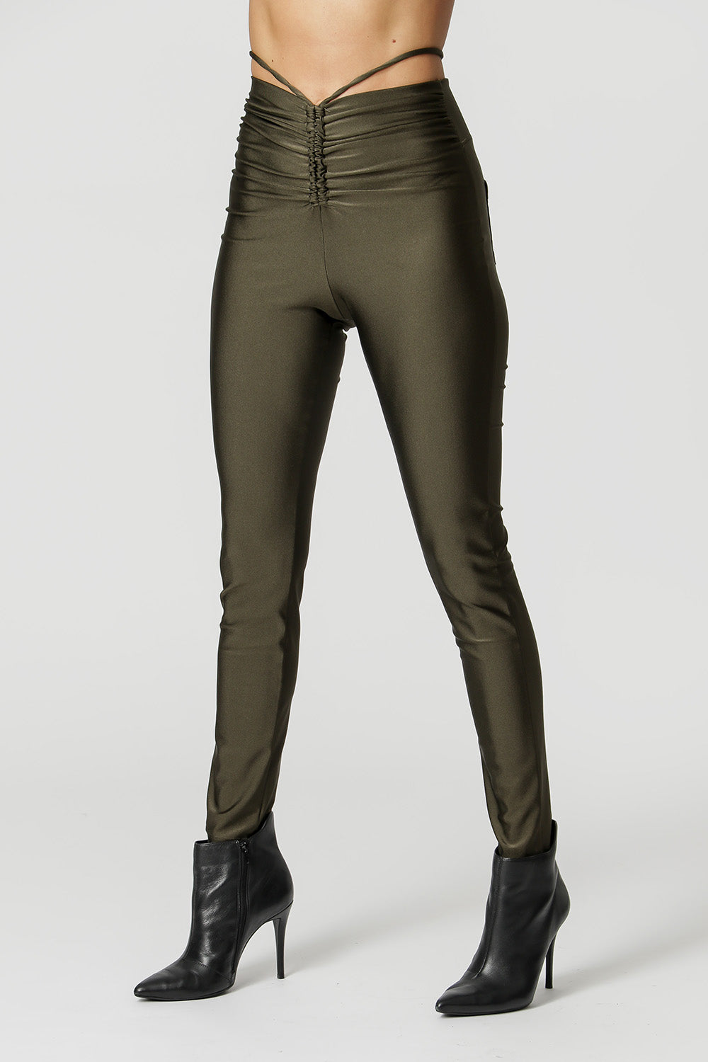 Pantalón de corte ajustado al cuerpo, confeccionado en tejido de punto fuerte y con detalle fruncido con lazo en la cintura. ¡Una pieza atrevida que le dará un toque especial a tu look de noche!