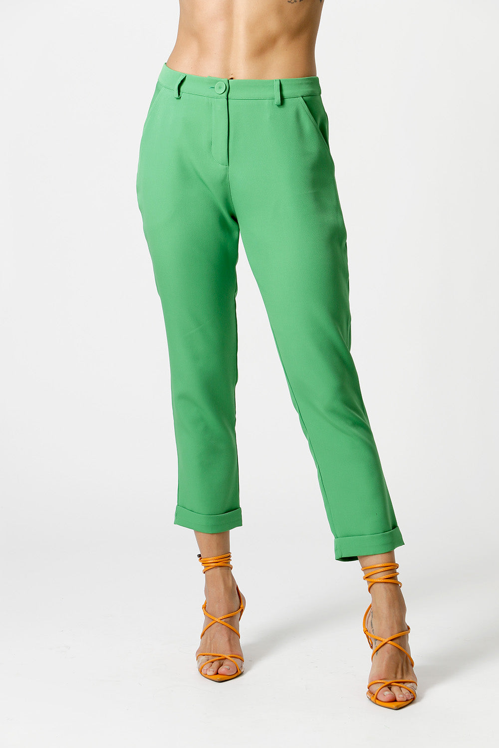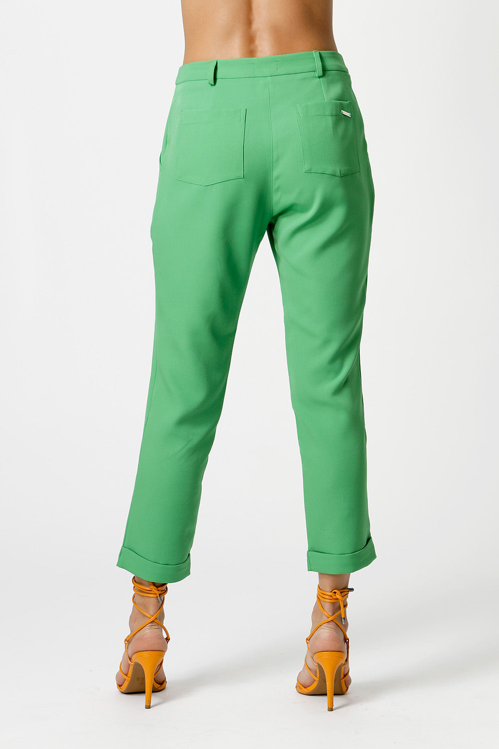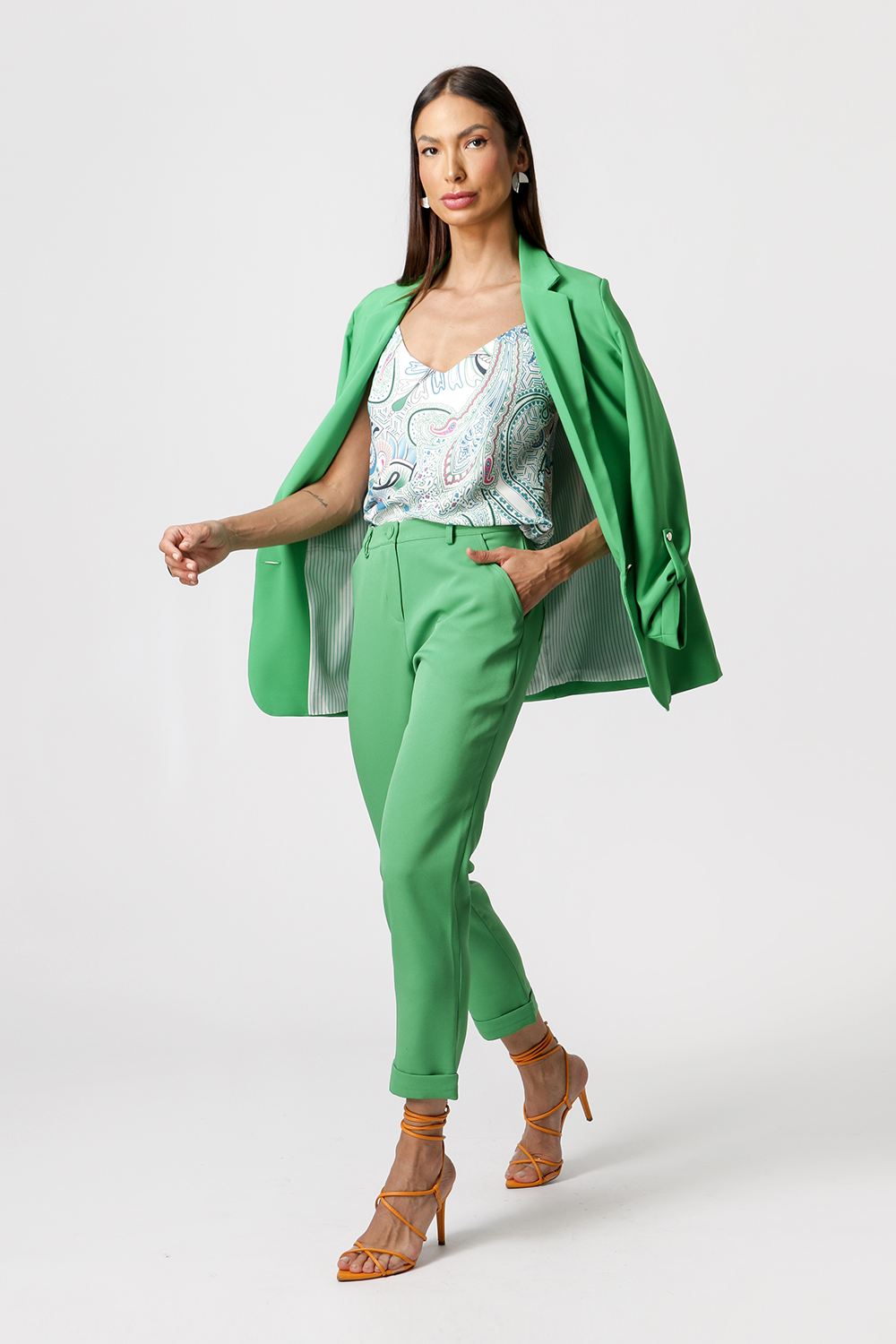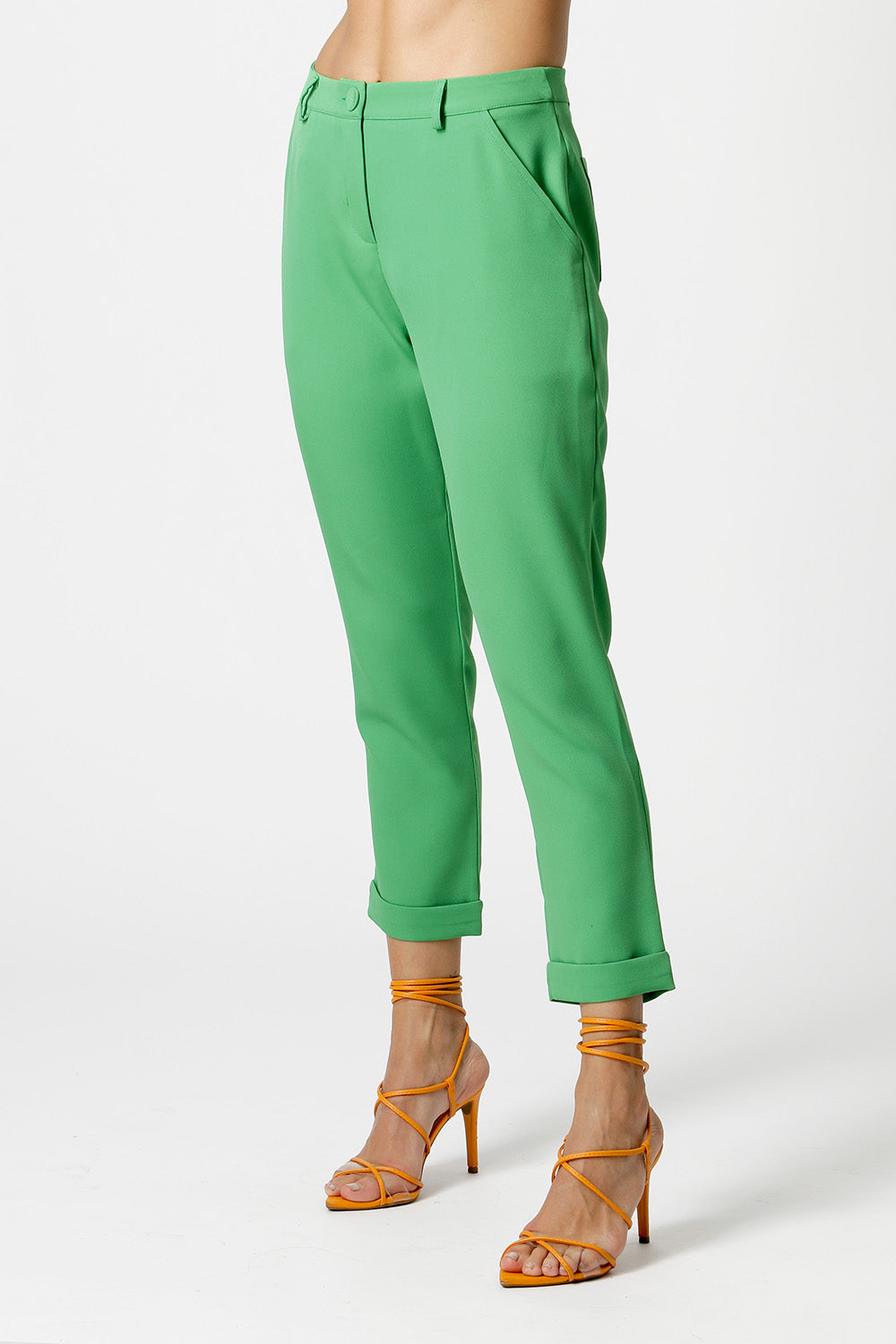 Pantalón entallado con apertura de cremallera y botón, bolsillo lateral y trabillas para cinturón. Pieza ideal para looks laborales y cotidianos.
