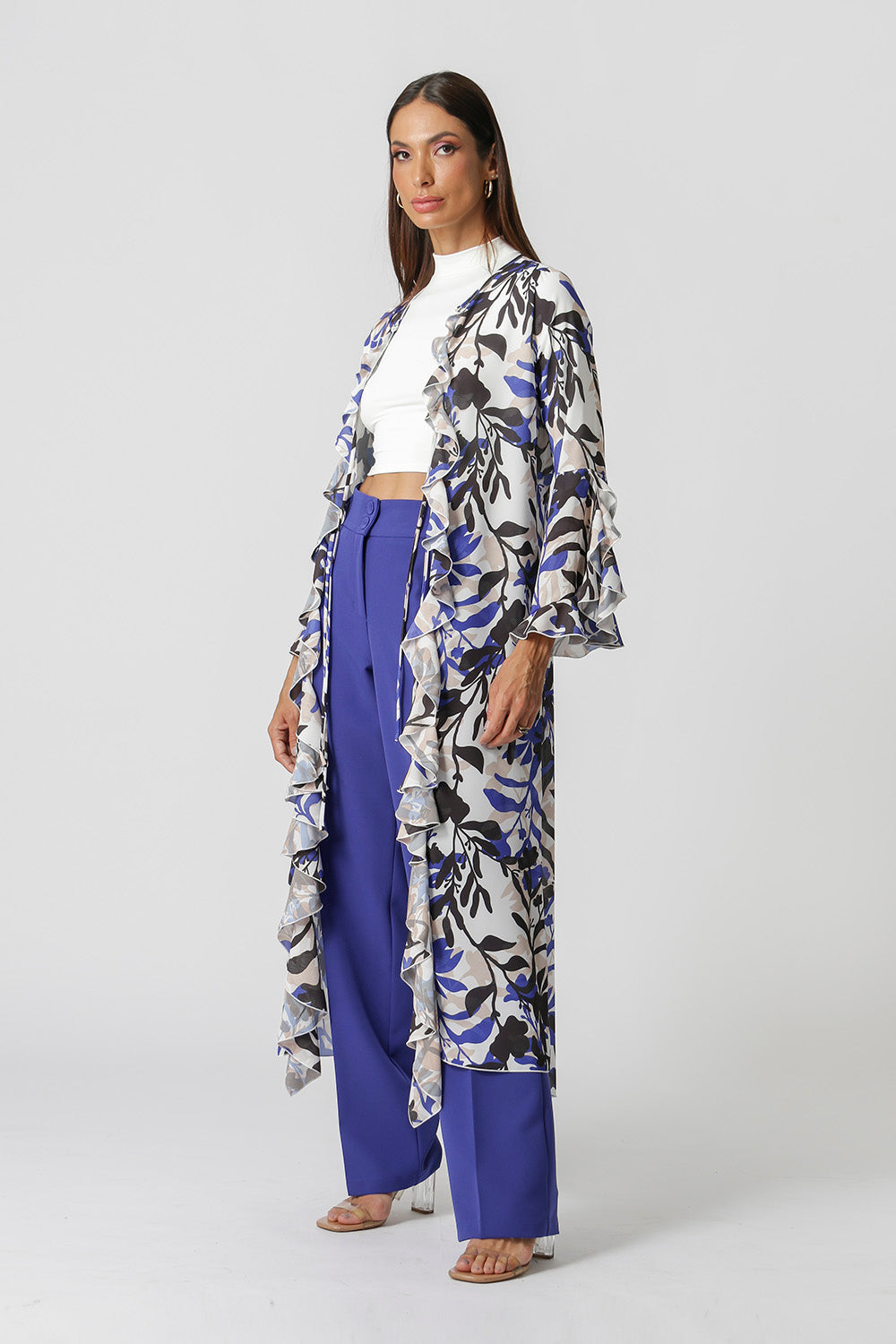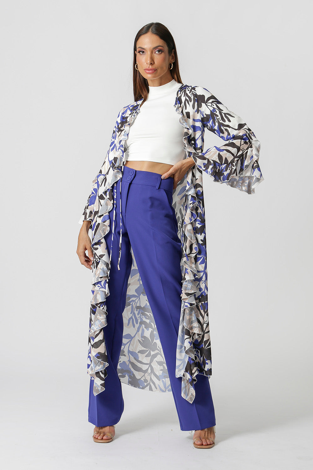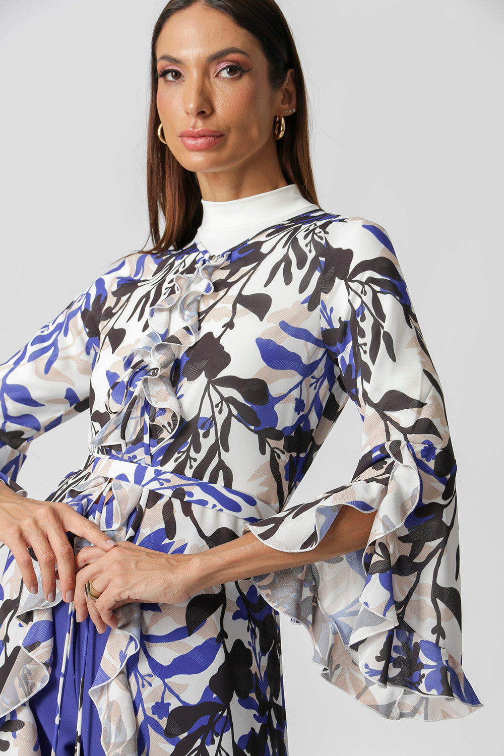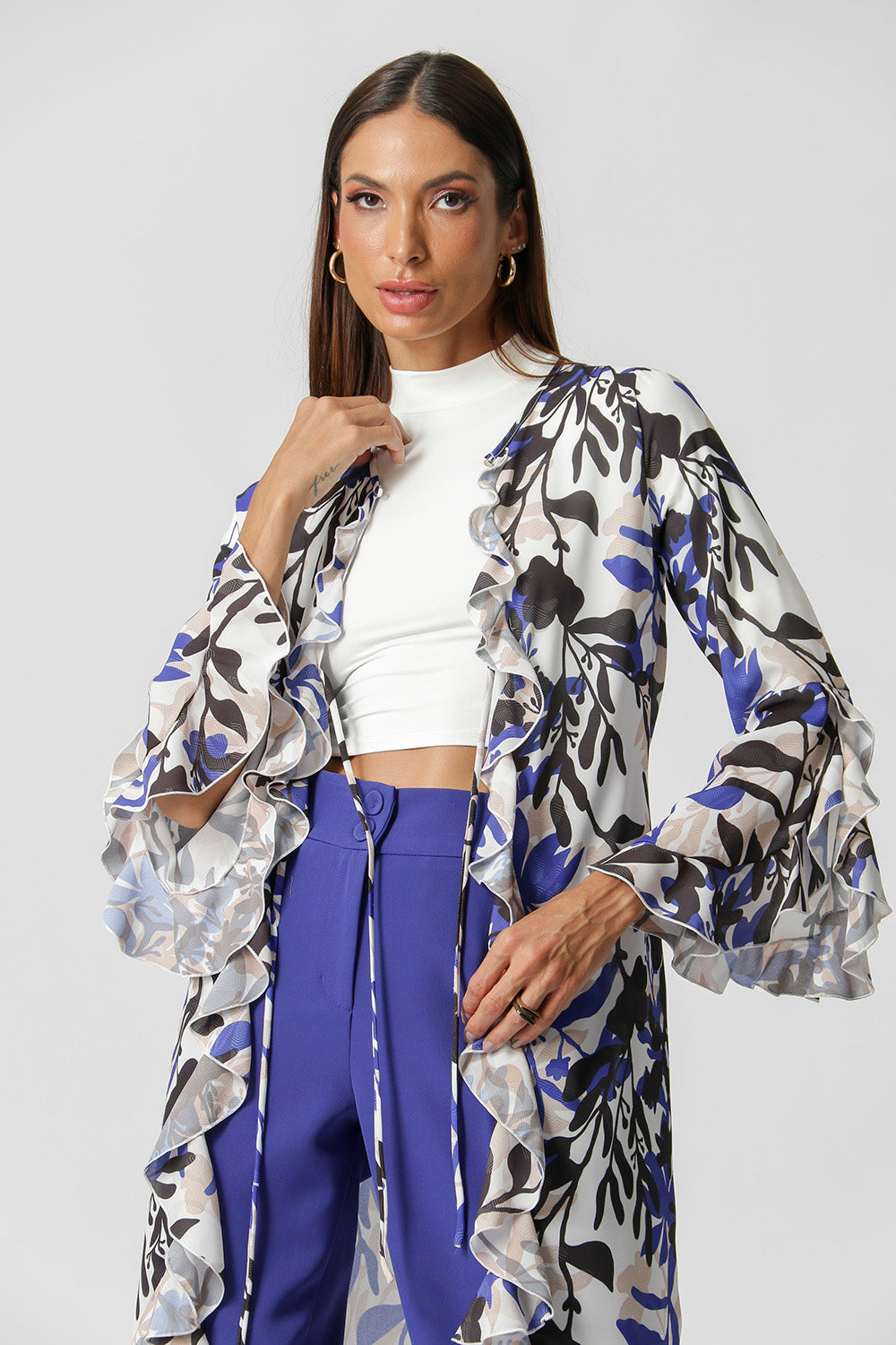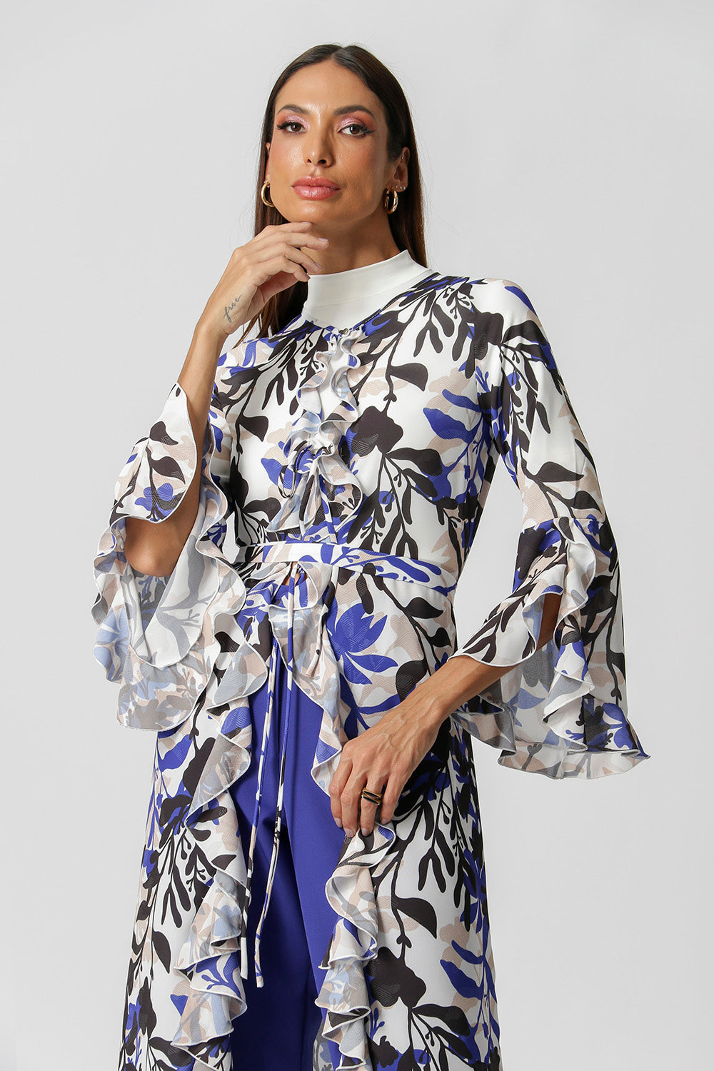 Camisa larga de manga ancha con volantes y lazos en la apertura de la pieza, que también puede usarse como vestido. Una pieza súper fresca que marcará la diferencia en tu look casual.