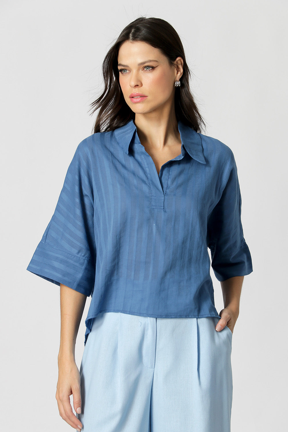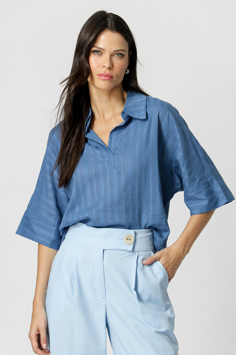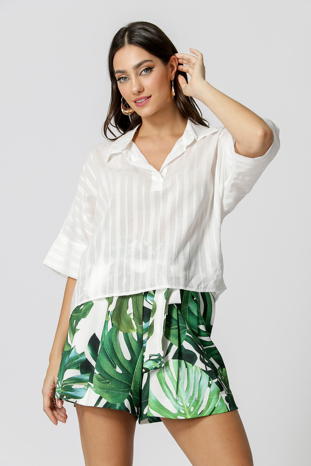 Camisa ampla com manga curta. Peça confeccionada em tecido voil. Um modelo leve, fresco e despojado para compor looks no seu dia-a-dia com estilo.
