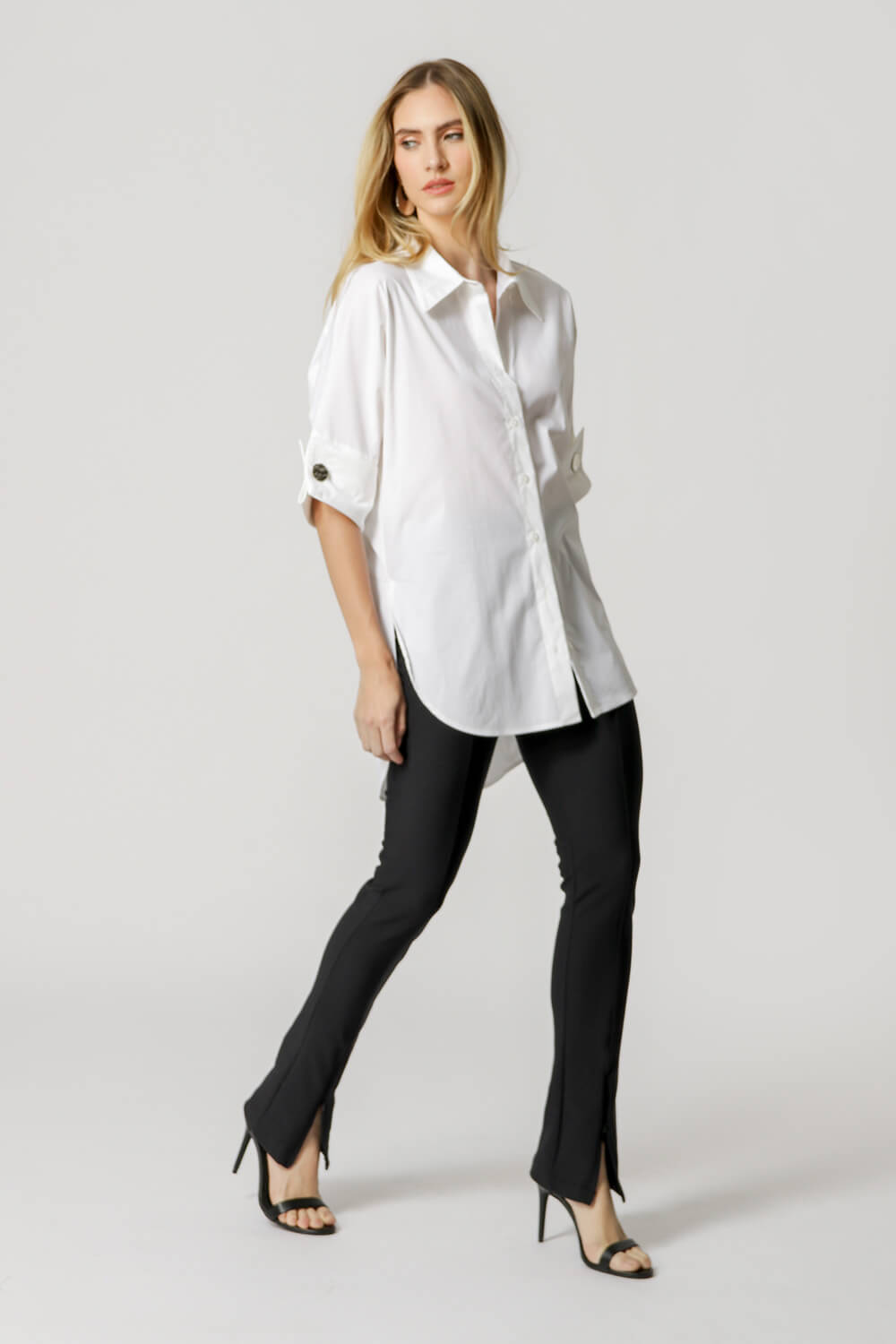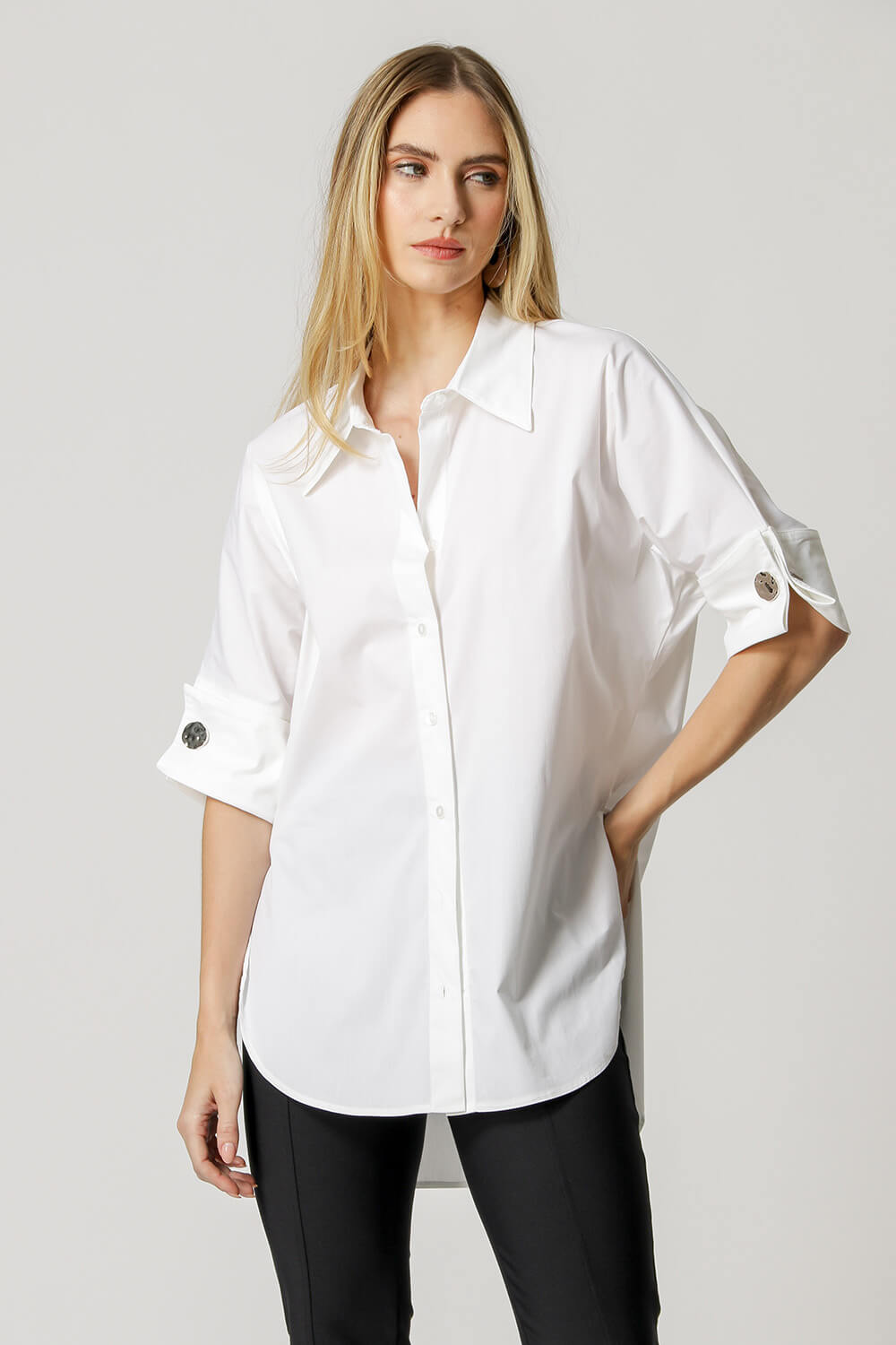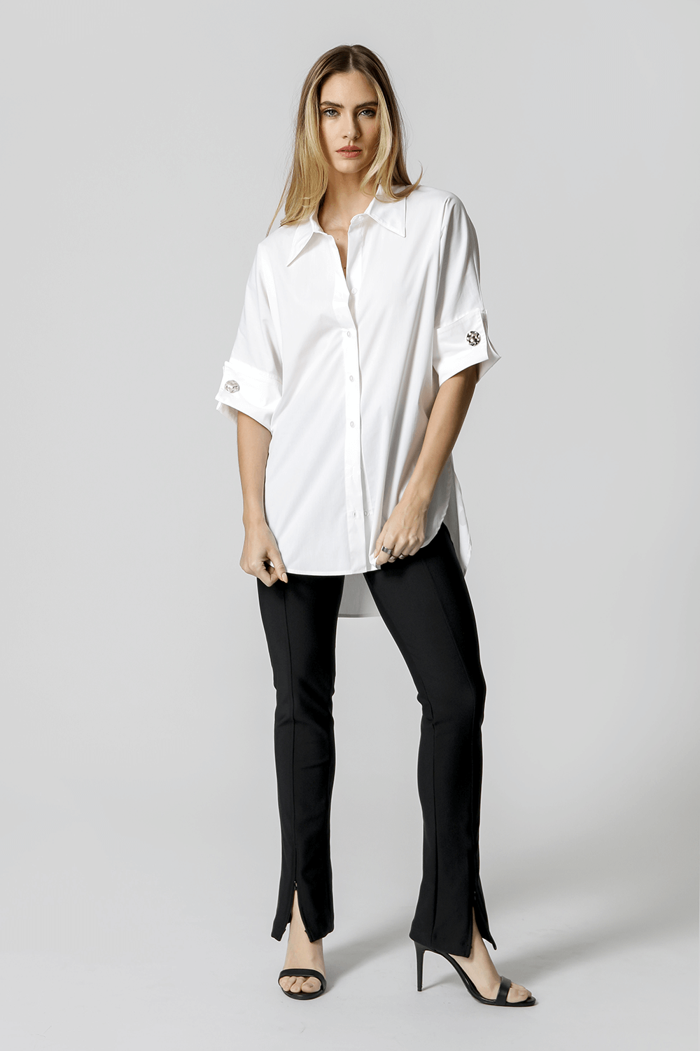 Camisa holgada con mangas 3/4 y detalle de botones. Pieza confeccionada en tejido tricolina. Un modelo muy casual y elegante que no puede faltar en tu armario.