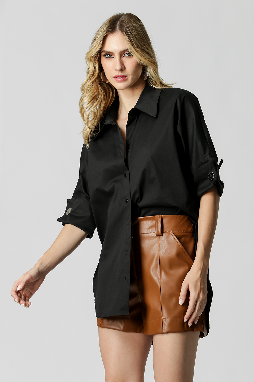 Camisa holgada con mangas 3/4 y detalle de botones. Pieza confeccionada en tejido tricolina. Un modelo muy casual y elegante que no puede faltar en tu armario.