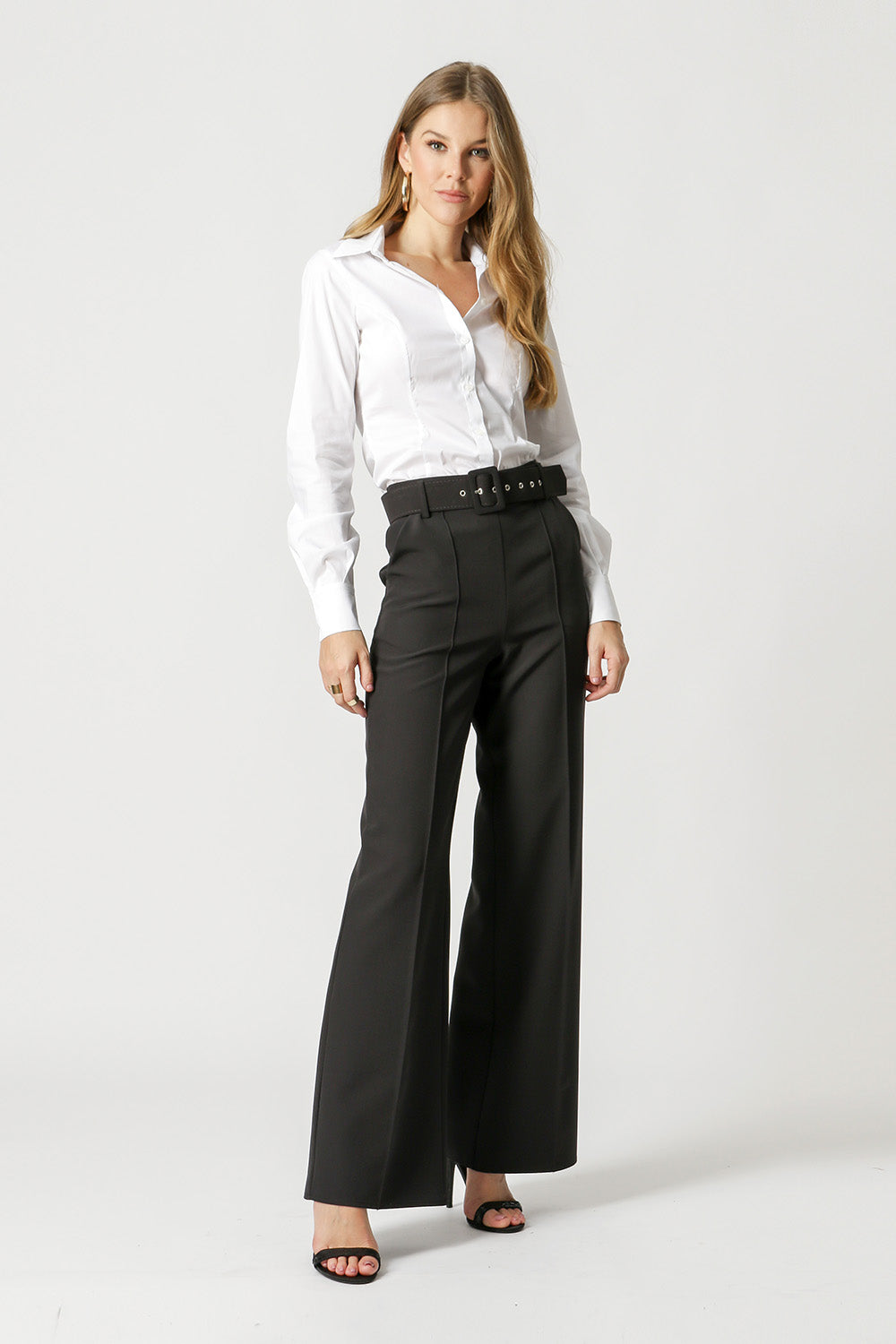 Camisa confeccionada en popelina. Tiene una apertura frontal con botones, puños anchos con aberturas de dos botones y una forma que se ajusta al cuerpo. Pieza ideal para looks de trabajo, y también para looks menos formales.