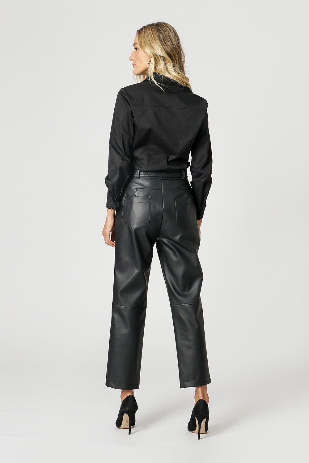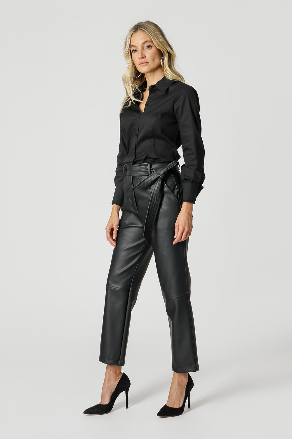 Camisa confeccionada en popelina. Tiene una apertura frontal con botones, puños anchos con aberturas de dos botones y una forma que se ajusta al cuerpo. Pieza ideal para looks de trabajo, y también para looks menos formales.