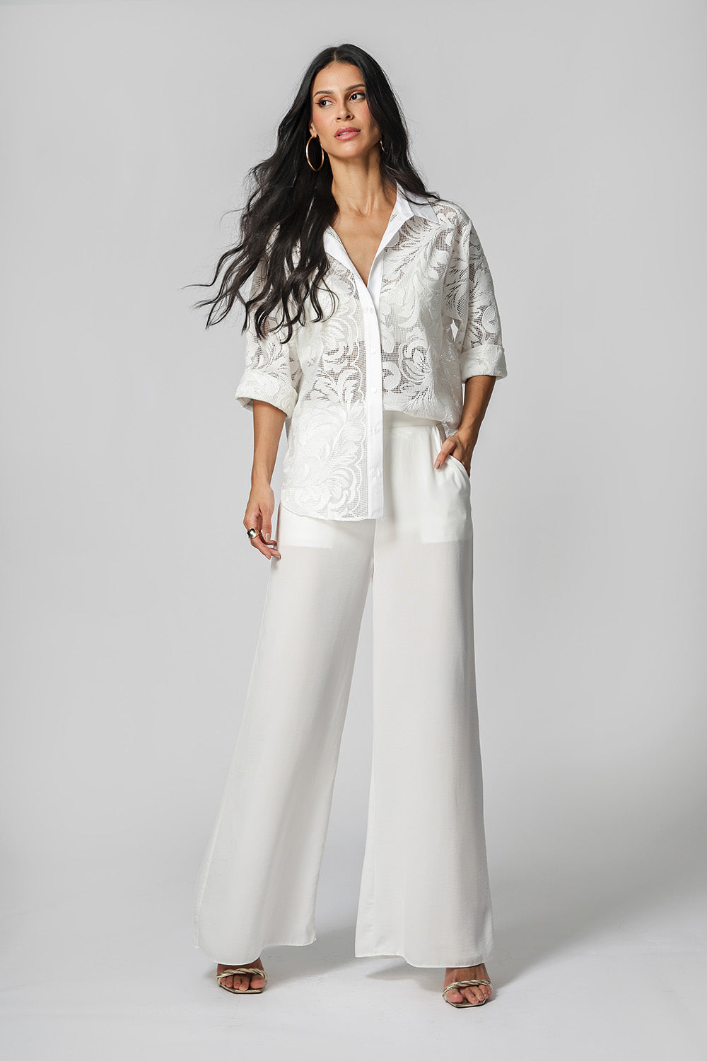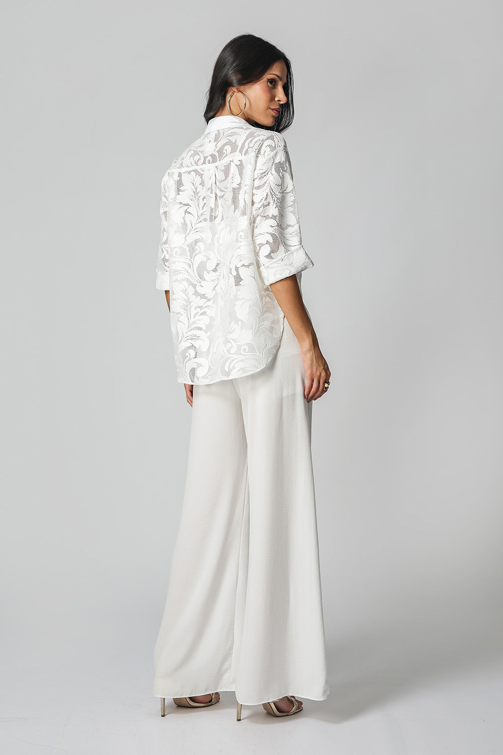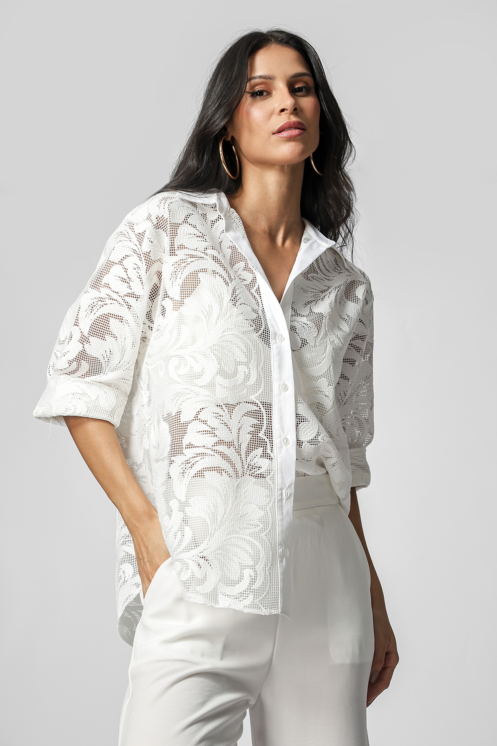 Camisa bordada manga 3/4, modelo despojado ideal para quem procura elegância e casual.