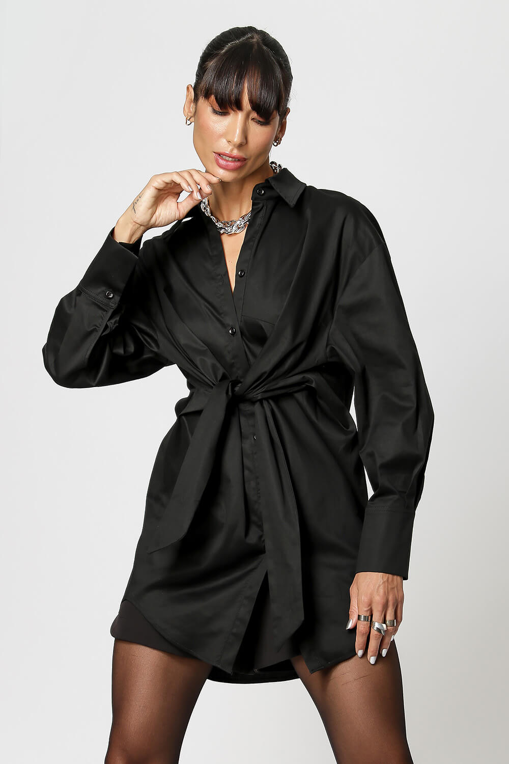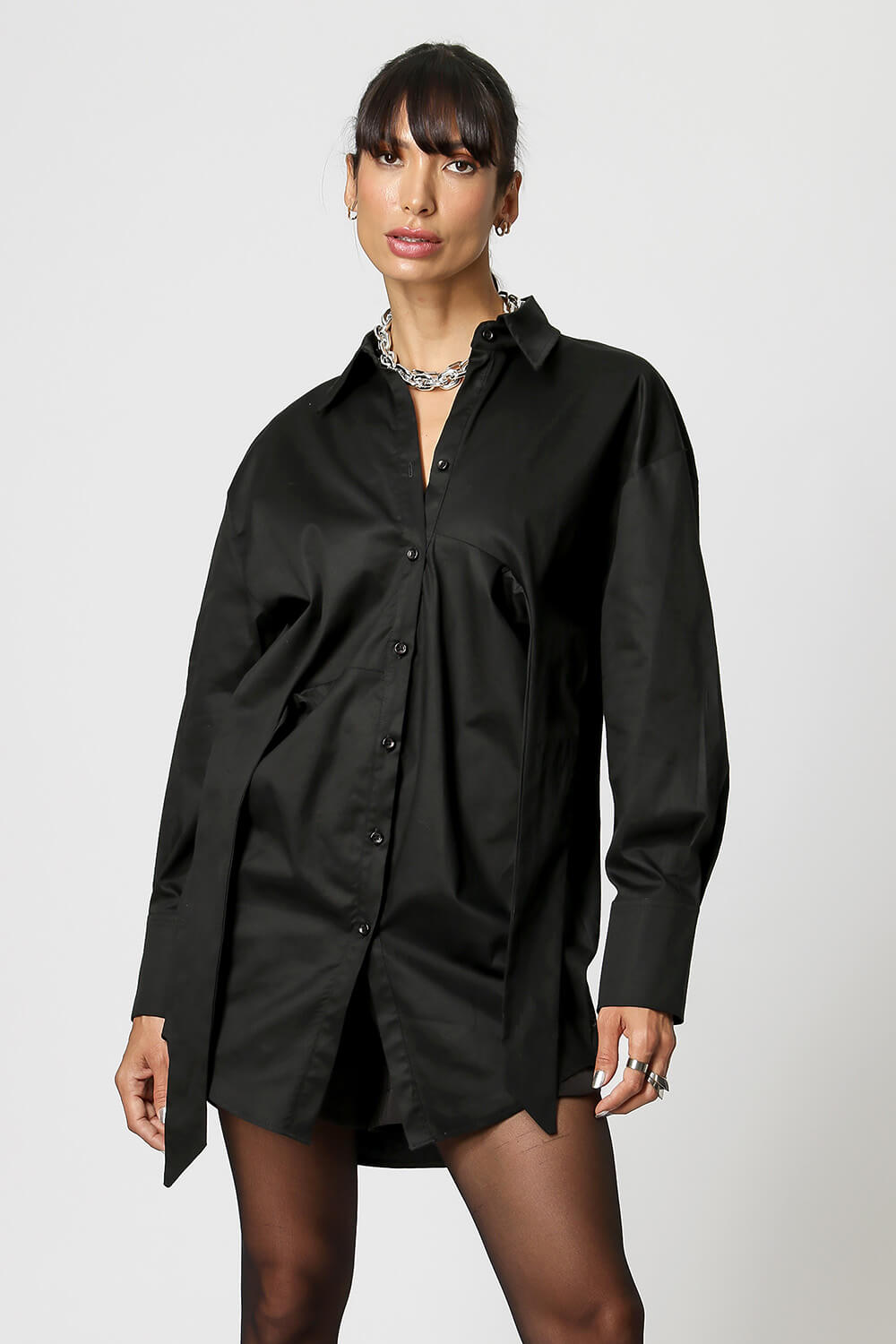 Camisa con lazo y botones asimétricos. Pieza confeccionada en tejido tricolina. Un modelo único con múltiples usos que no puede faltar en tu armario.