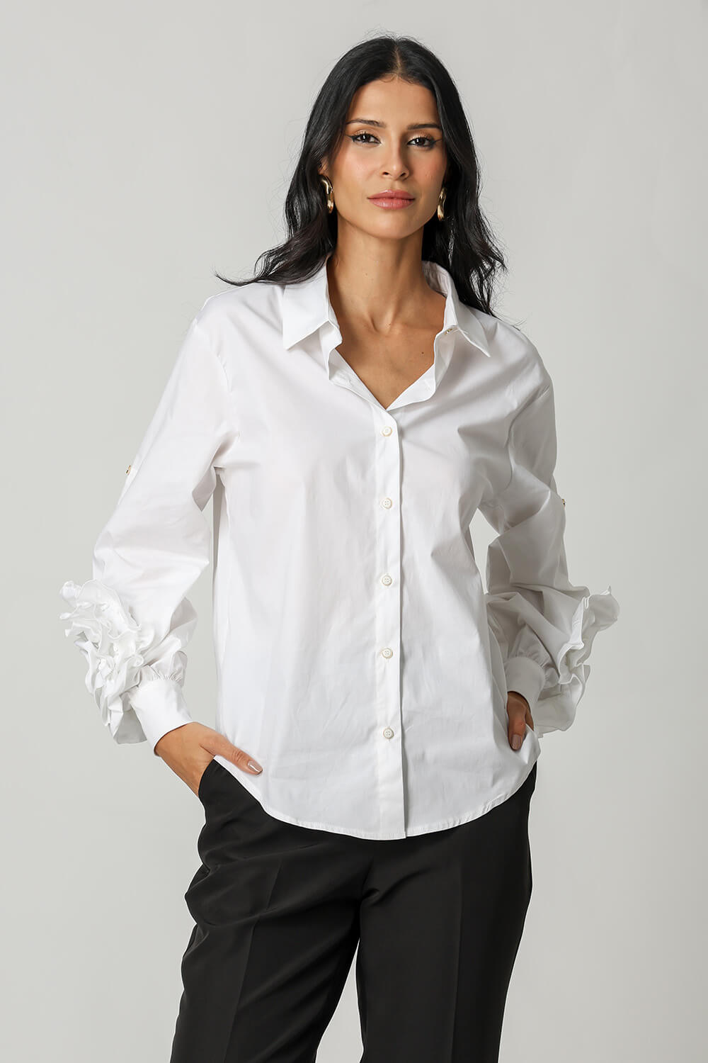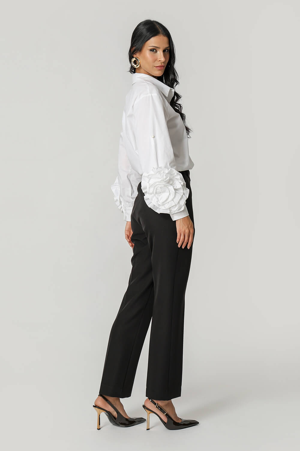 Con un diseño sofisticado, esta camisa destaca por su exclusivo detalle de flores 3D en el puño, aportando delicadeza y estilo. Perfecto para crear looks modernos y refinados, ideal para el trabajo o eventos especiales.