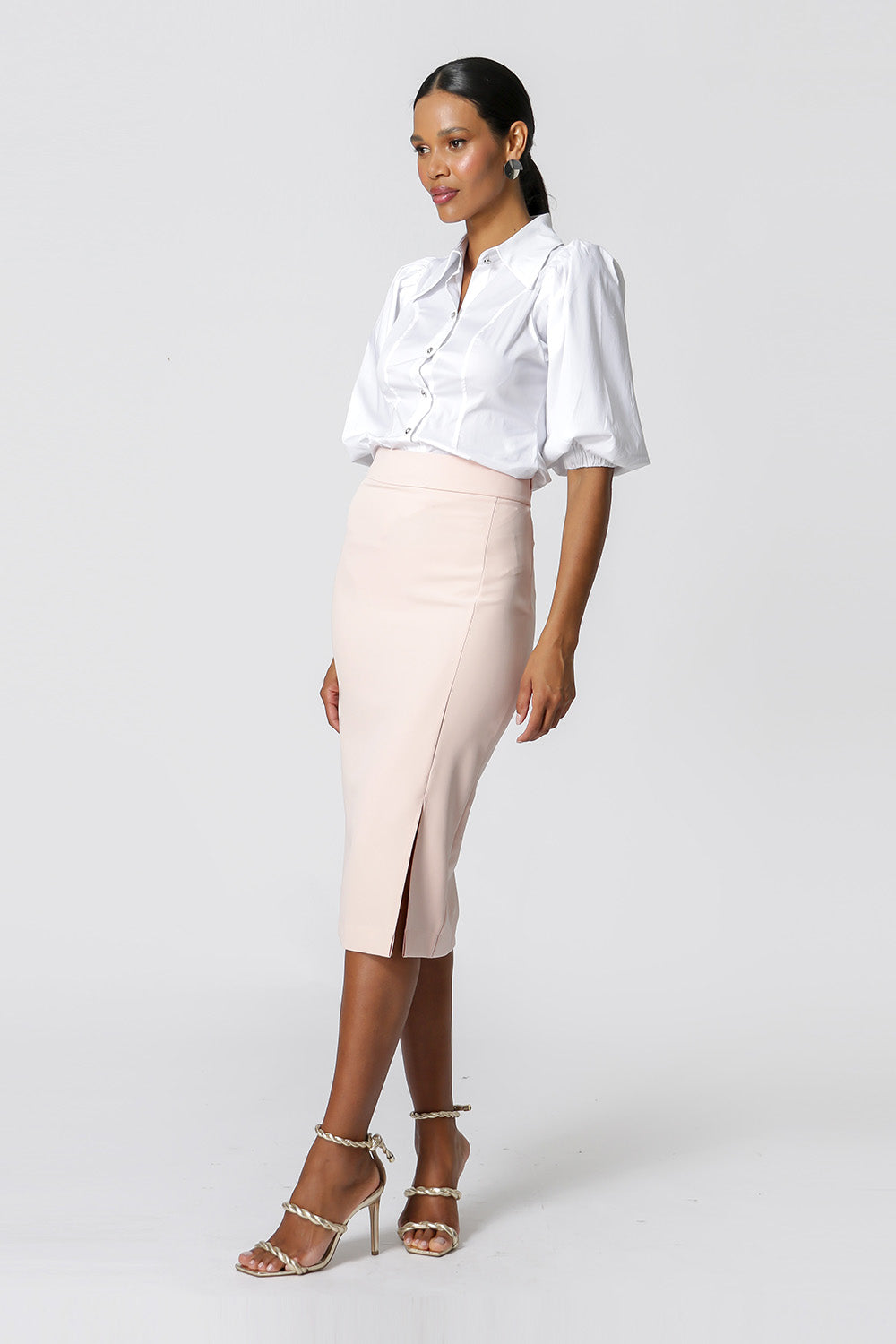 Camisa con mangas 3/4 abullonadas y botones. Fabricado en tejido tricolina. Una pieza imprescindible para crear looks clásicos y elegantes.