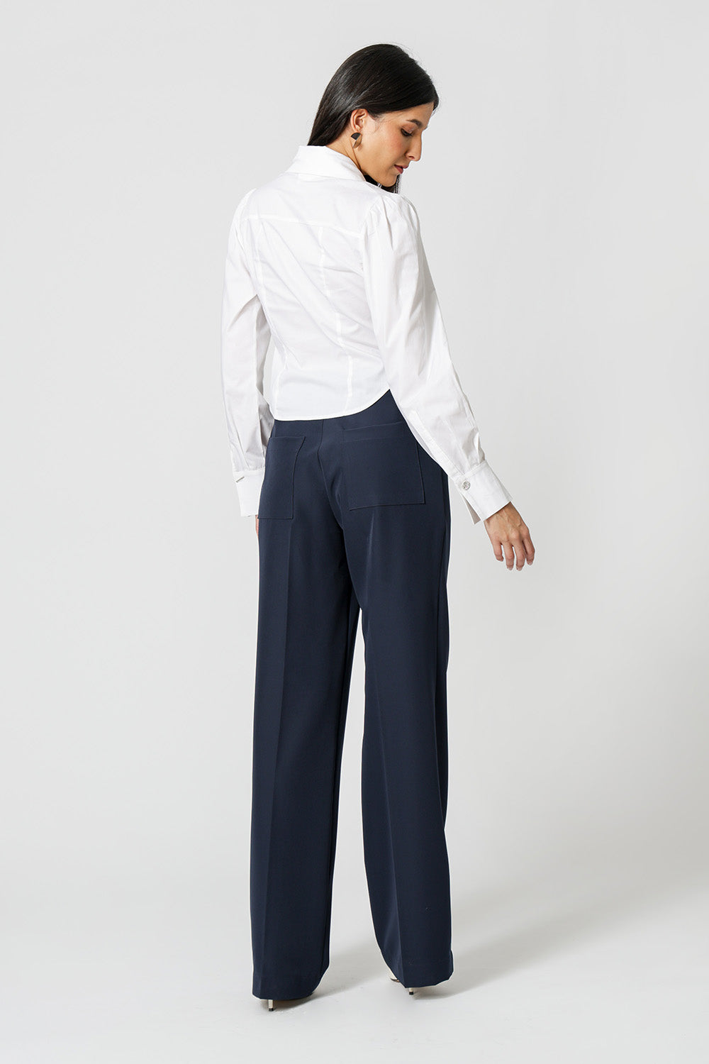 Camisa com modelagem corset, barbatanas frontais que valorizam a silhueta e mangas longas com abotoamento elegante. Confeccionada em tricoline encorpado, une sofisticação e estrutura em uma peça única.