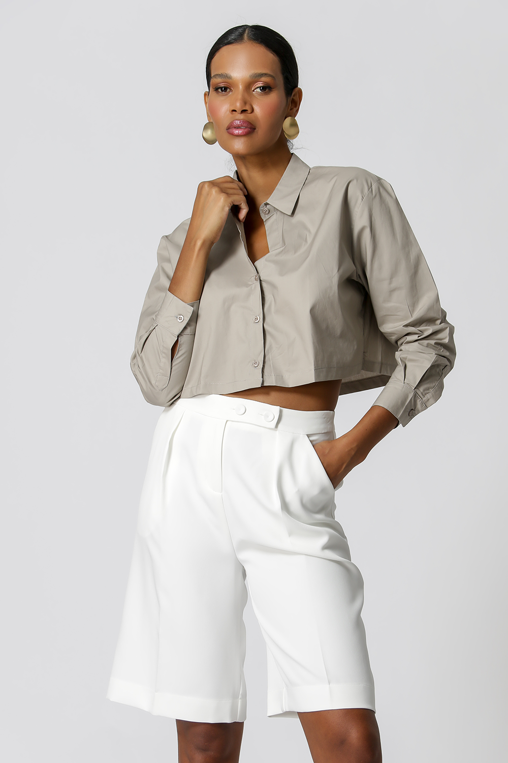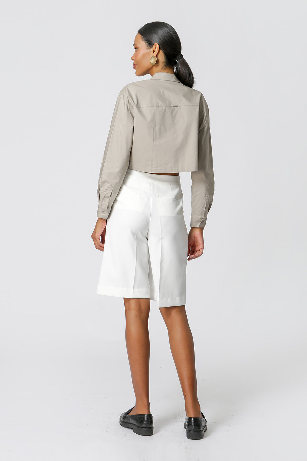Camisa corta. Fabricado en tejido tricolina. Un modelo cómodo y casual para crear looks de trabajo.
