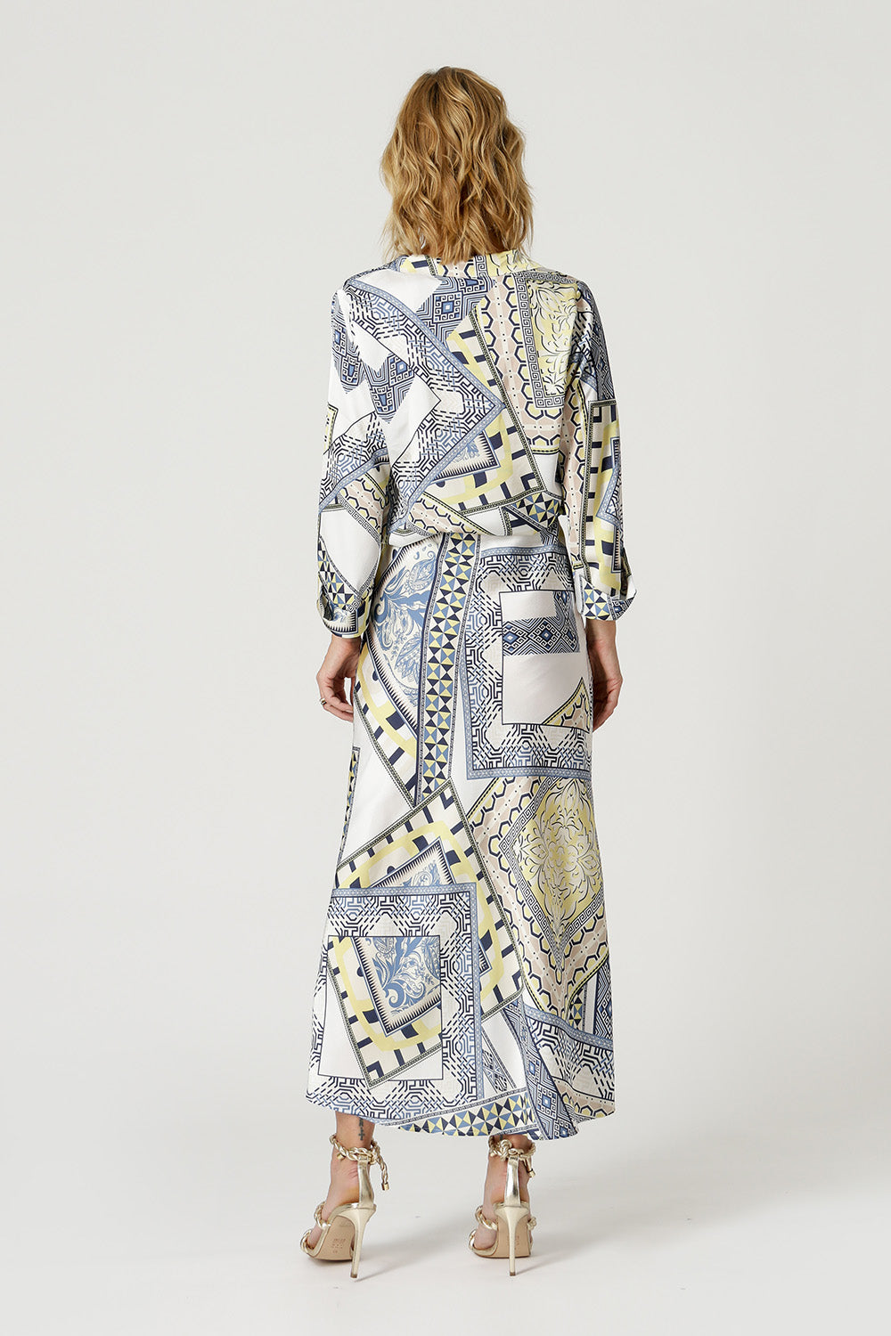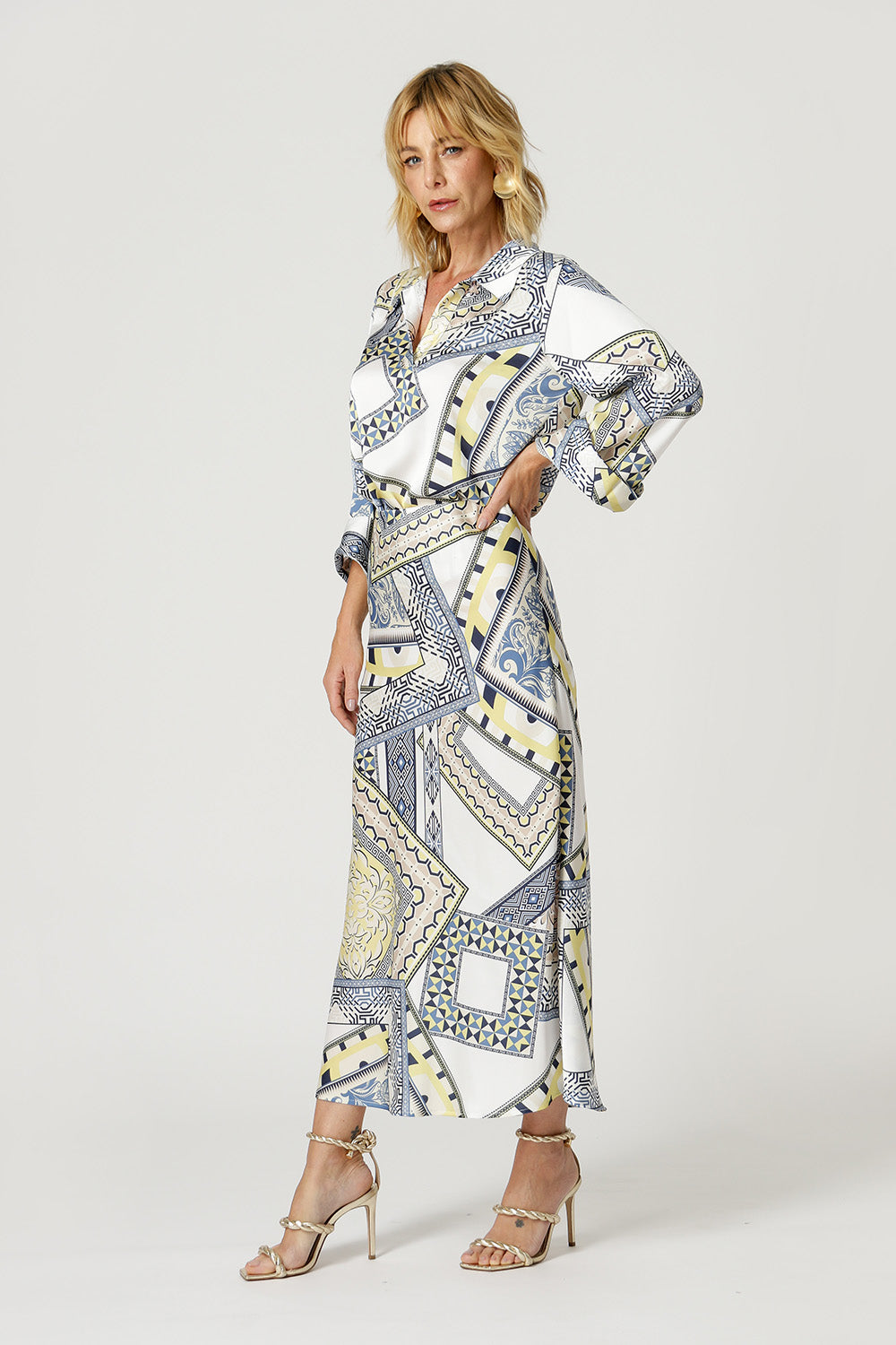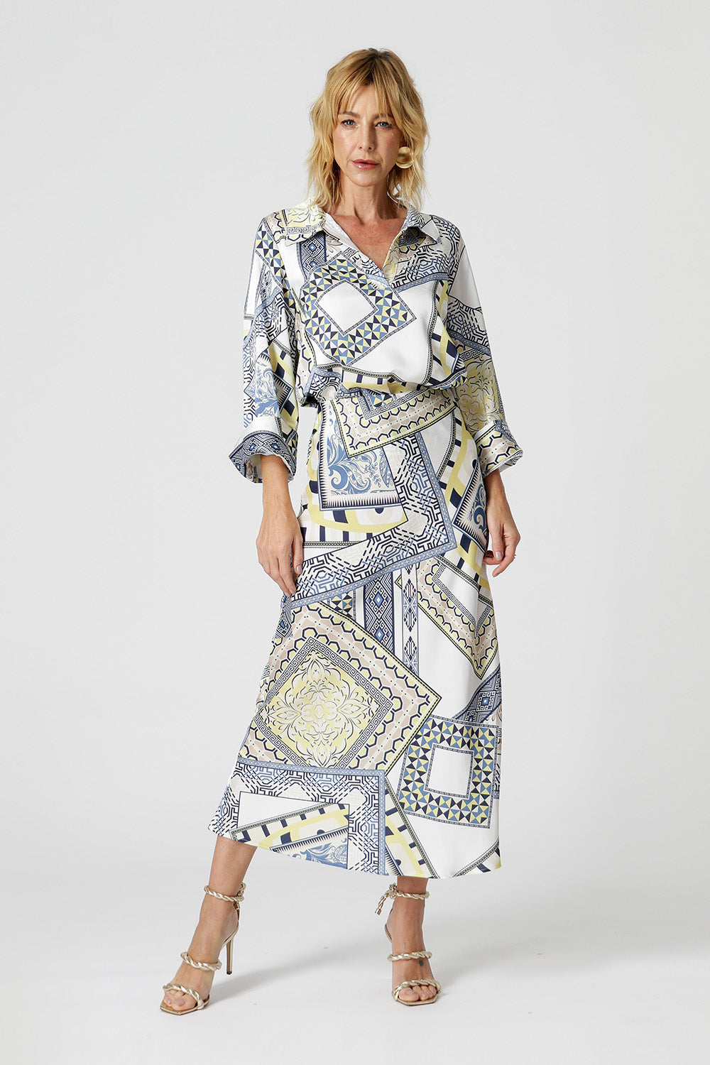 Camisa com manga 3/4. Confeccionada em tecido cetim bubble estampada. Uma peça confortável e fluída ideal para ser usado em dias quentes no mood work.