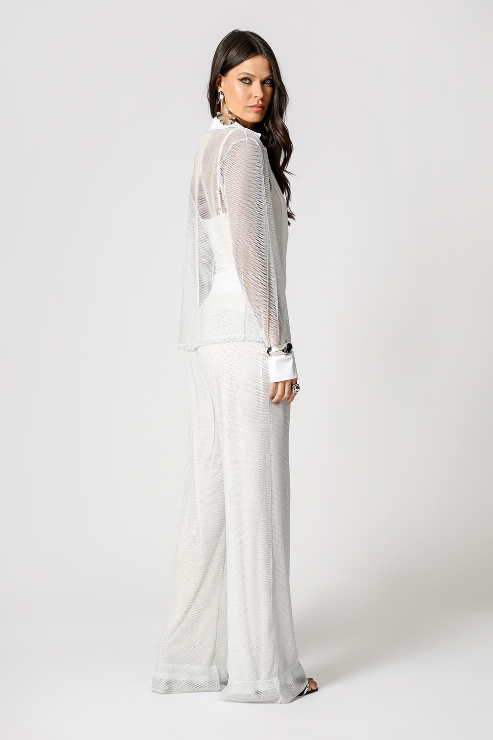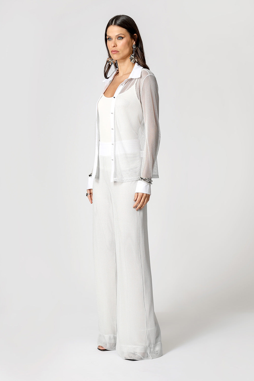 Camisa de malla transparente. Ideal para crear looks atrevidos y contemporáneos, esta camisa es la elección correcta para quienes buscan originalidad con un toque de elegancia.