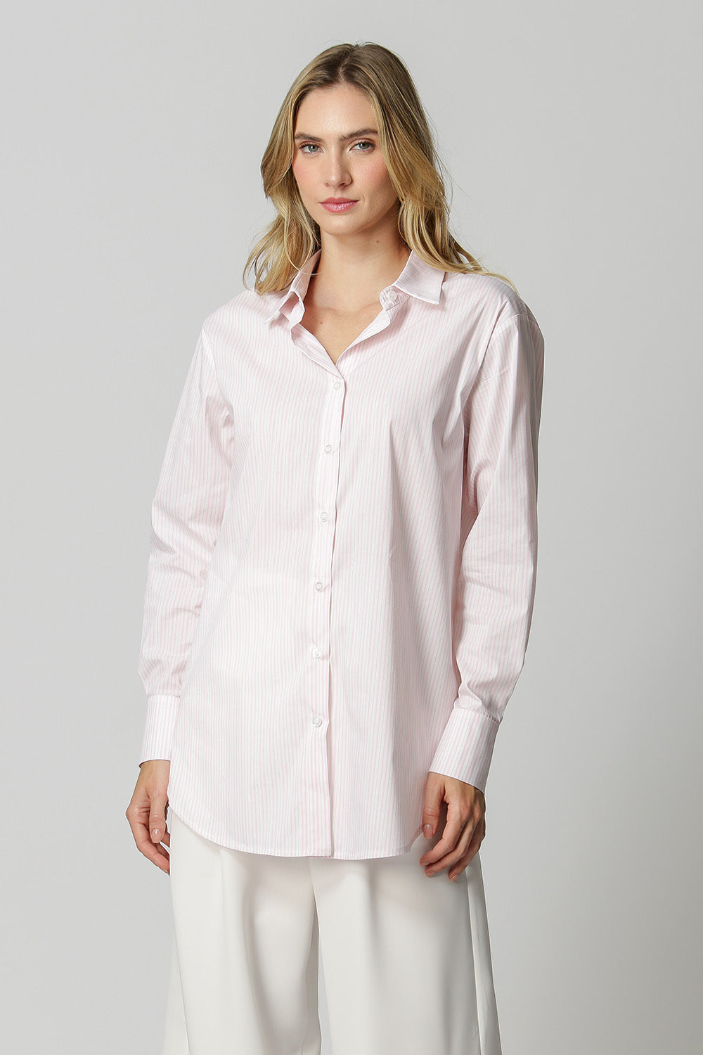 Camisa oversize de popelina de rayas con cuello y puños. ¡Un básico diferente para crear looks de trabajo!