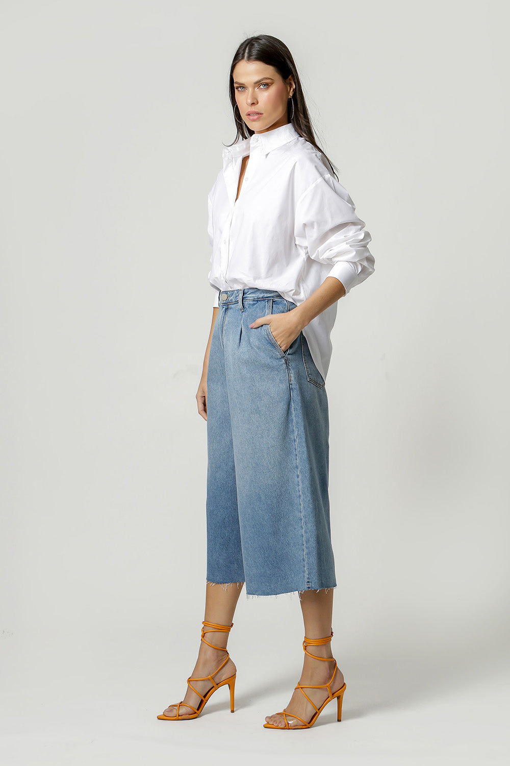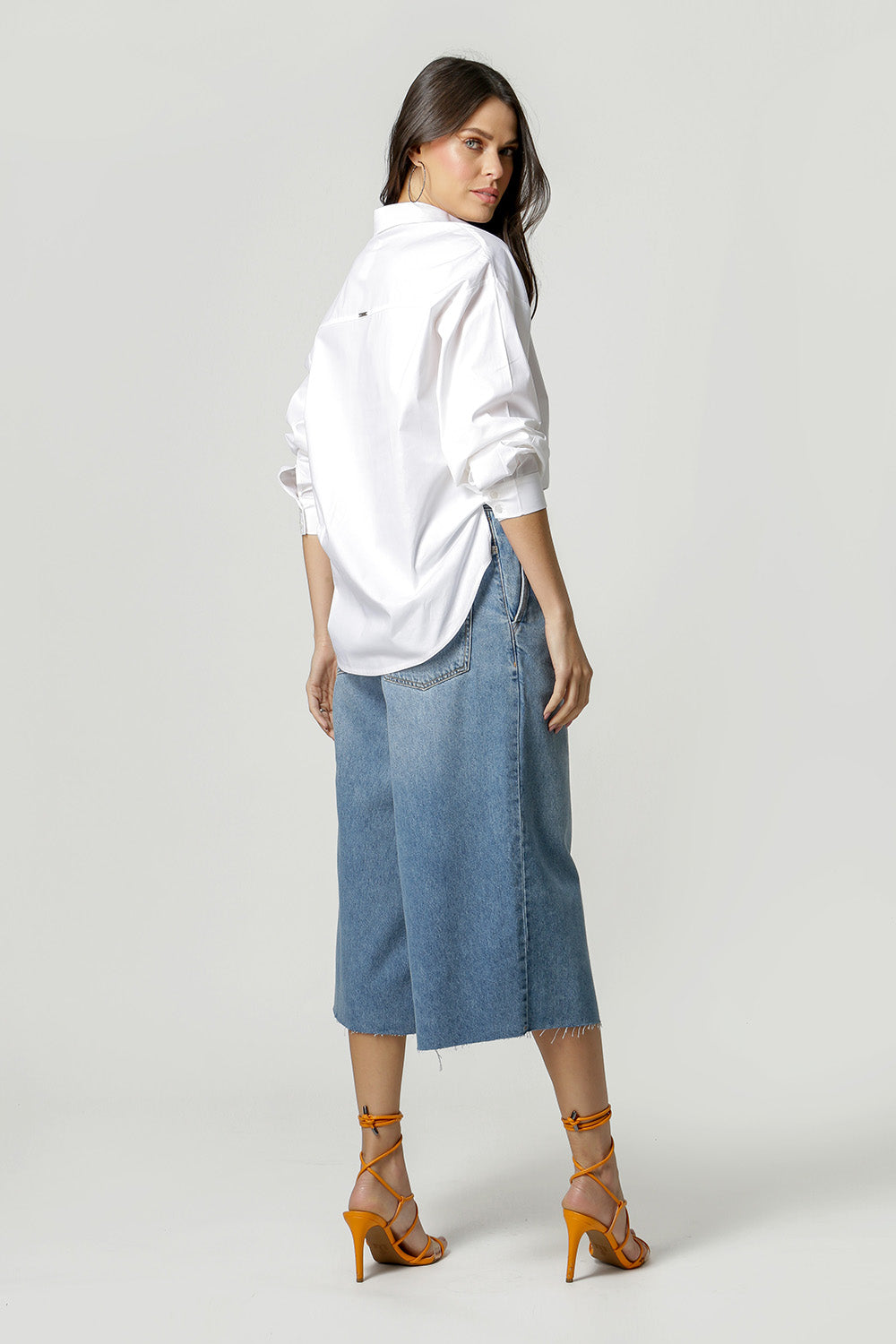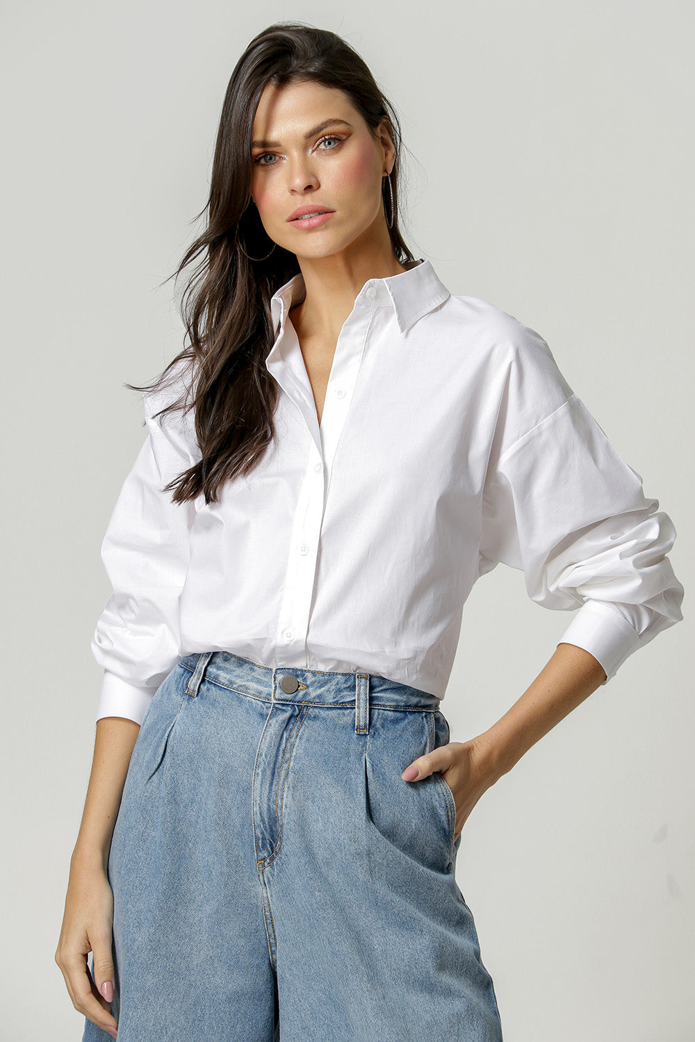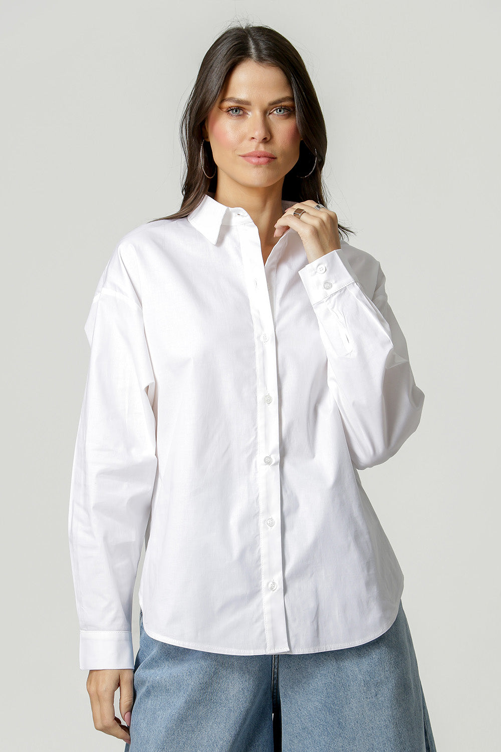 La pieza tiene un diseño oversize que da un ajuste holgado al cuerpo, mangas largas y una abertura lateral. Camisa confeccionada en popelina, súper elegante y versátil.