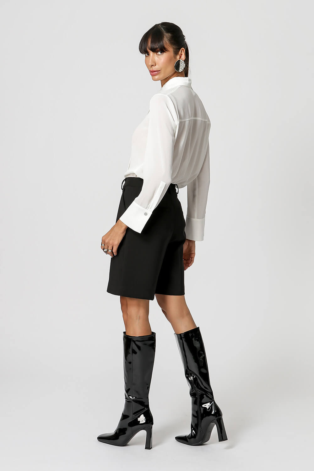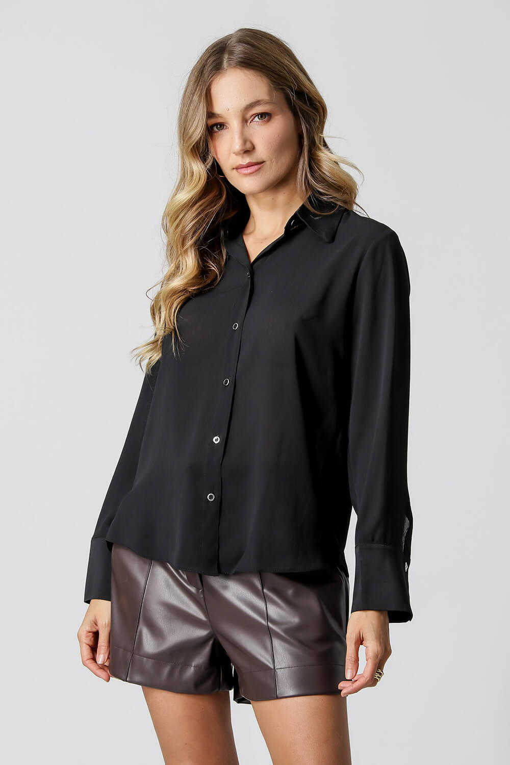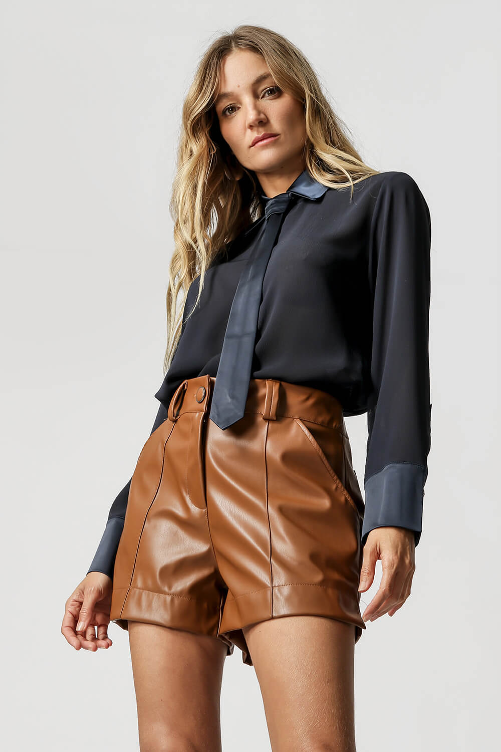 Camisa com uma leve transparência com detalhe de botões e com acessório gravata. Modelo confeccionada em tecido chiffon com leve textura plissado. Modelo elegante, moderno por trazer esse acessório gravata para compor seu look que esta super em alta, aposte.