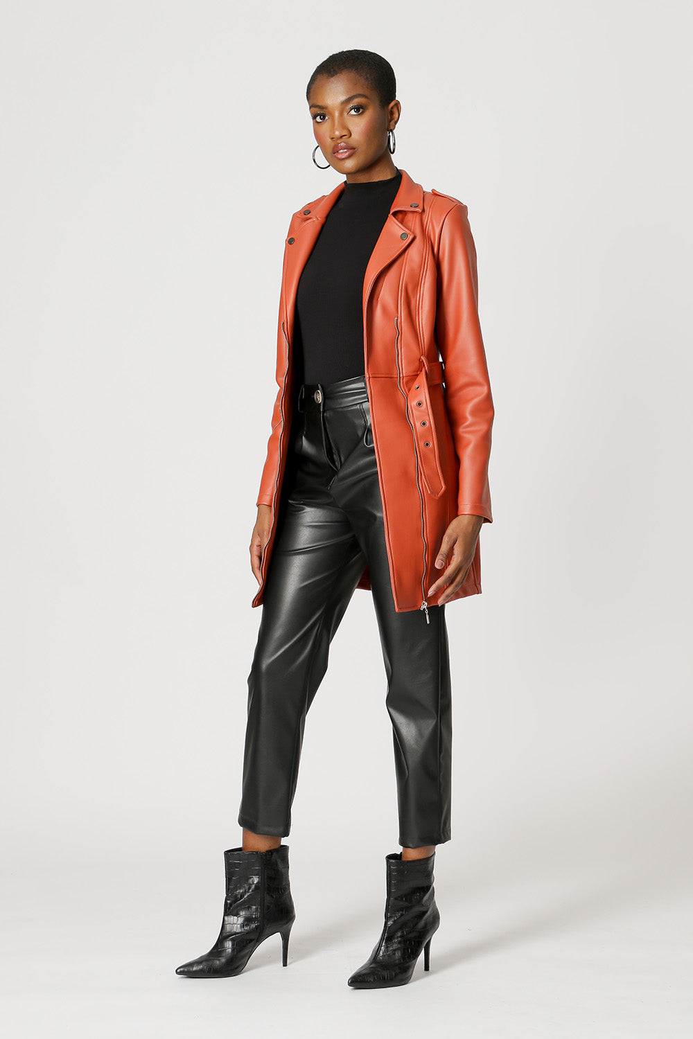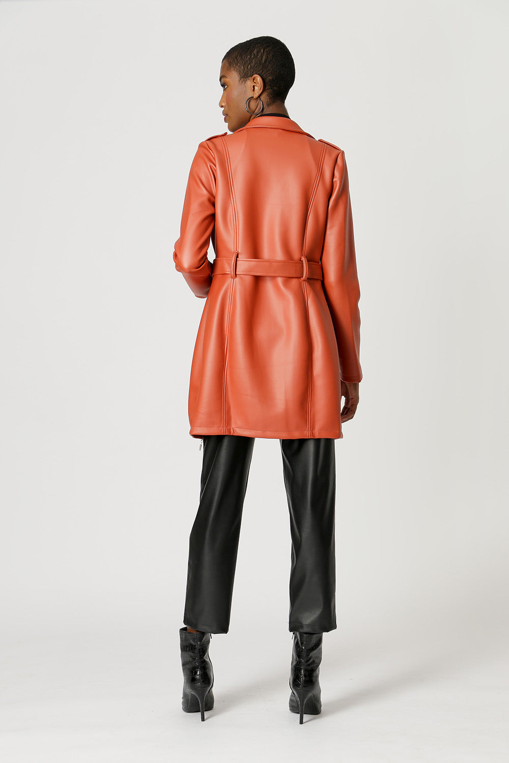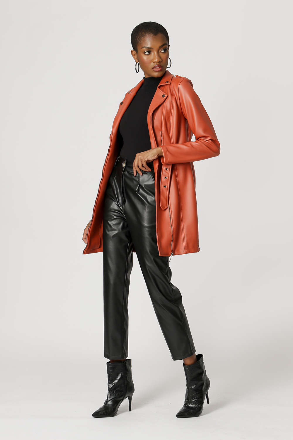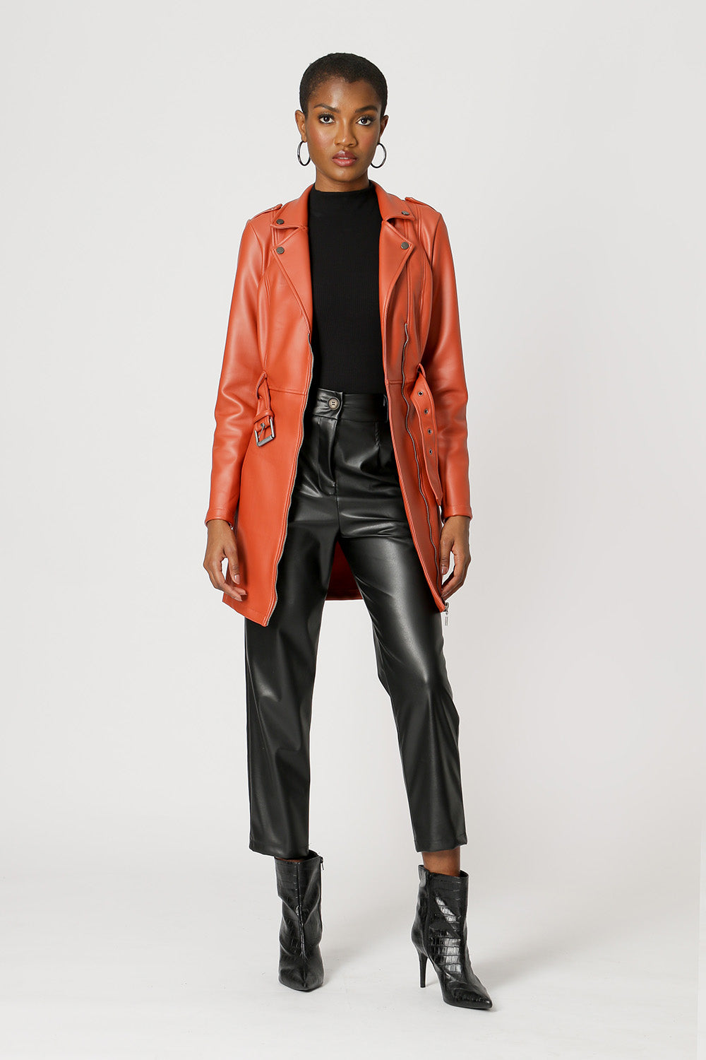 Gabardina confeccionada en neopreno recubierto de resina. Tiene detalles recortados, botones y cinturón con hebilla metálica. Prenda imprescindible y versátil que podrás combinar con todo tu armario.