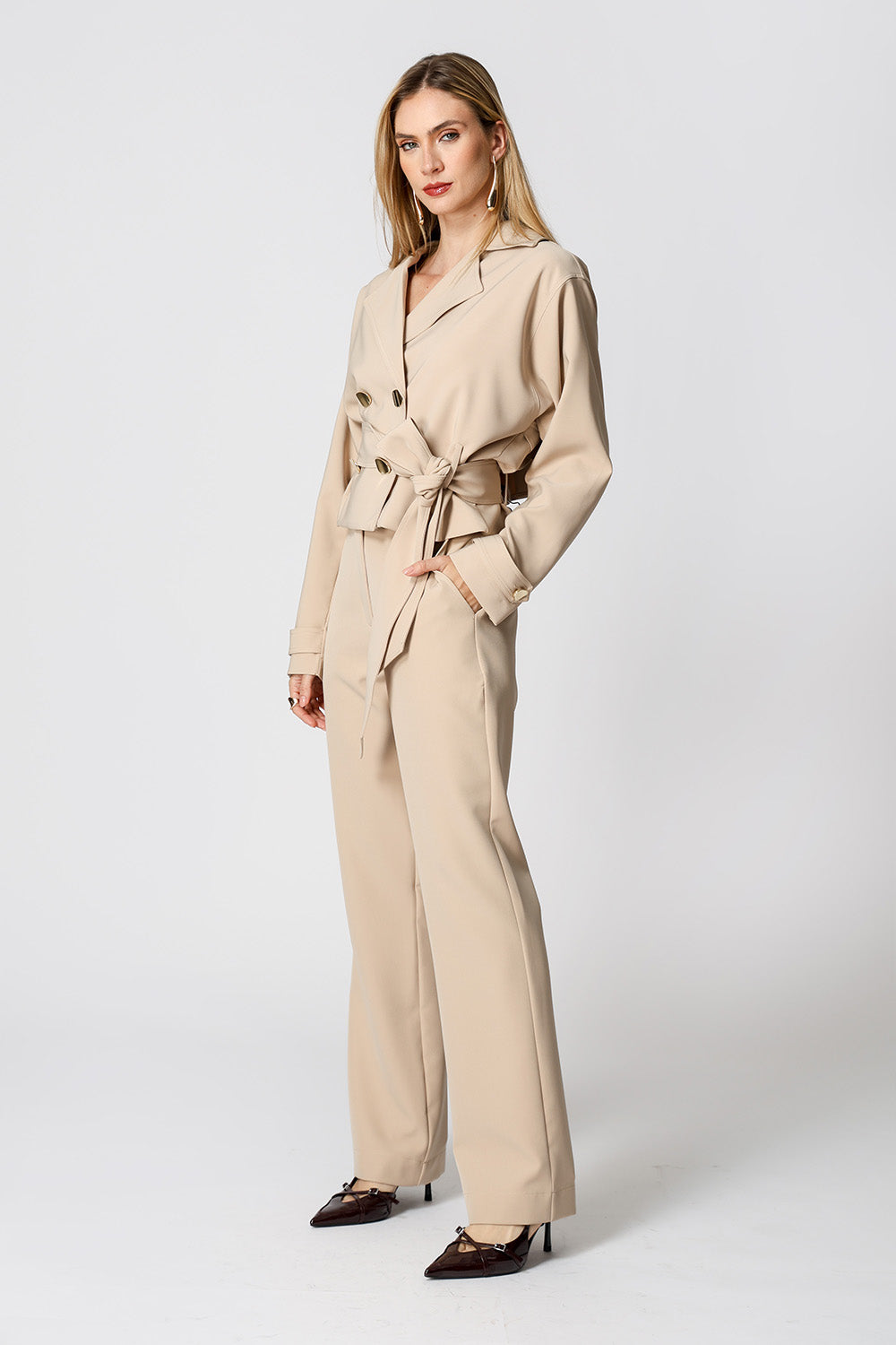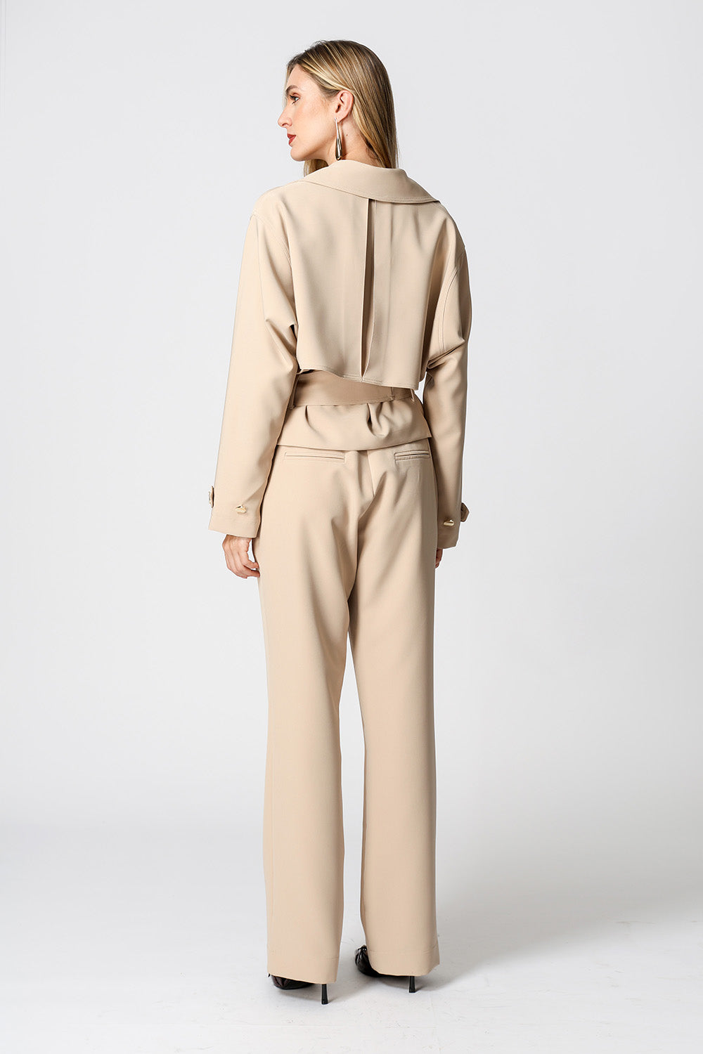 Gabardina corta de corte holgado y relajado. El diseño moderno y el corte estructurado garantizan un aspecto sofisticado y elegante. El abrigo es la elección perfecta para quienes buscan estilo y versatilidad para cualquier ocasión.