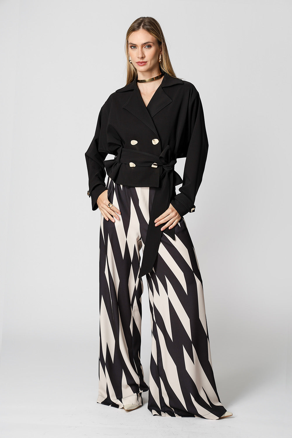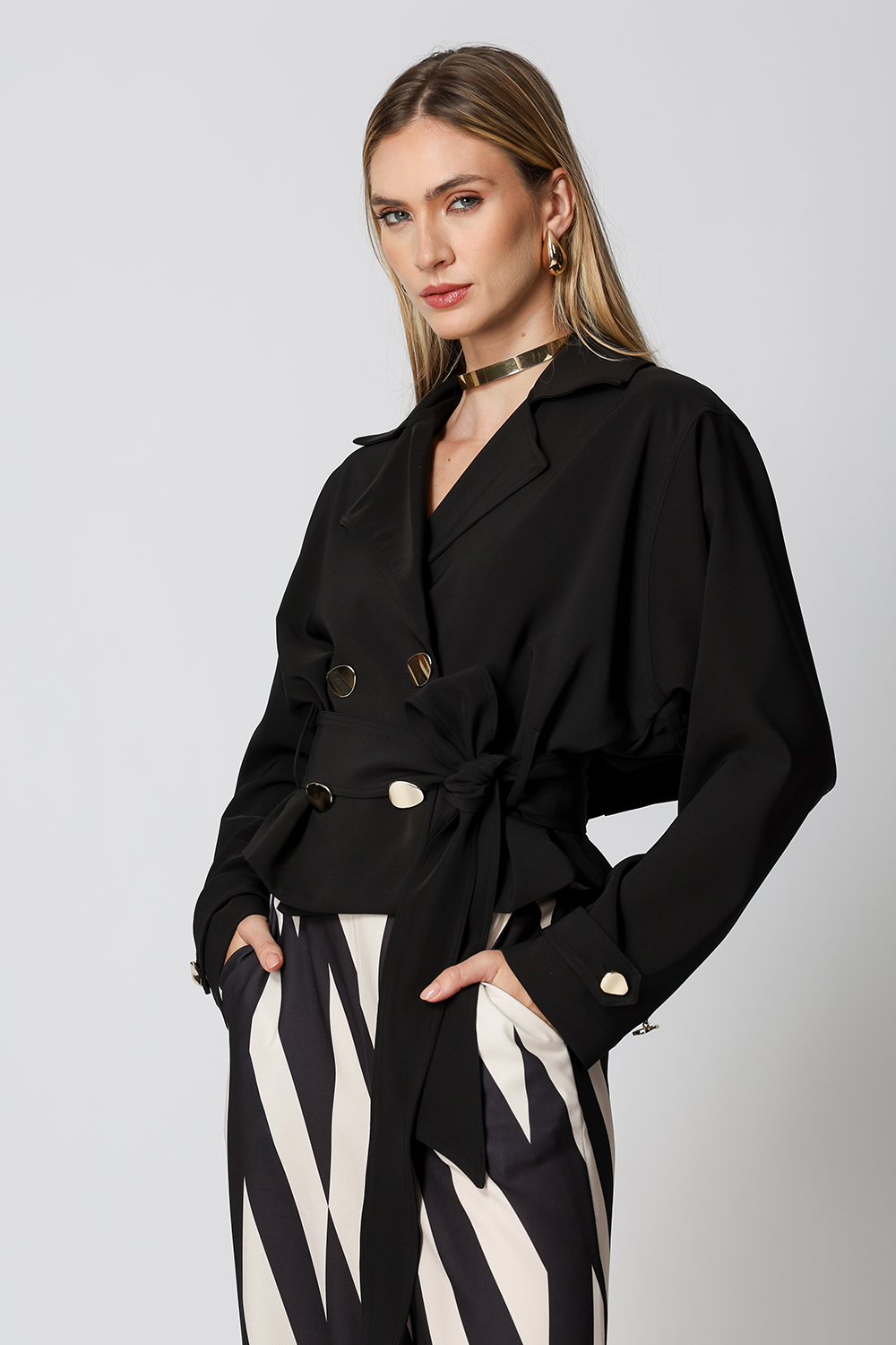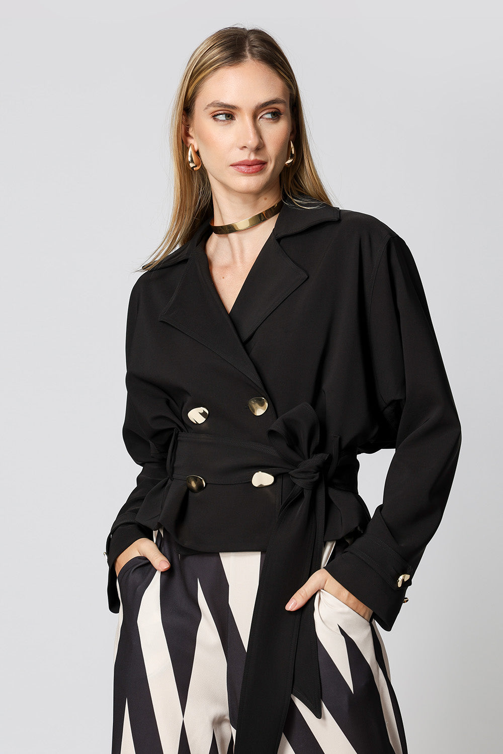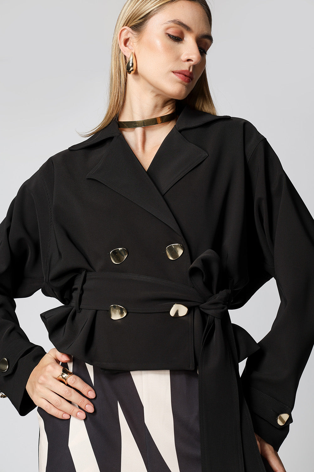 Gabardina corta de corte holgado y relajado. El diseño moderno y el corte estructurado garantizan un aspecto sofisticado y elegante. El abrigo es la elección perfecta para quienes buscan estilo y versatilidad para cualquier ocasión.