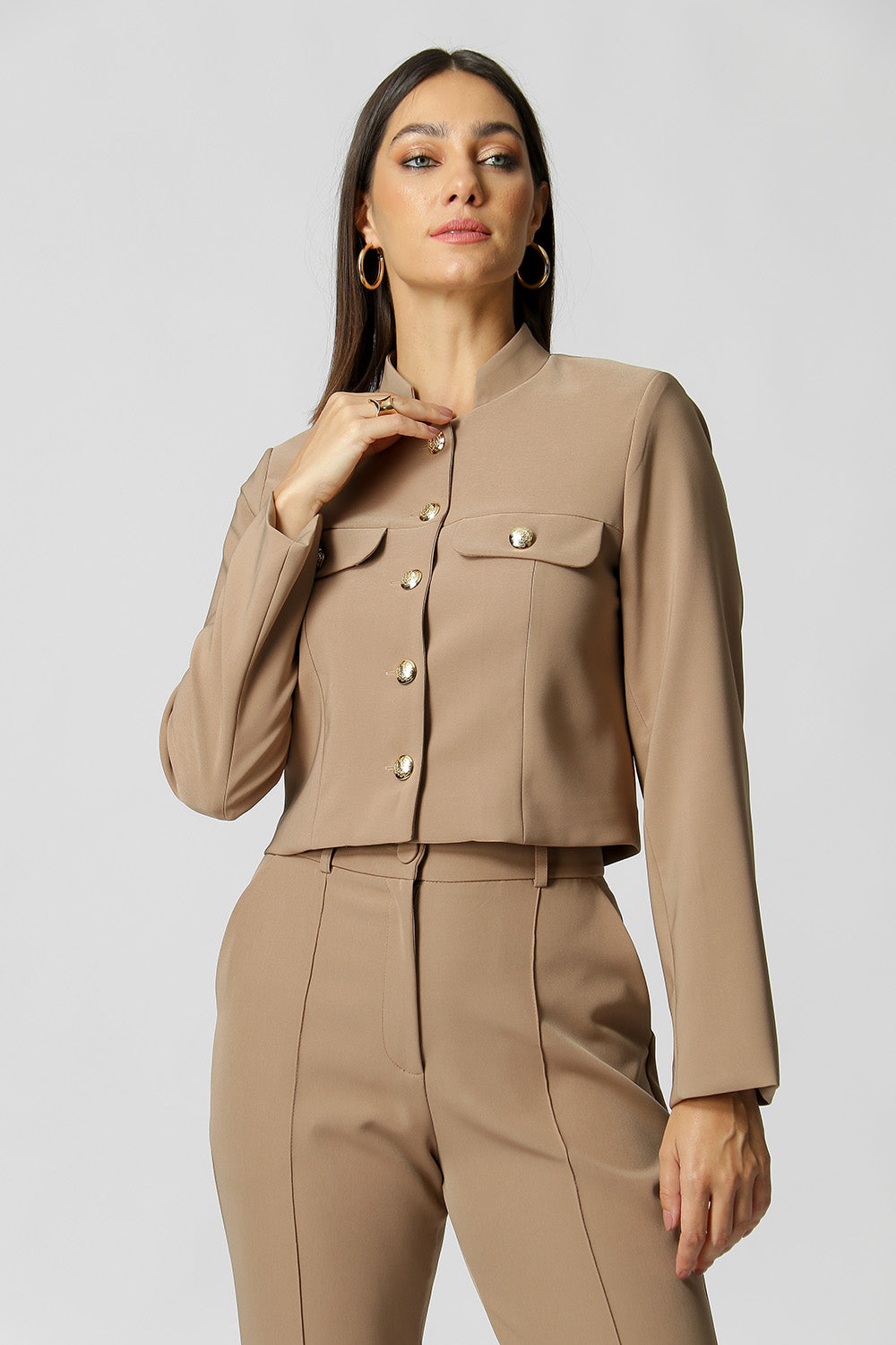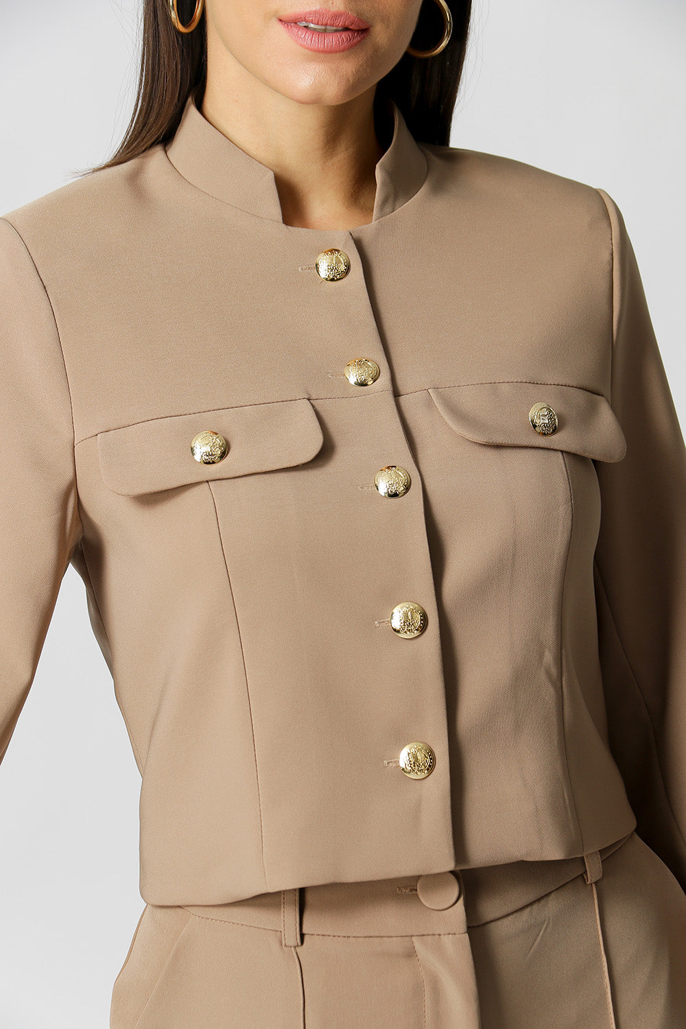 Chaqueta entallada con cortes y solapas. Tiene botones dorados que aportan todo el encanto de la pieza, ¡apuesta por ella!