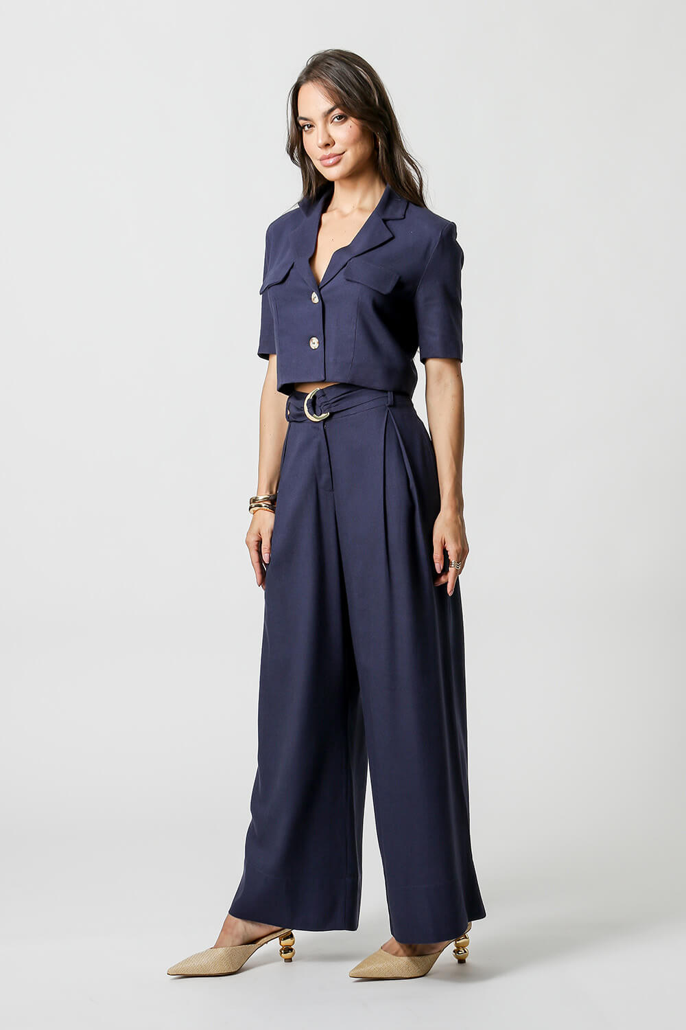 Chaqueta de lino corta con solapas delanteras. Pieza versátil, elegante y actual.
