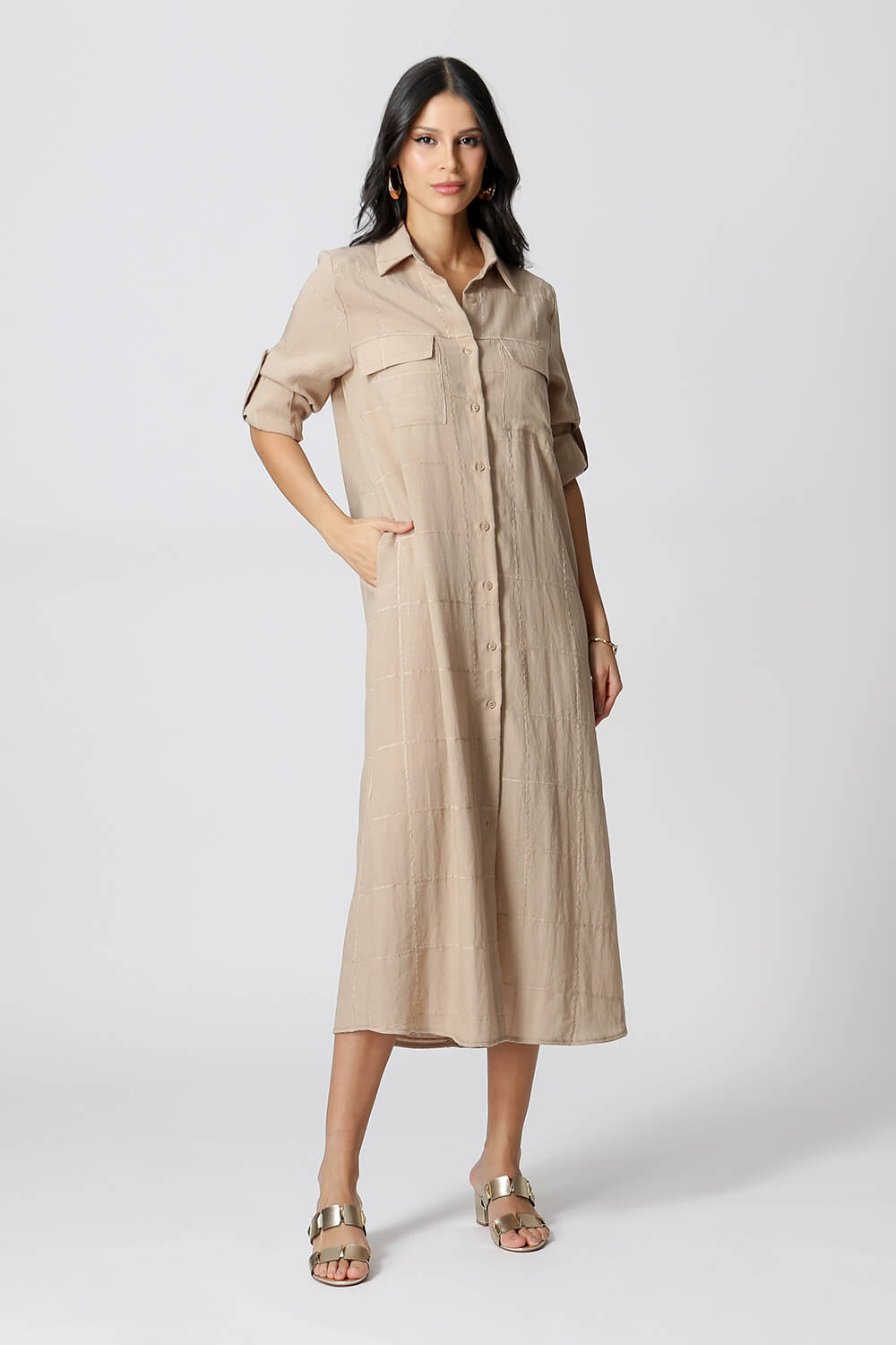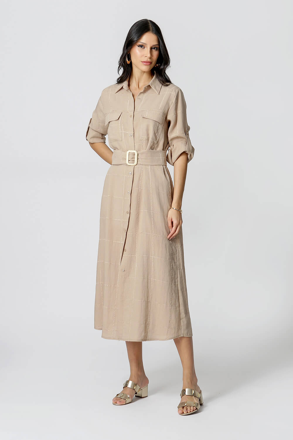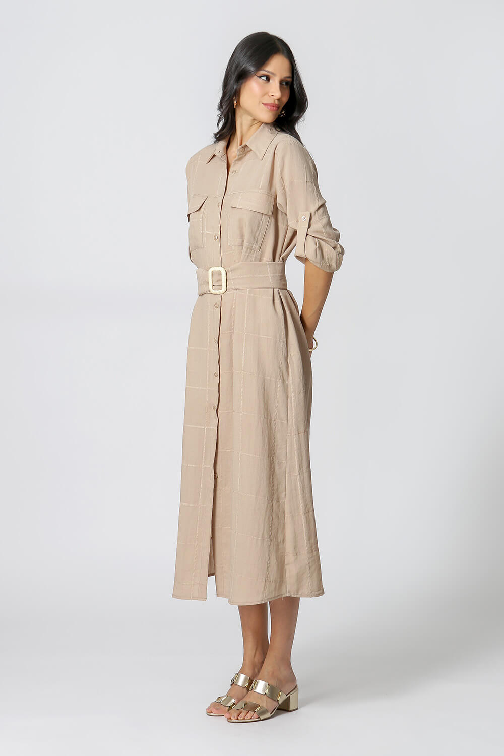 Camisa con bolsillos delanteros. Fabricado en tejido de viscosa a cuadros, una pieza práctica y excelente para el verano.