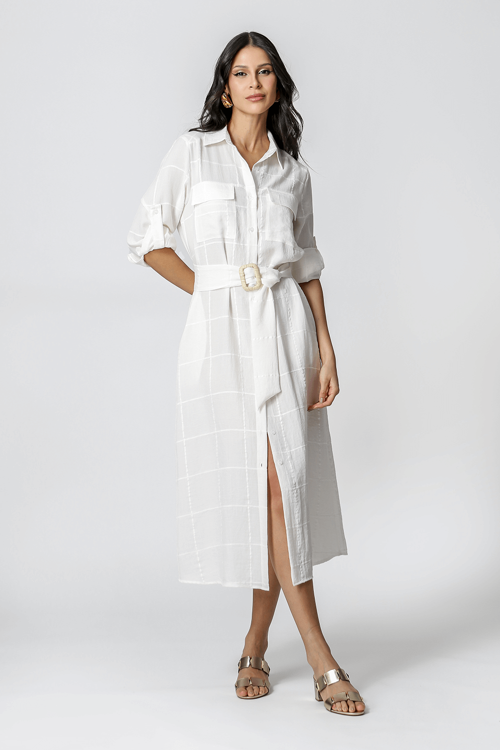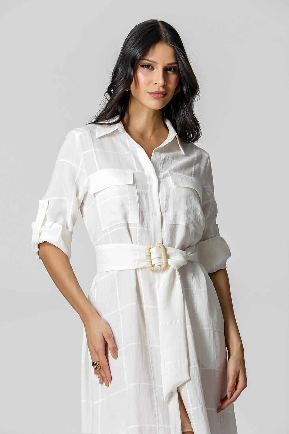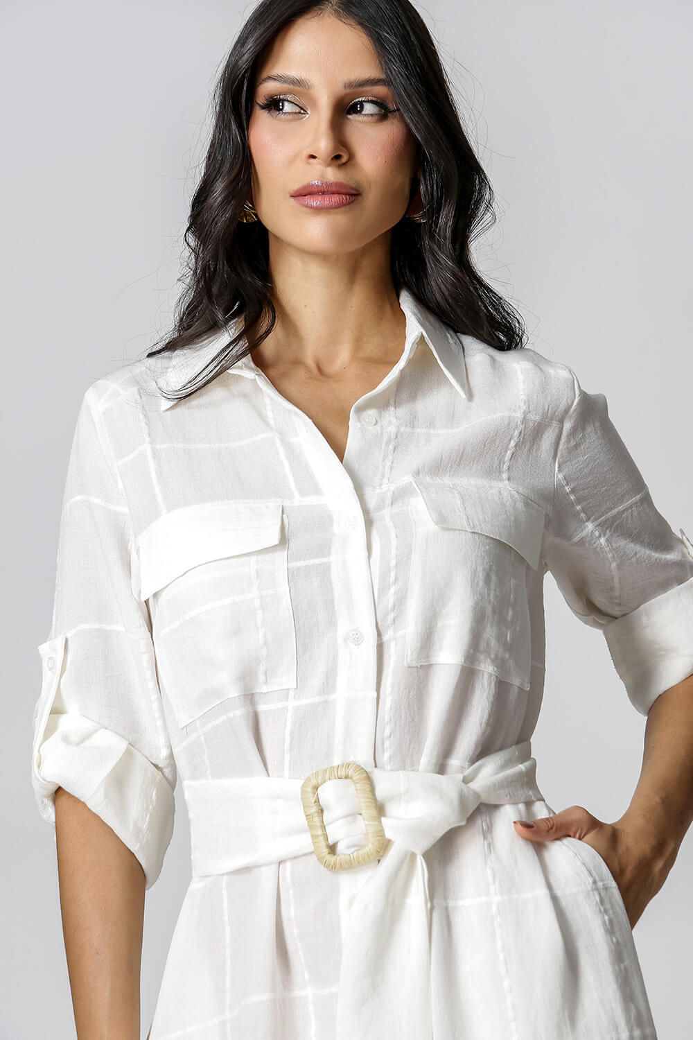 Camisa con bolsillos delanteros. Fabricado en tejido de viscosa a cuadros, una pieza práctica y excelente para el verano.