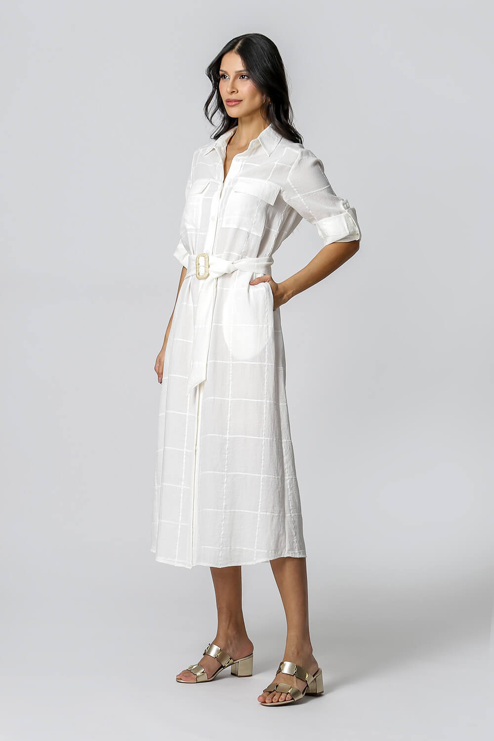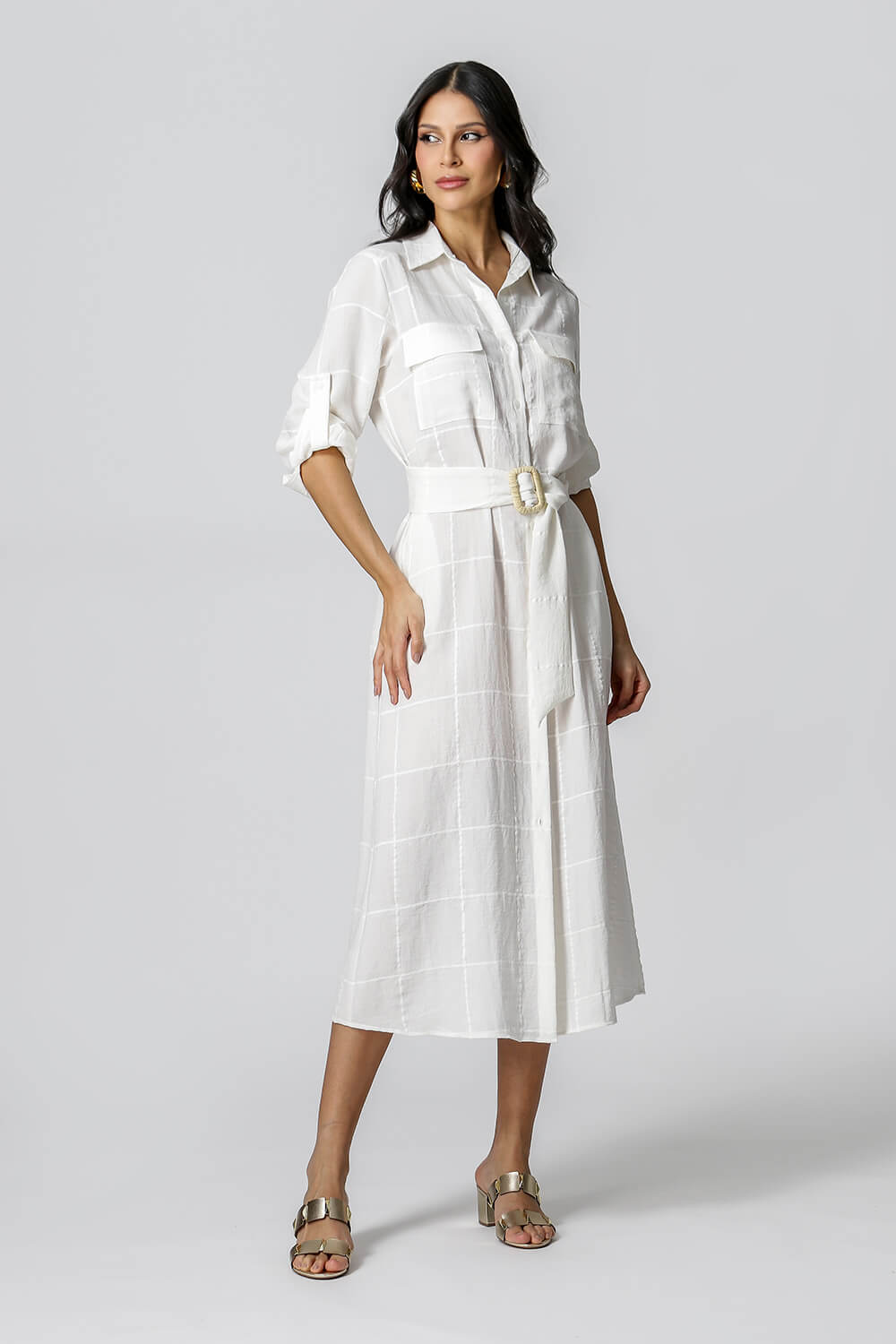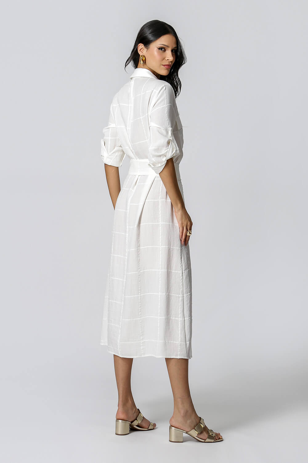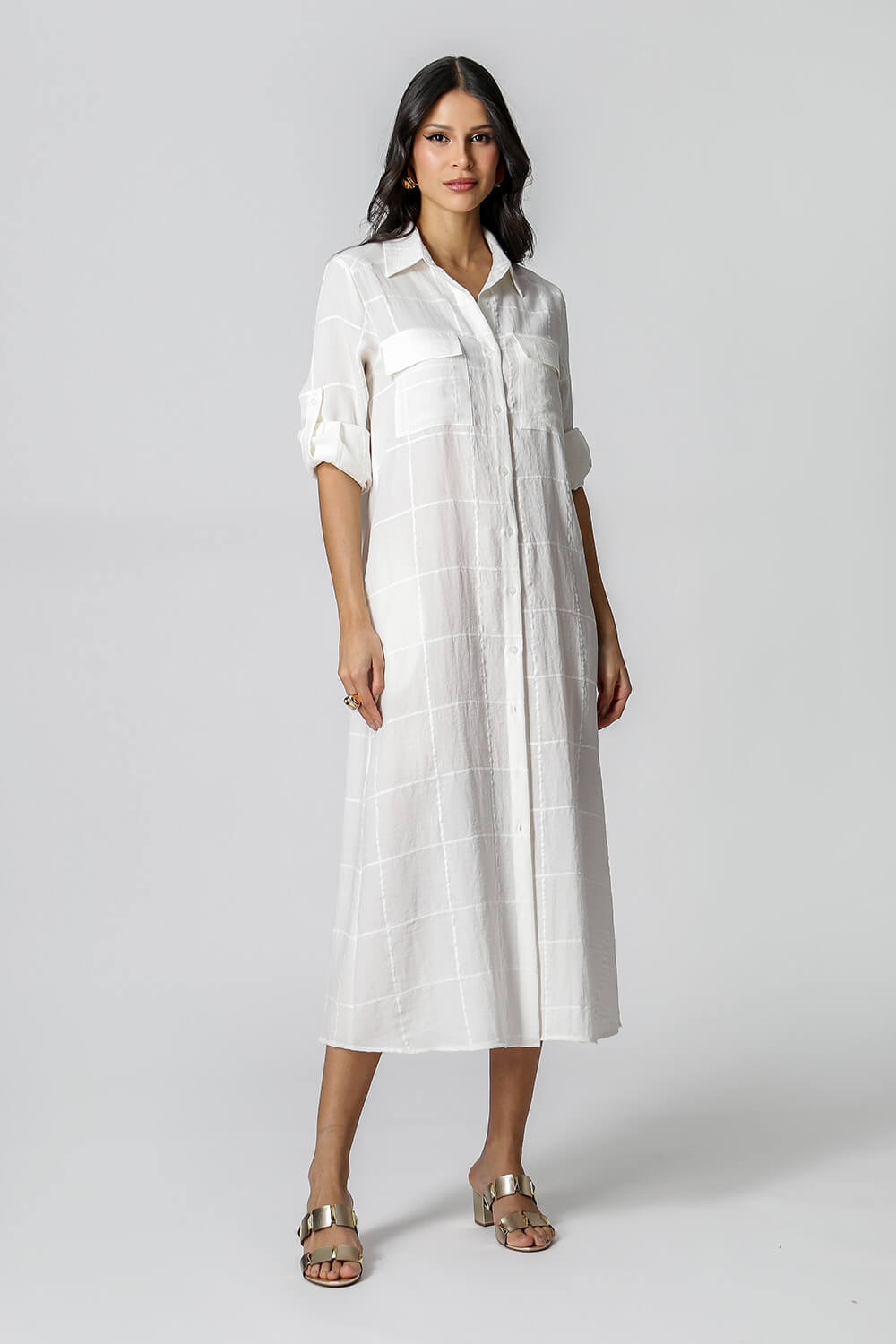 Camisa con bolsillos delanteros. Fabricado en tejido de viscosa a cuadros, una pieza práctica y excelente para el verano.