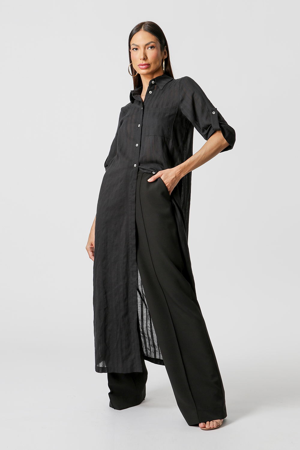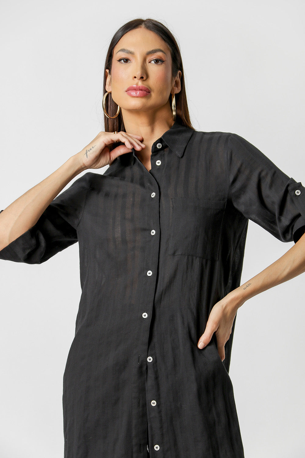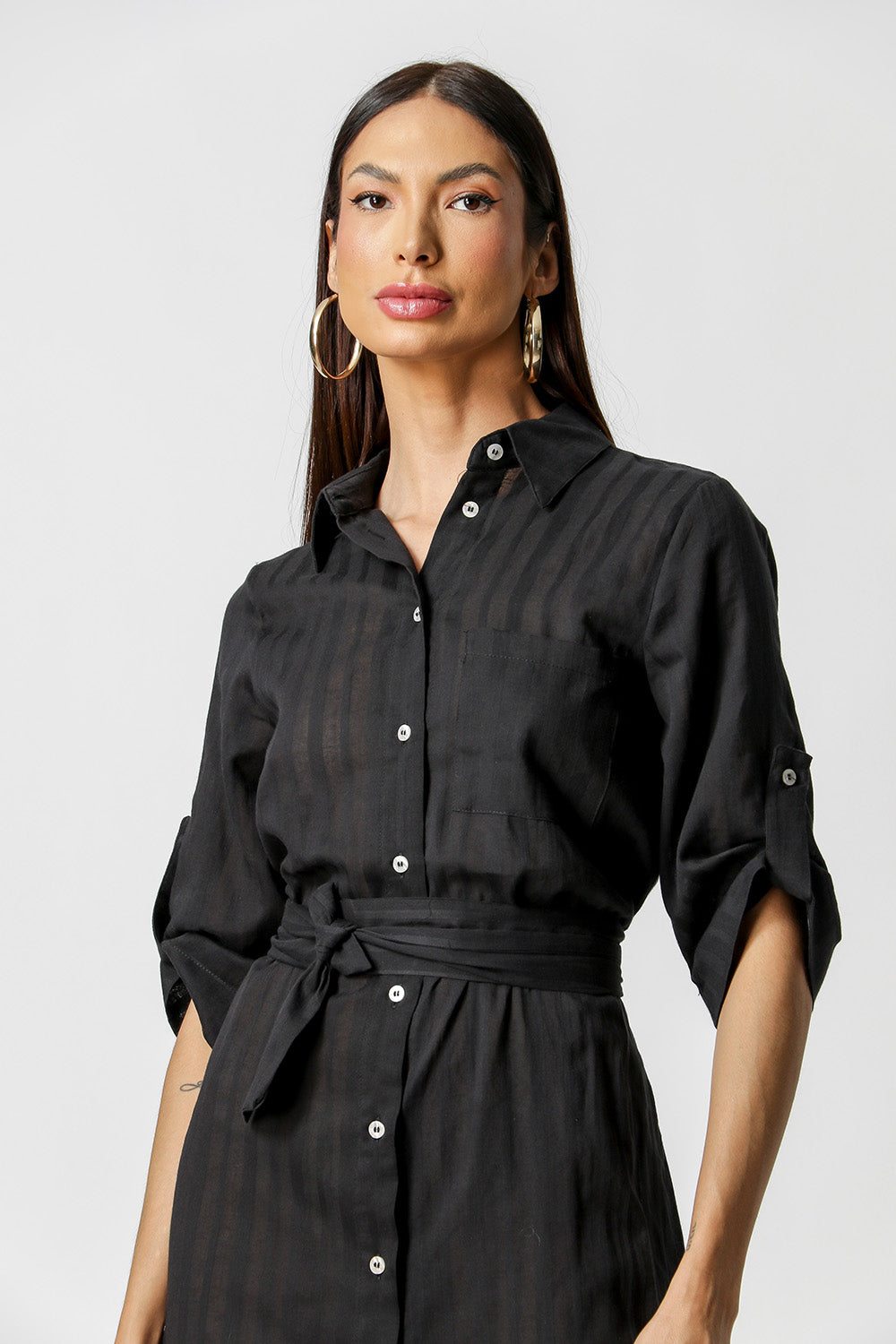 Camisa con cinturón en la cintura y botones delanteros. Realizado en tejido Voile. Una pieza práctica y excelente para el verano.