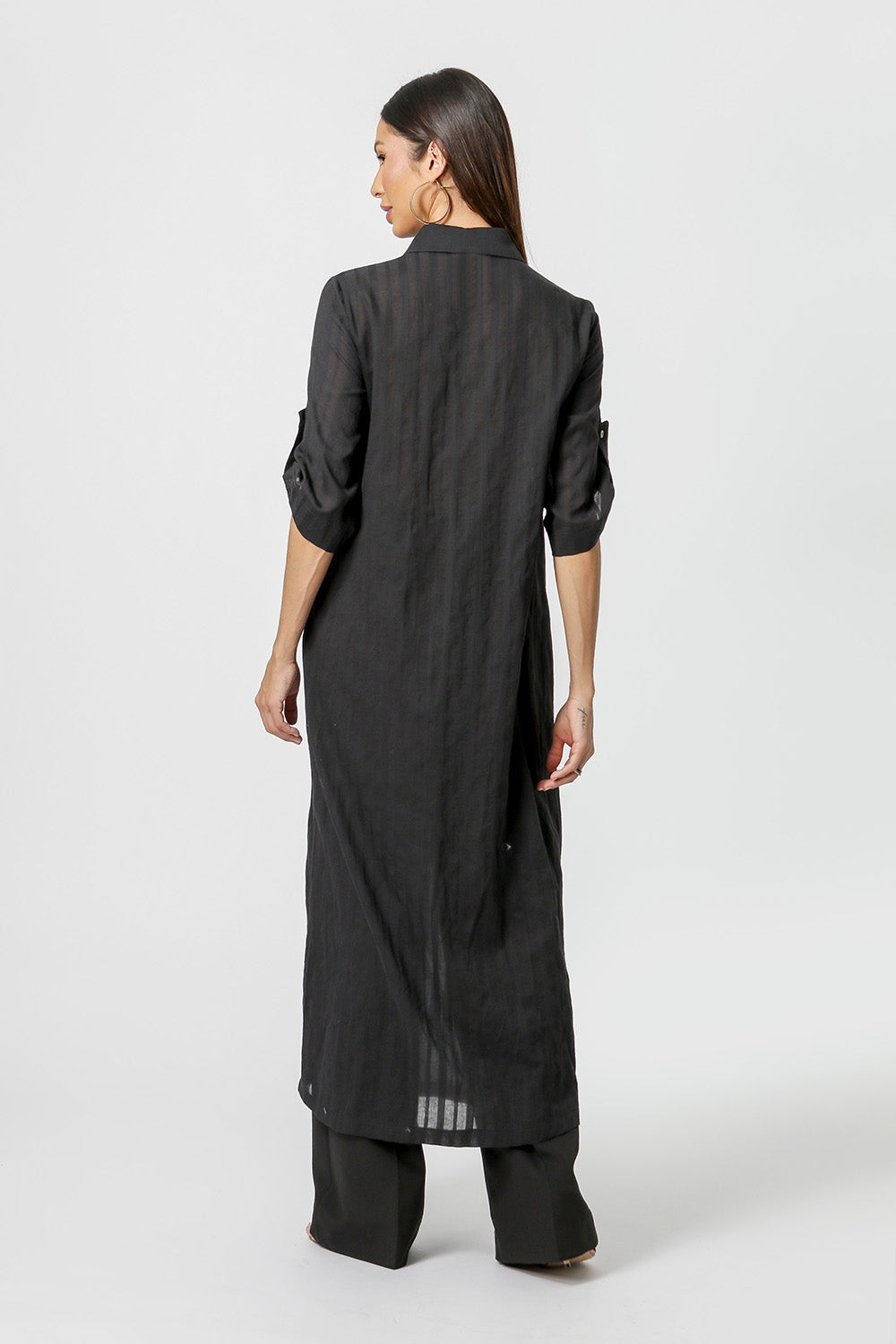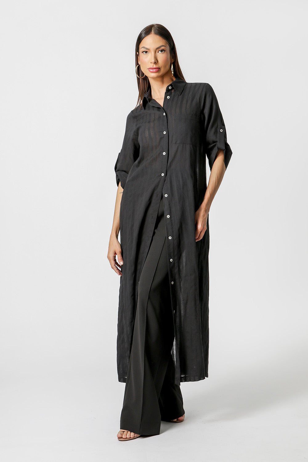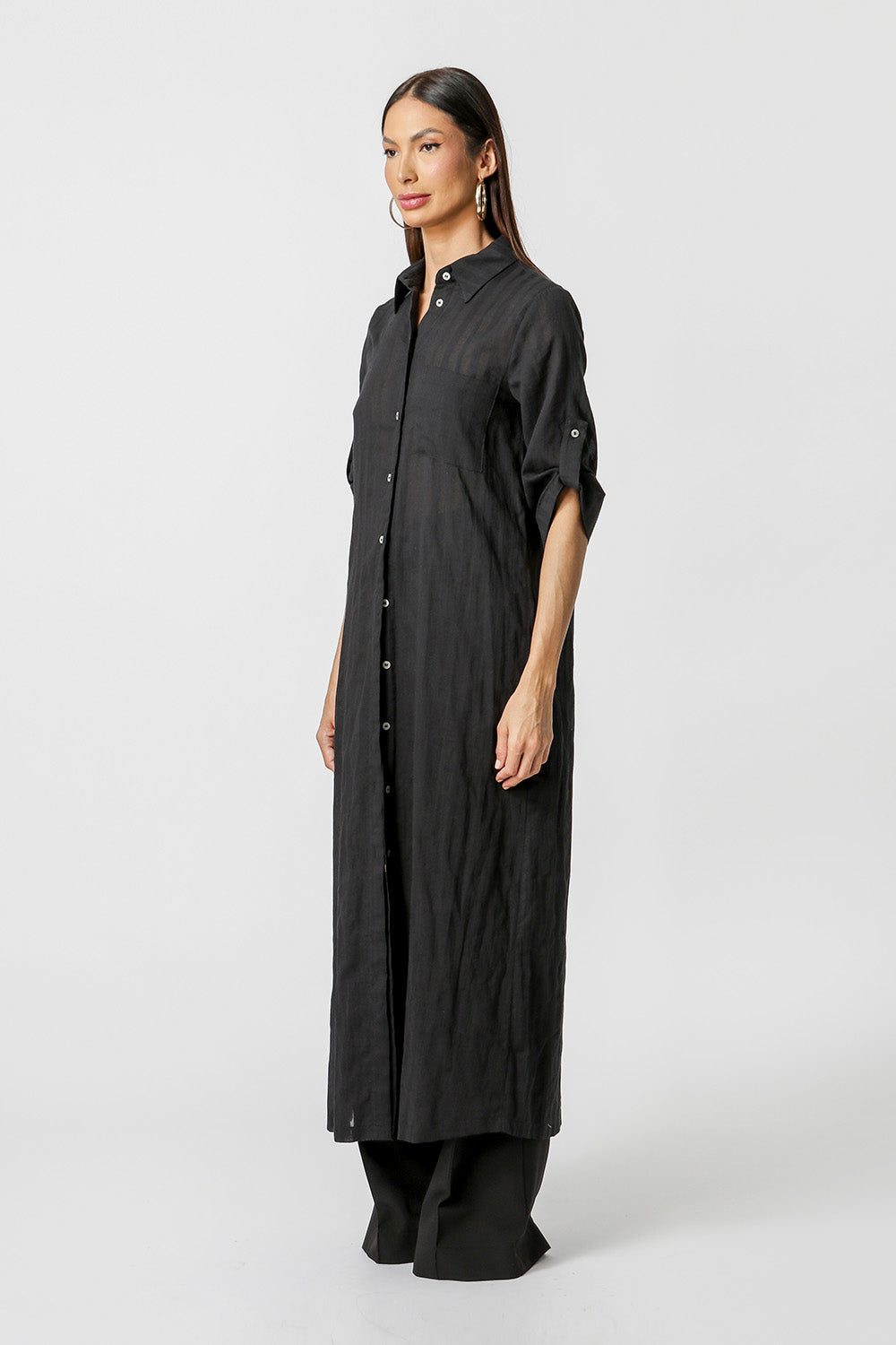 Camisa con cinturón en la cintura y botones delanteros. Realizado en tejido Voile. Una pieza práctica y excelente para el verano.