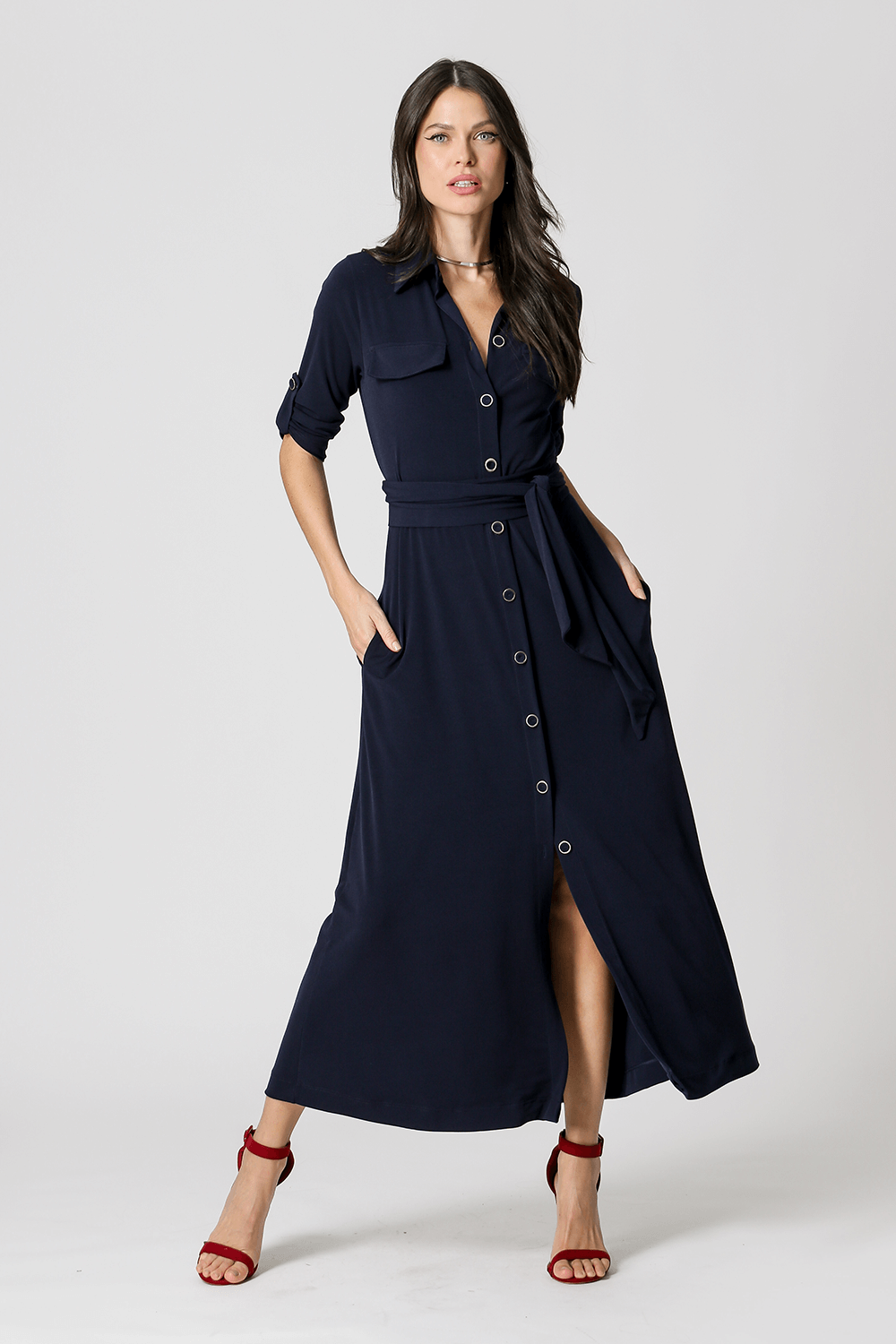 Chemise com lapela e faixa. Um ótimo caimento e que combina com mood casual chic.