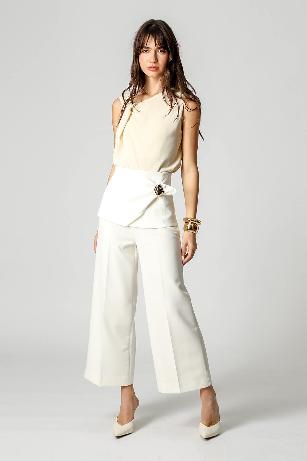 Este cinto de pala transpassada traz um toque de sofisticação com o broche dourado e zíper na parte de trás. Feito em tecido alfaiataria, oferece um ajuste perfeito e adiciona um detalhe elegante a qualquer look.