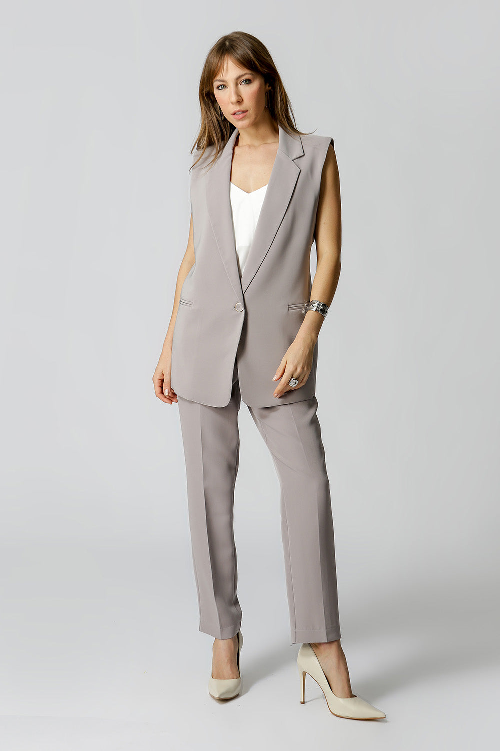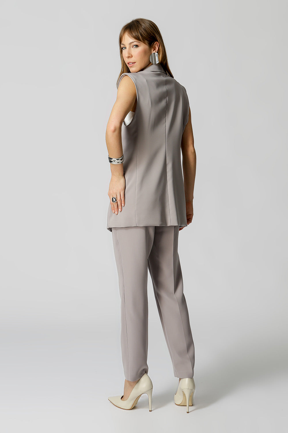 Chaleco largo con detalle de botones metálicos y forrado en su propio tejido. Pieza confeccionada en tejido sastre, forrada. Modelo clásico y versátil que se puede combinar con varios looks.