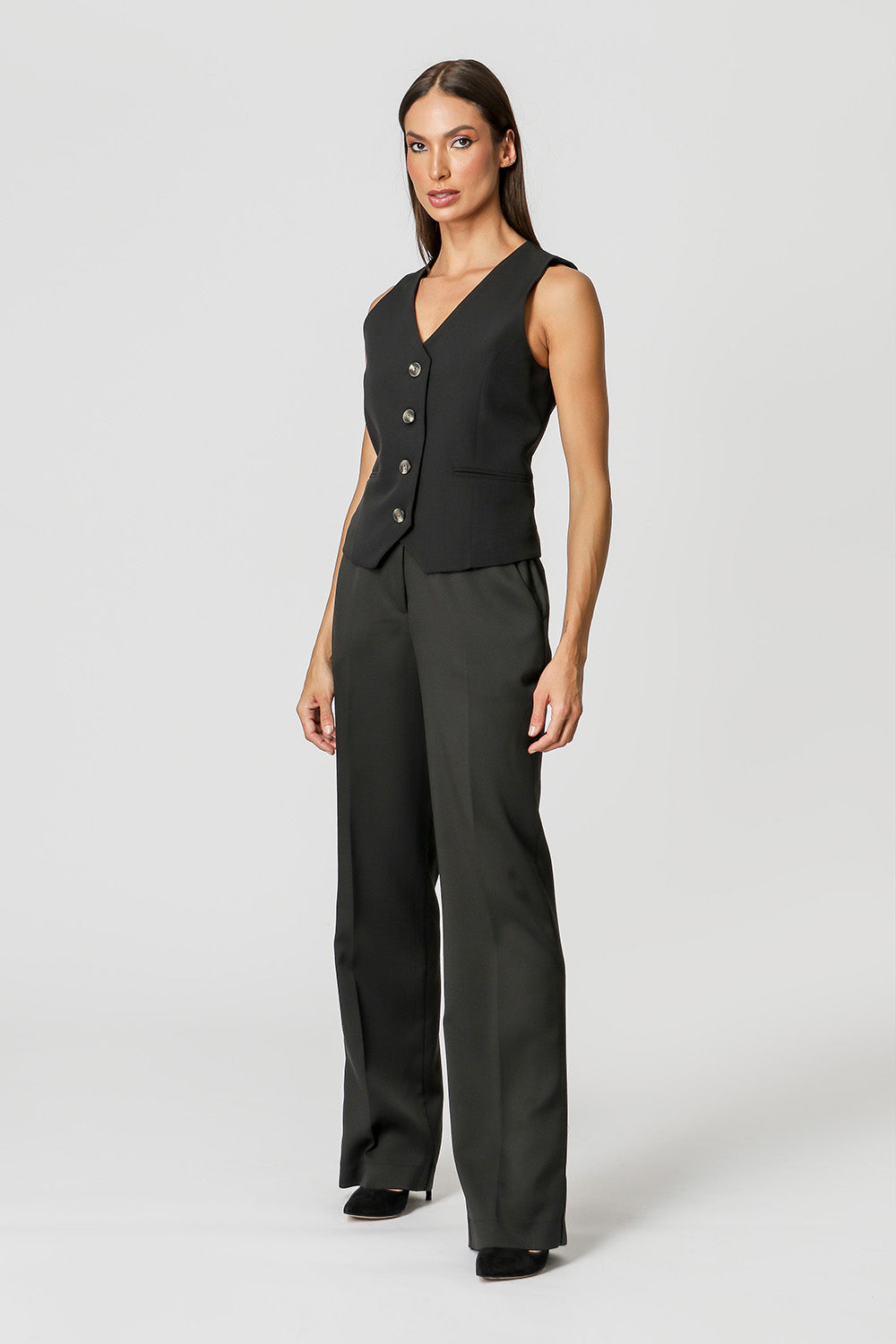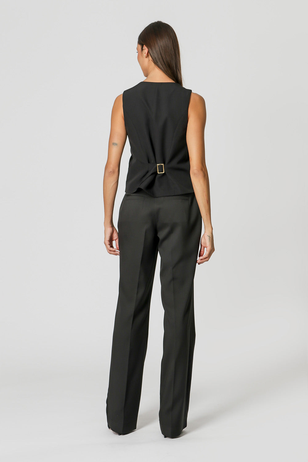 Chaleco entallado con hebilla para ajuste, que puede usarse como chaleco o como blusa. Pieza increíble para looks elegantes.