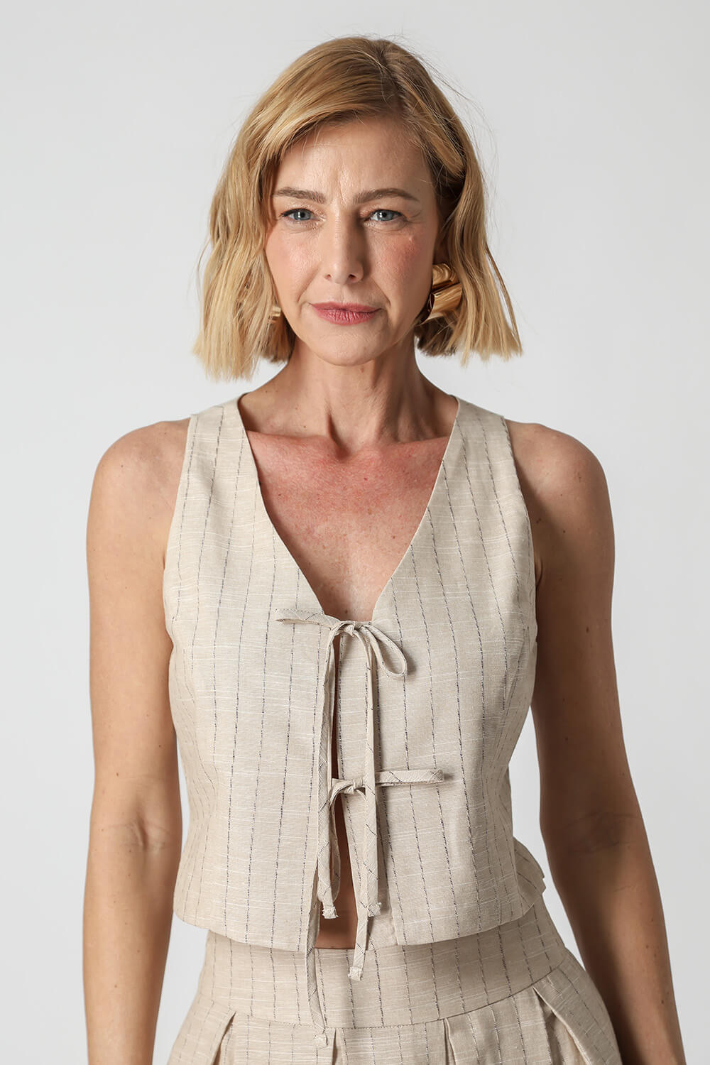 Chaleco con lazo delantero. Una pieza que aporta comodidad, practicidad y elegancia a tu look y que no puede faltar en tu armario.
