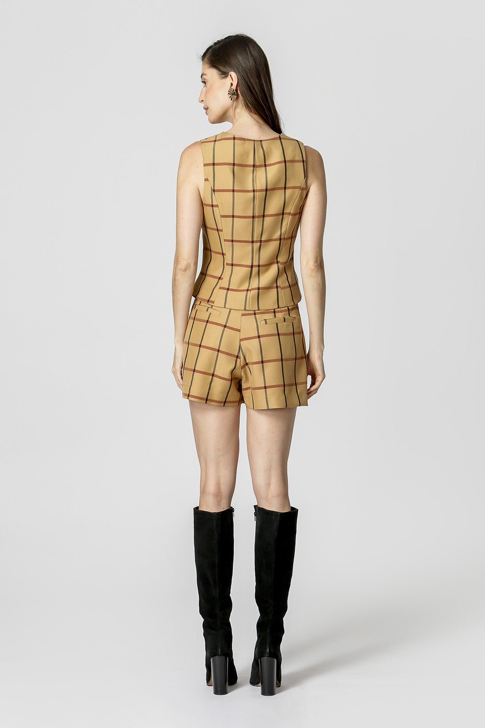 Chaleco de corte más entallado, confeccionado en sastrería de cuadros y con botones delanteros. Pieza forrada. ¡Una pieza elegante para que apuestes sin miedo!