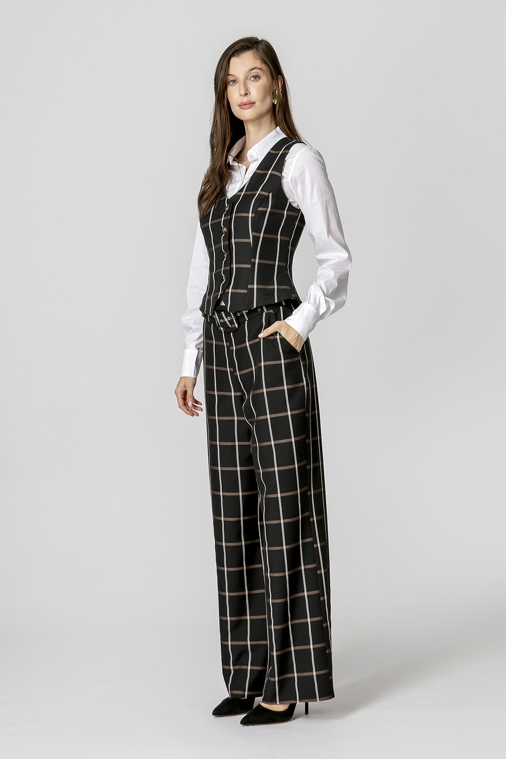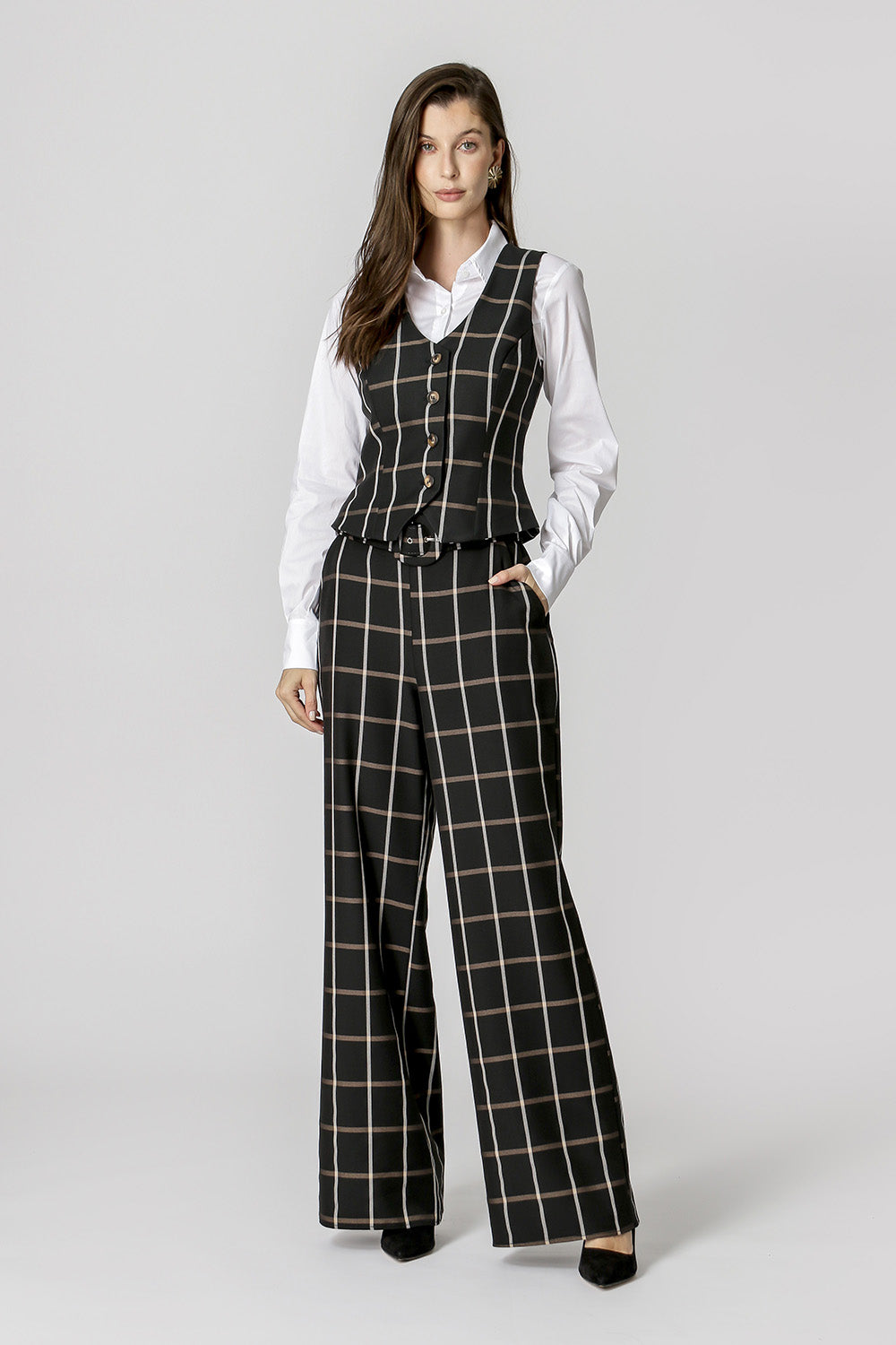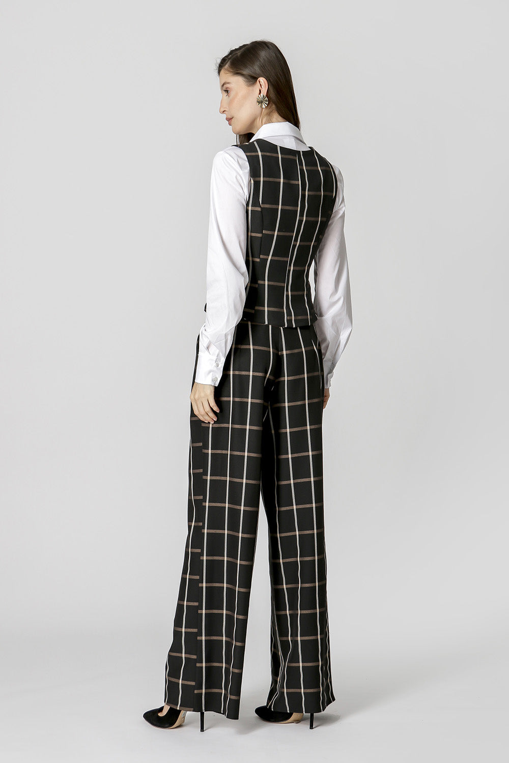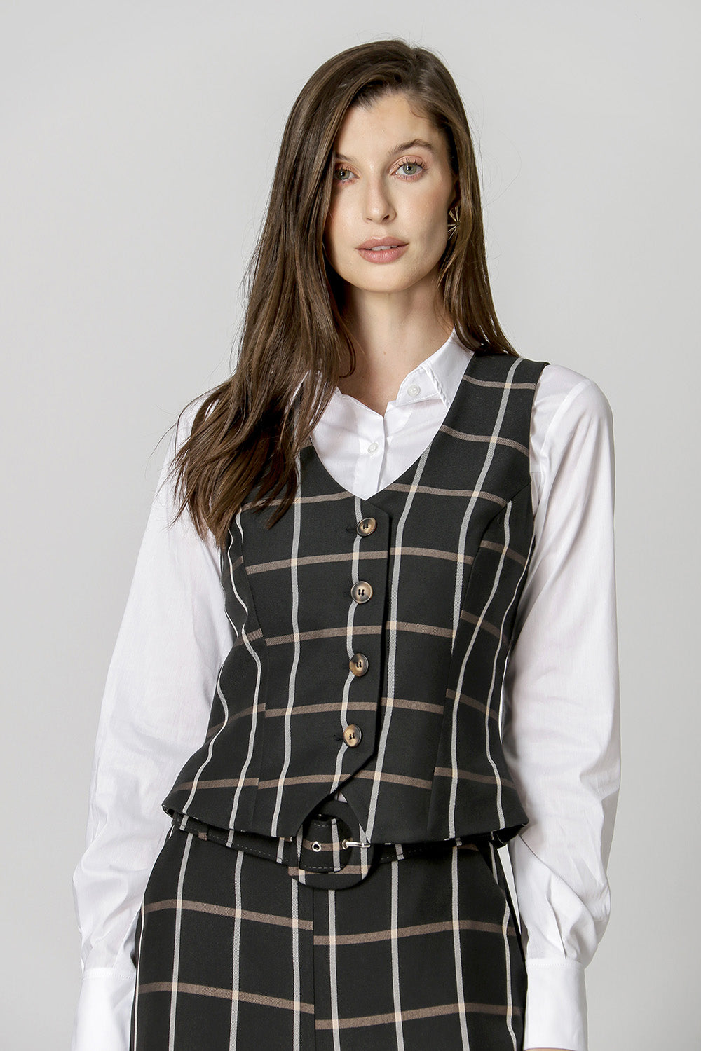 Chaleco de corte más entallado, confeccionado en sastrería de cuadros y con botones delanteros. Pieza forrada. ¡Una pieza elegante para que apuestes sin miedo!