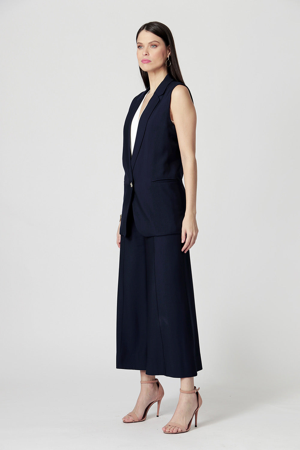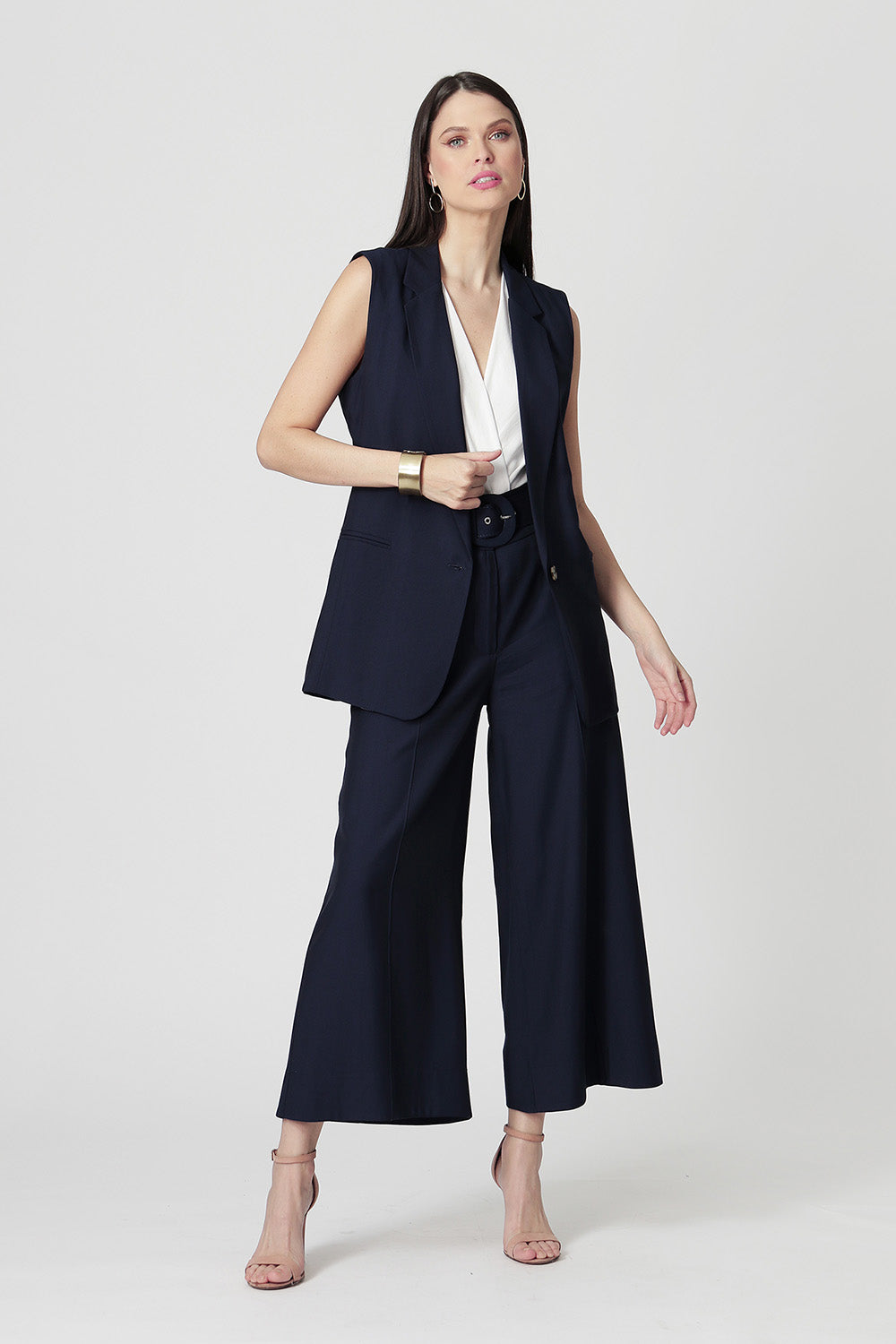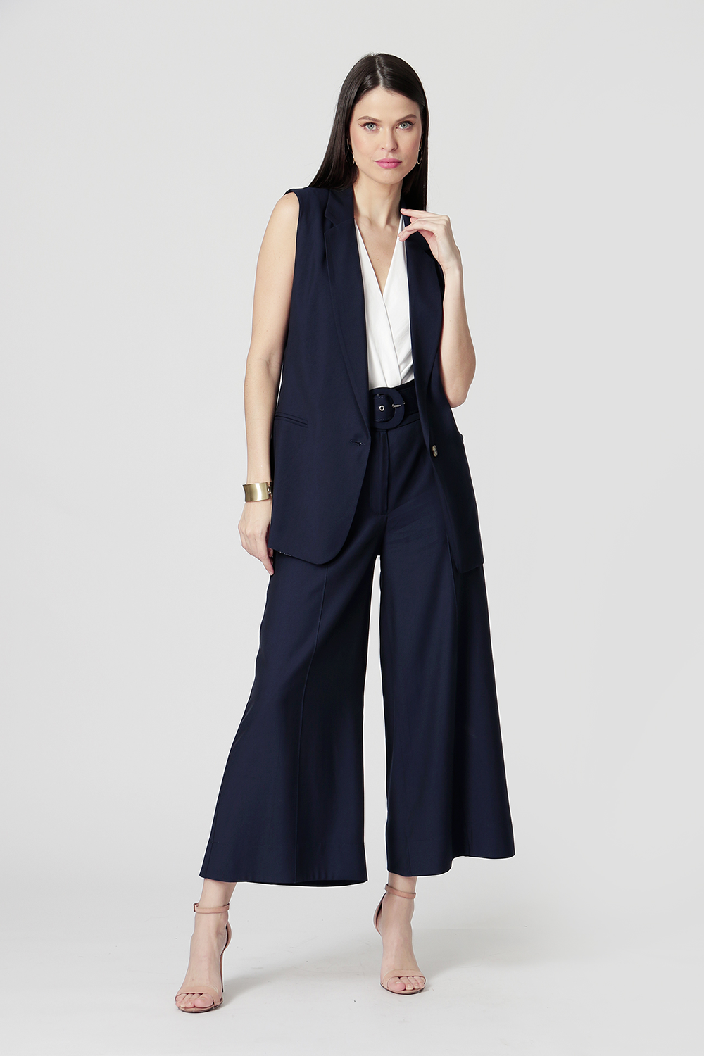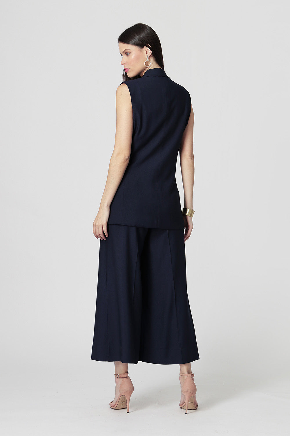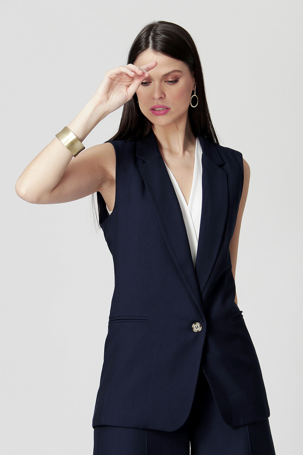 Chaleco entallado de corte largo, con forro estampado. Un clásico, ideal para muchas ocasiones.