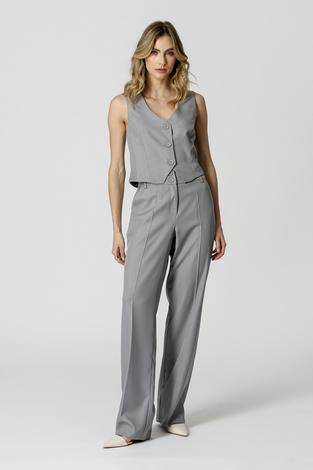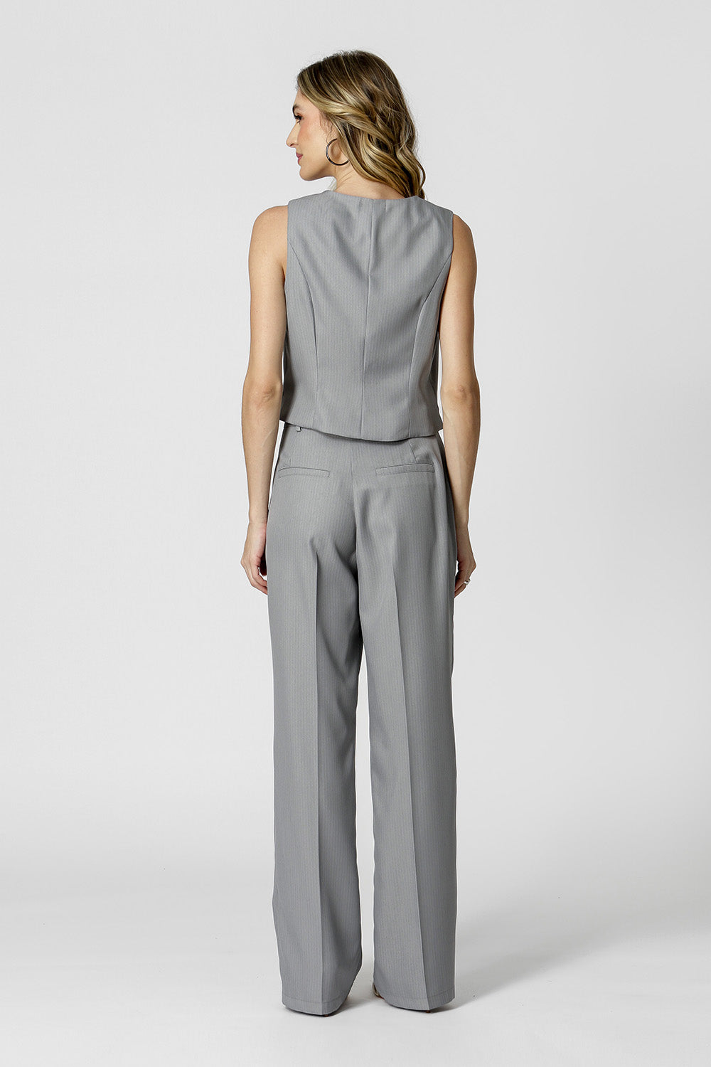 Chaleco entallado, confección en raya diplomática. Pieza súper trendy para looks laborales y casuales.