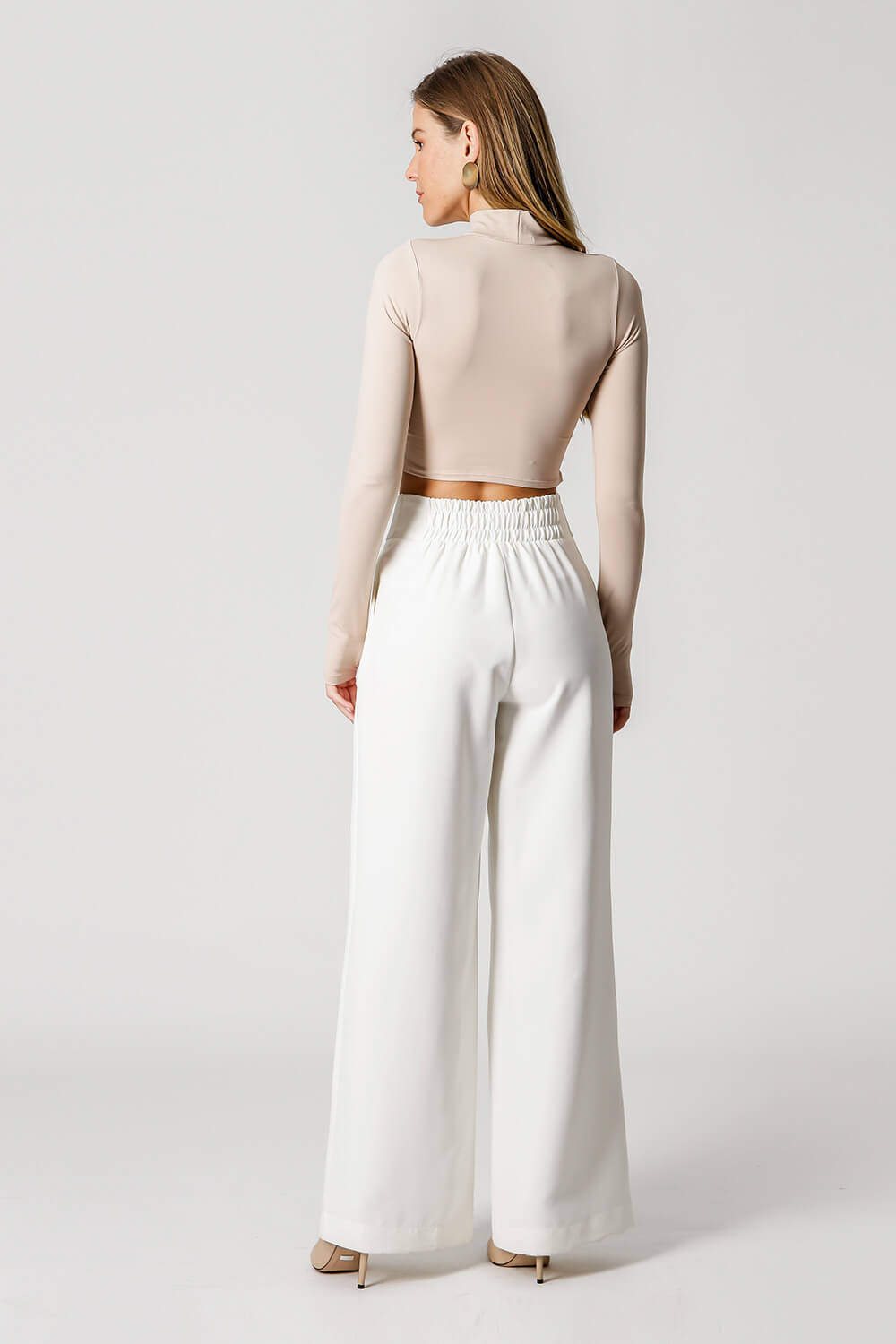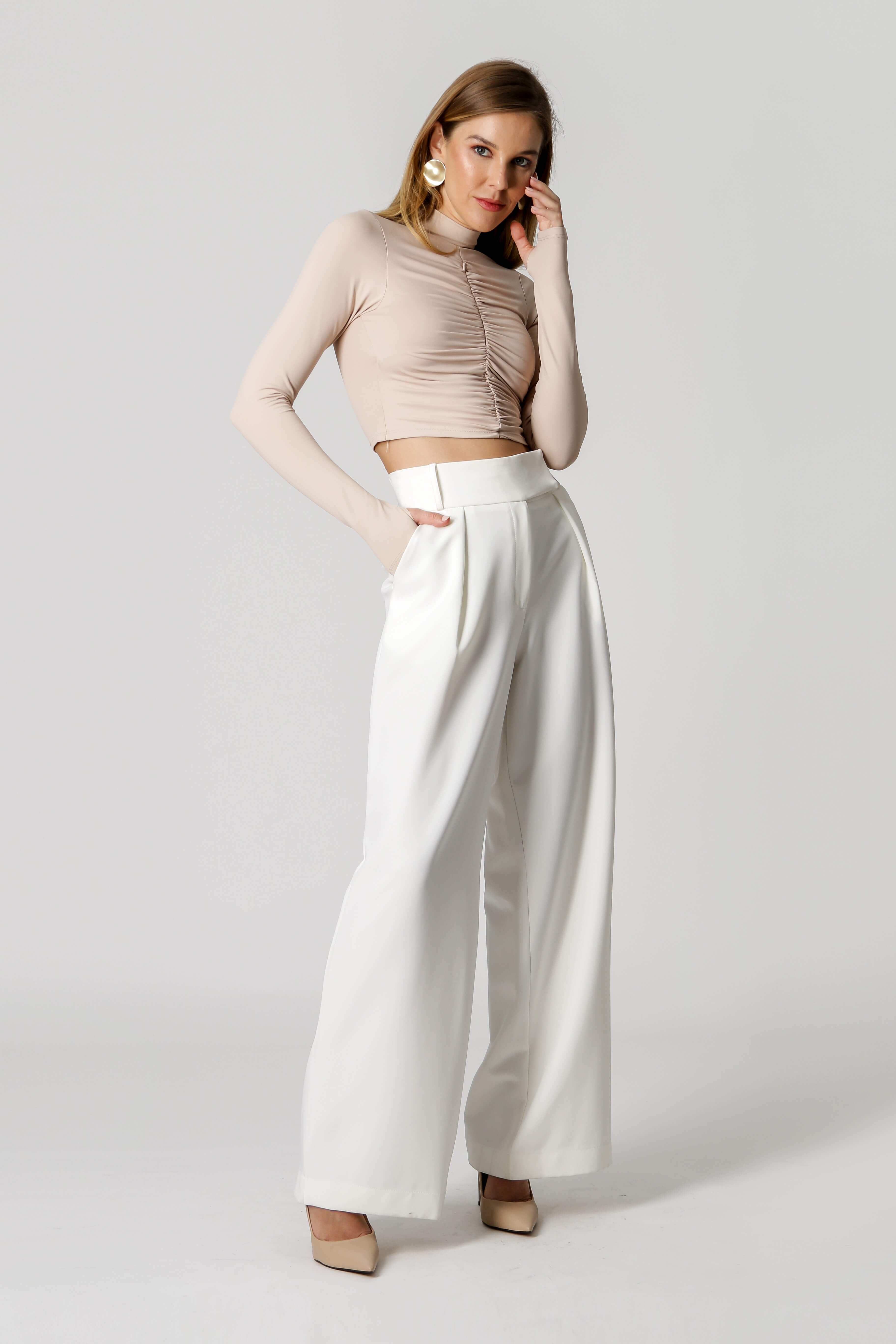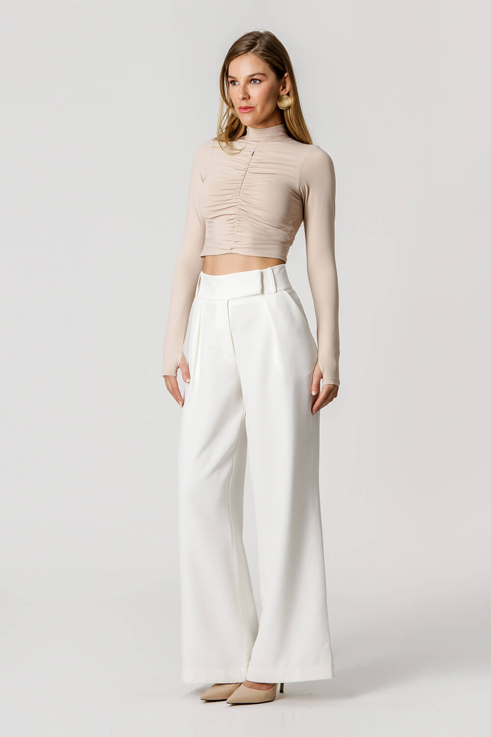 Crop top en amni, fruncido, con cremallera en la parte delantera, manga larga, confeccionado en punto, de corte ajustado. Ofrece protección solar, secado rápido y antiolor permanente.