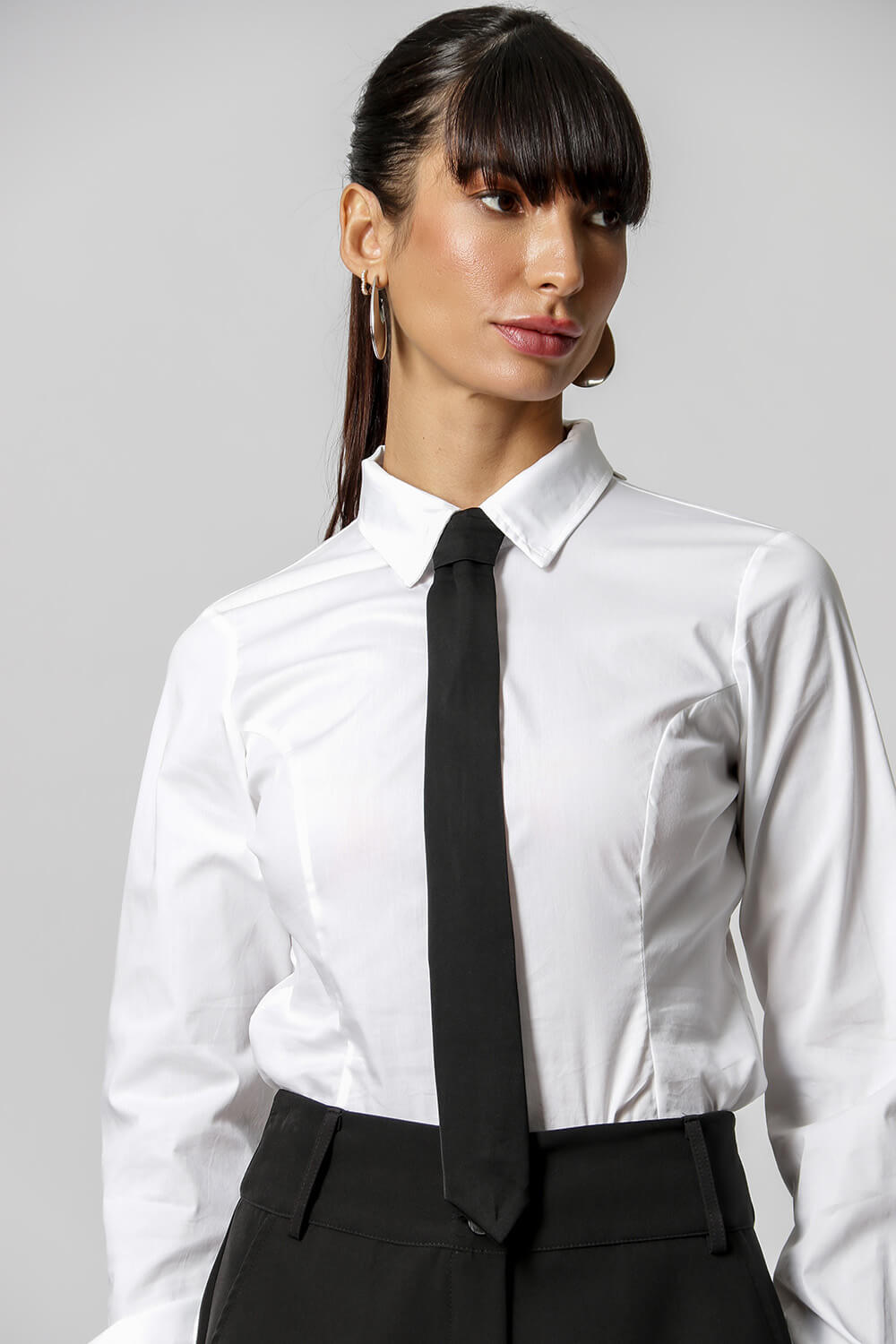 Blusa de un solo hombro con faja - BLANCO ROJO