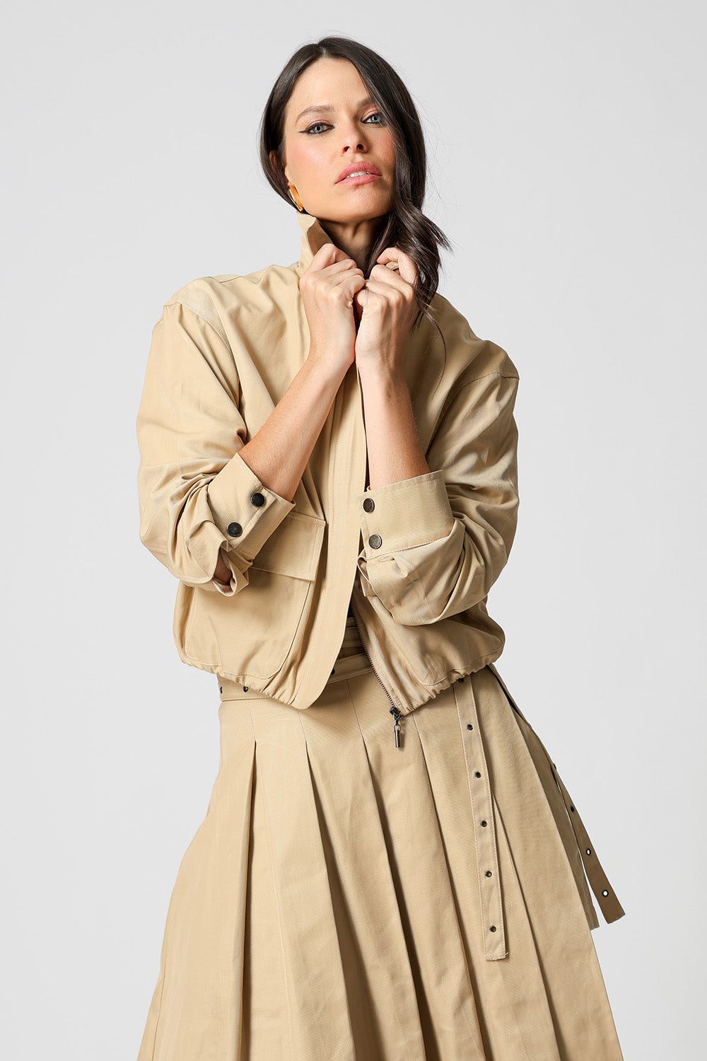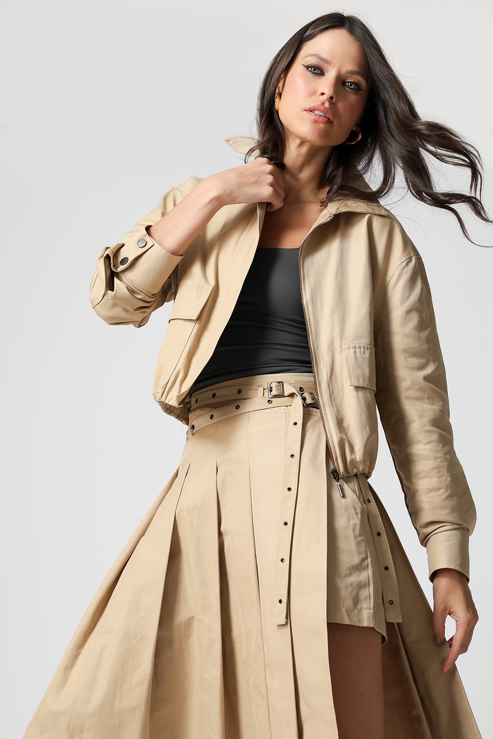 La chaqueta bomber con bolsillos amplios y cuadrados es una pieza moderna y práctica que combina comodidad y estilo, ¡anímate a ella!