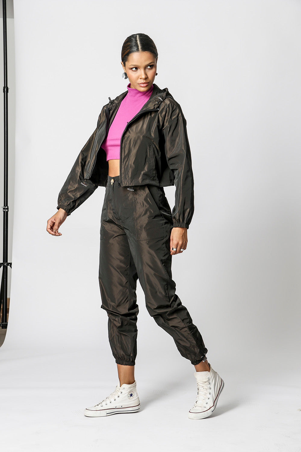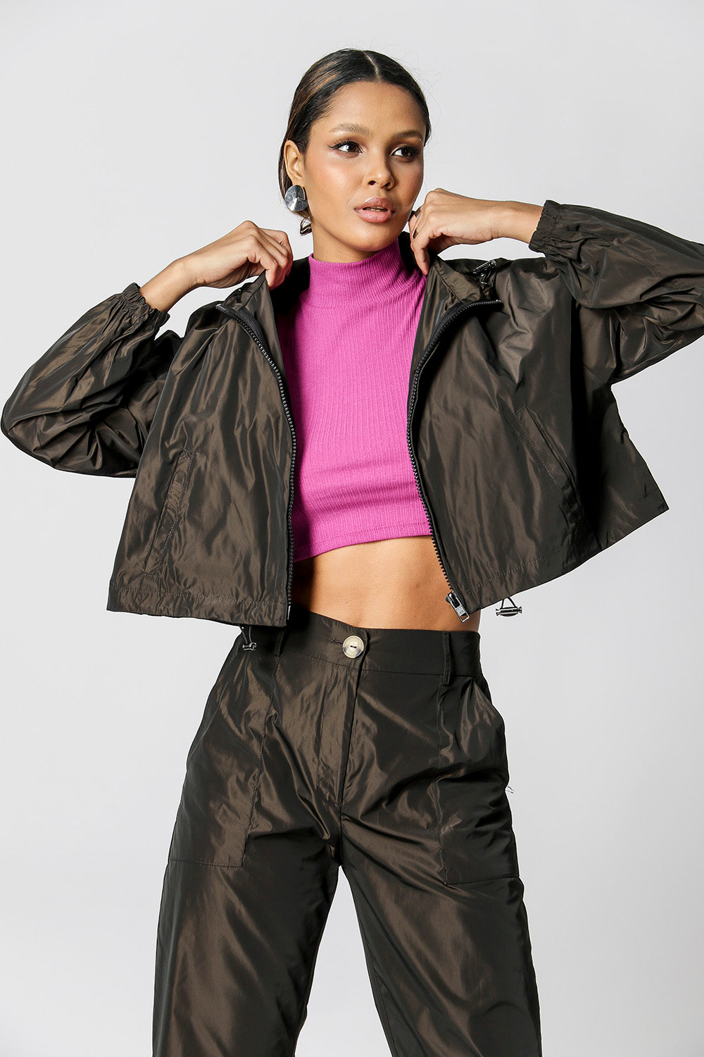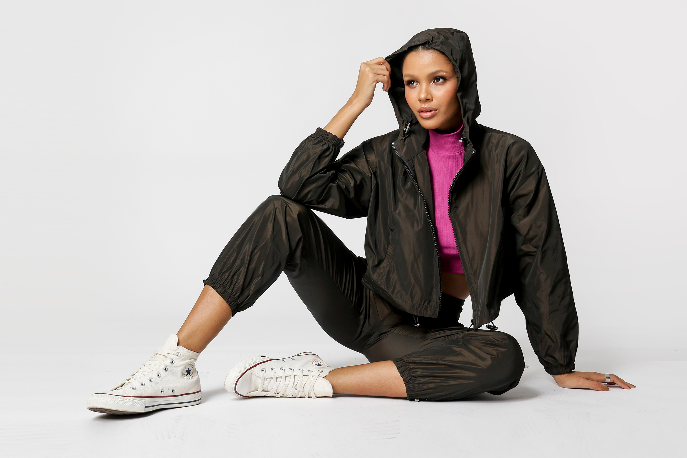 Chaqueta cortavientos de manga larga con capucha, confeccionada en tejido deportivo. Tiene detalle de cremallera y ajustadores metálicos. ¡Son los básicos únicos que estabas buscando!