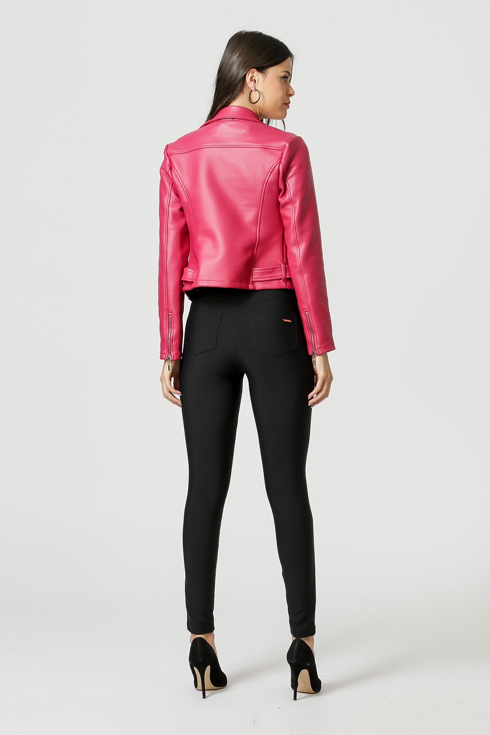Chaqueta estilo perfecto confeccionada en neopreno resinado, con cremallera cruzada y cremalleras en bolsillos y mangas. Pieza moderna de aire urbano, ideal para componer tus looks invernales.