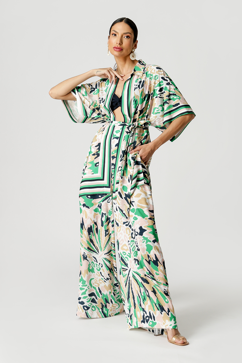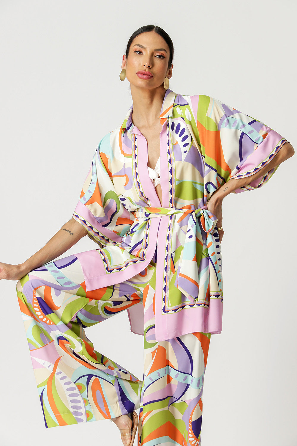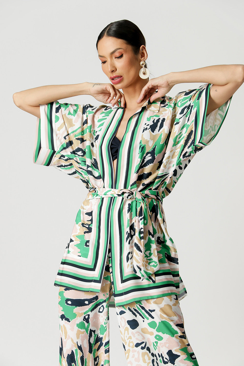 Kimono com faixa. Confeccionada tecido leve. Peça tendência perfeita para arrasar no look casual.